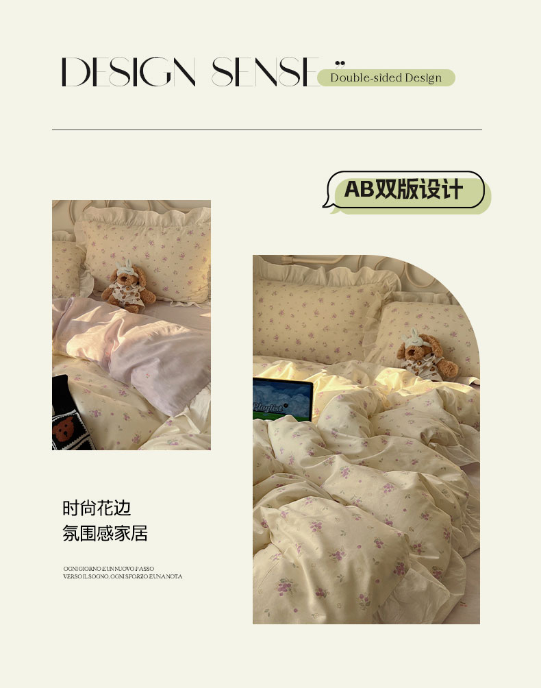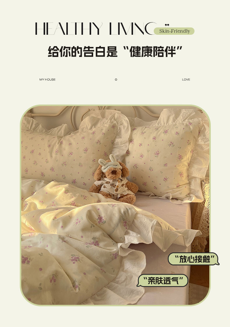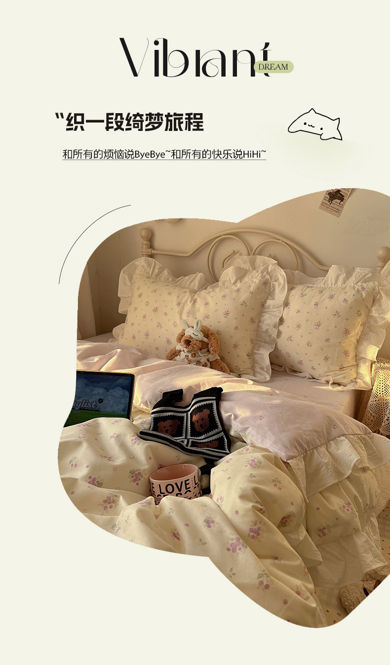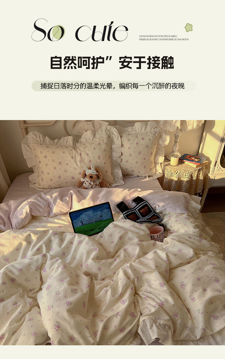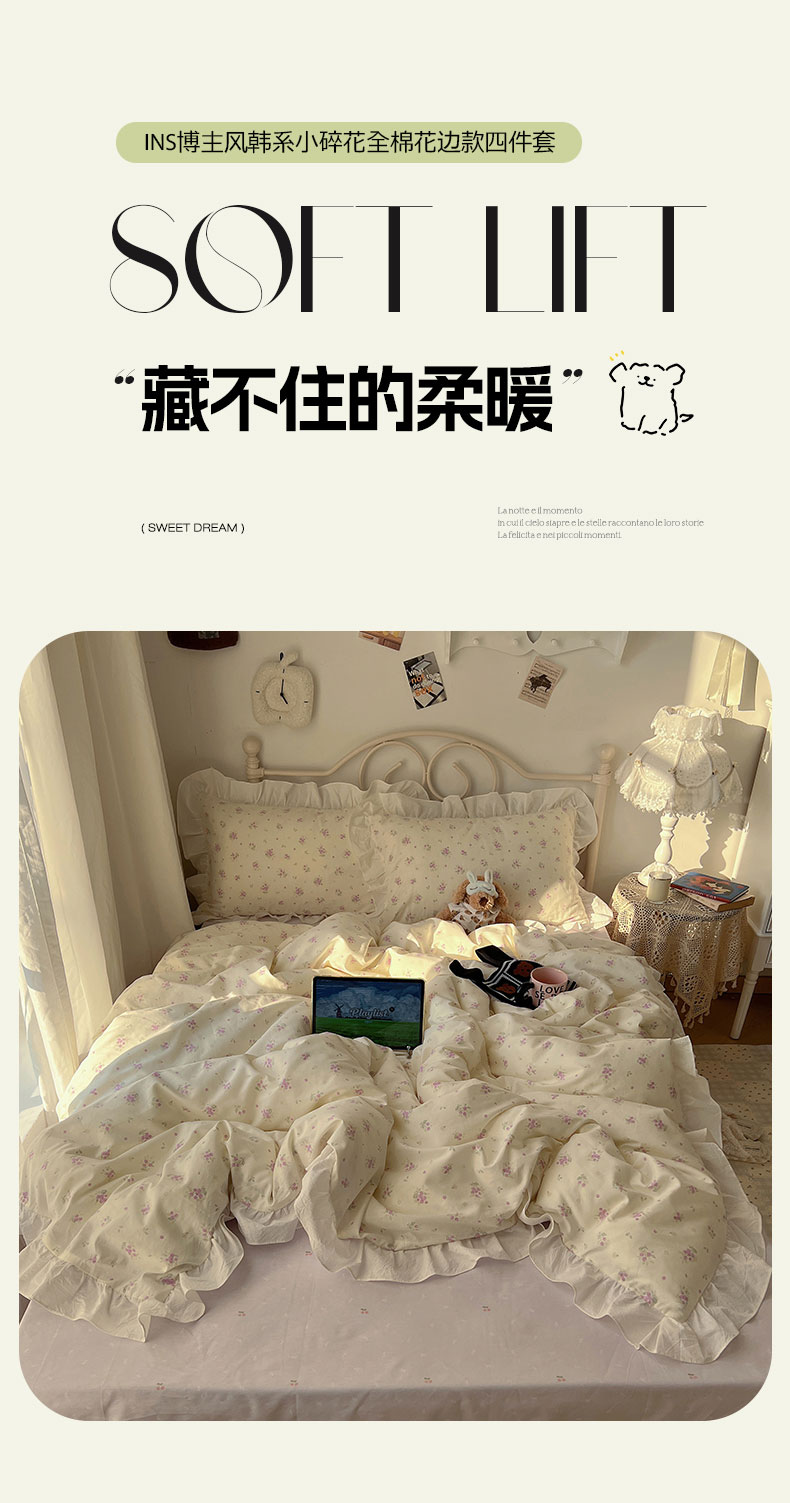 六巷胡同 2026春夏新款INS博主风韩系小碎花全棉花边款四件套 贝芮
