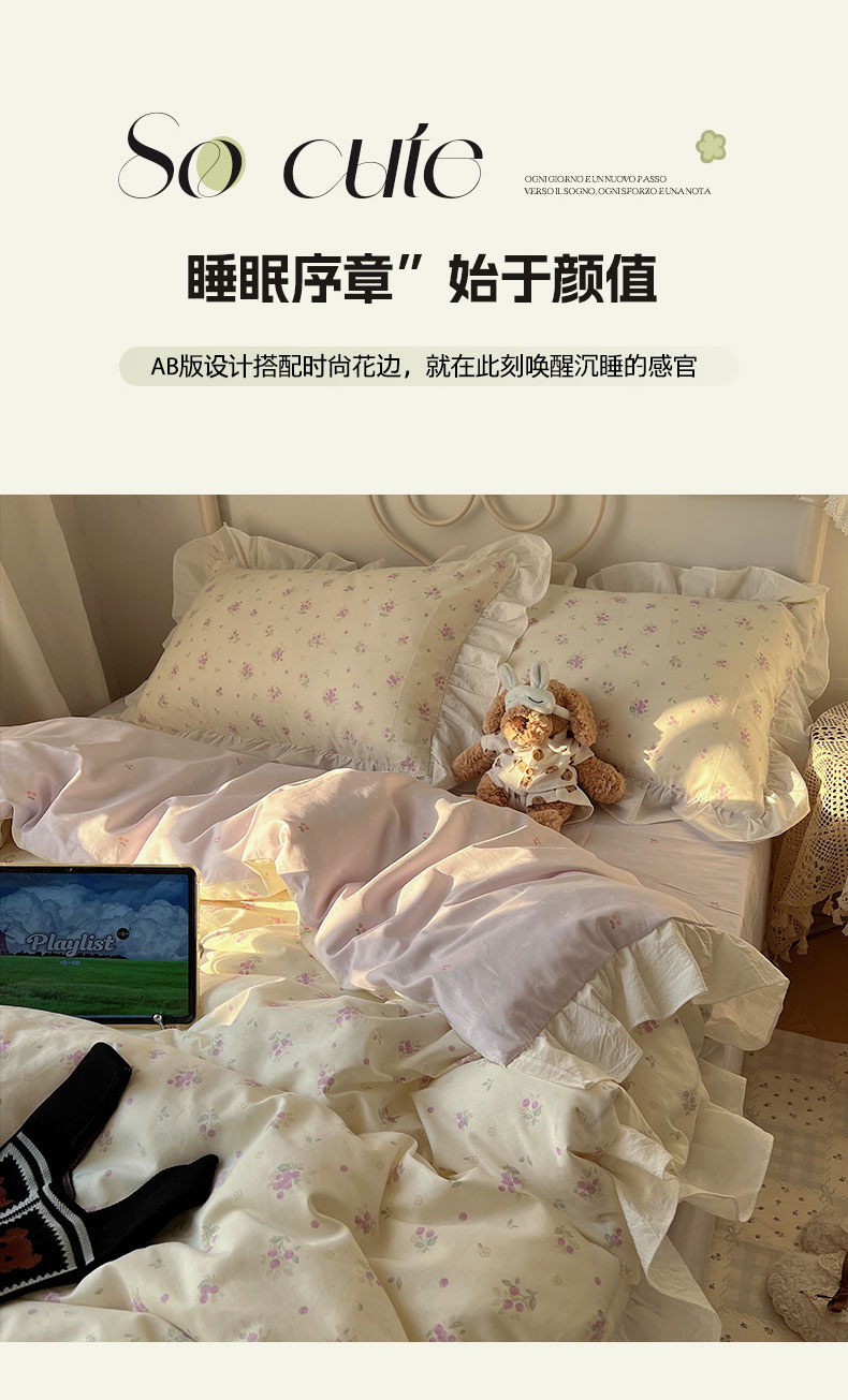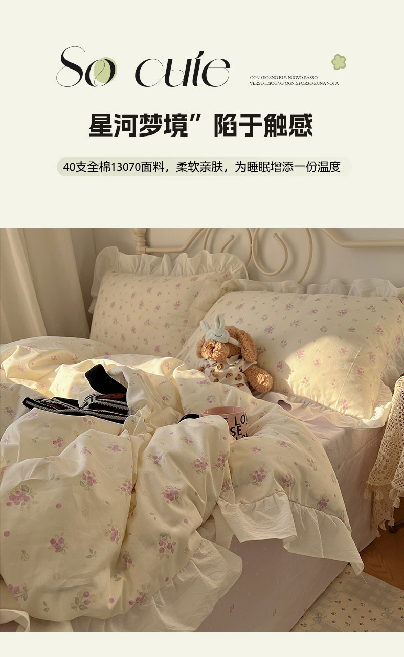 商品名称:六巷胡同 2026春夏新款INS博主风韩系小碎花全棉花边款四件套 贝芮