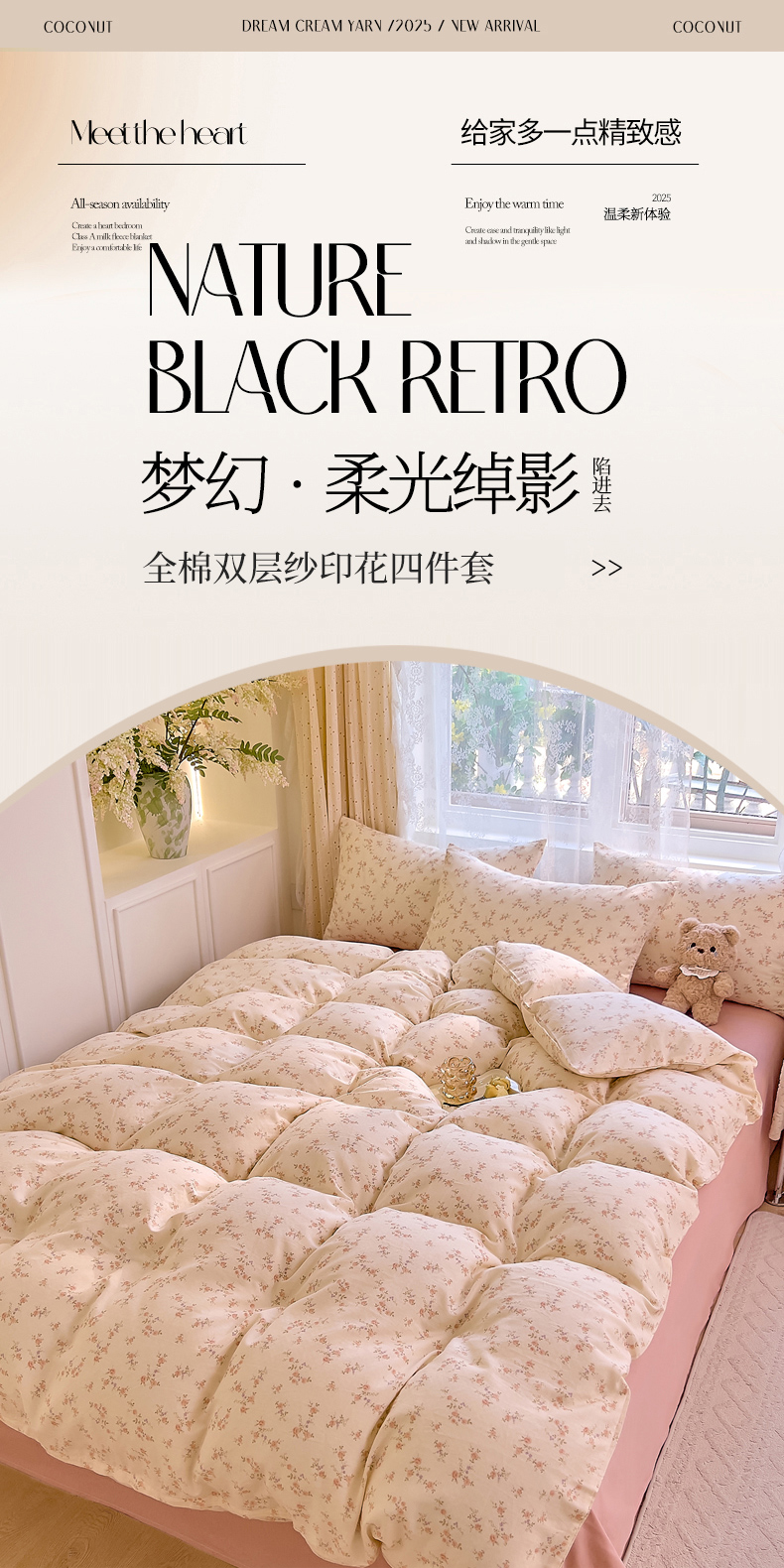 当前位置: 91家纺网 > 商品网购 > 床品套件 > 四件套 > 全棉普通四件套 > DoDo 兜兜 2026新款全棉纯棉柔软双层纱套件系列(可定做尺寸) 美娜