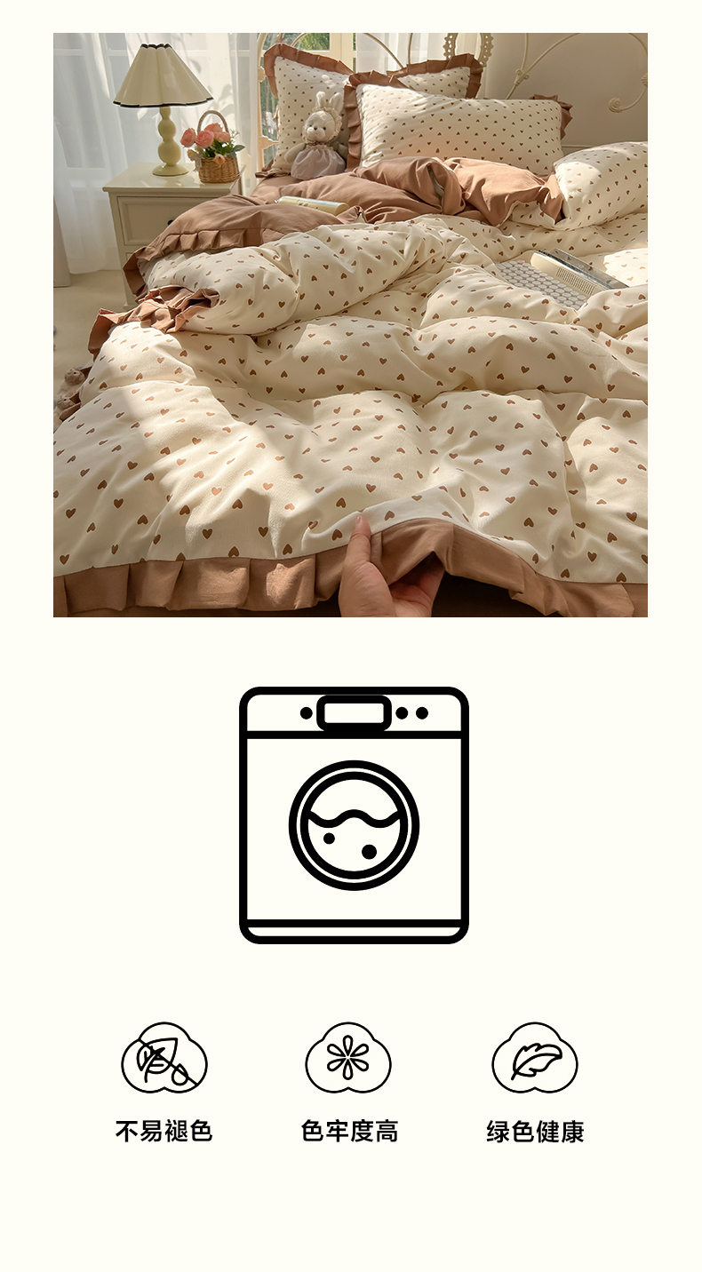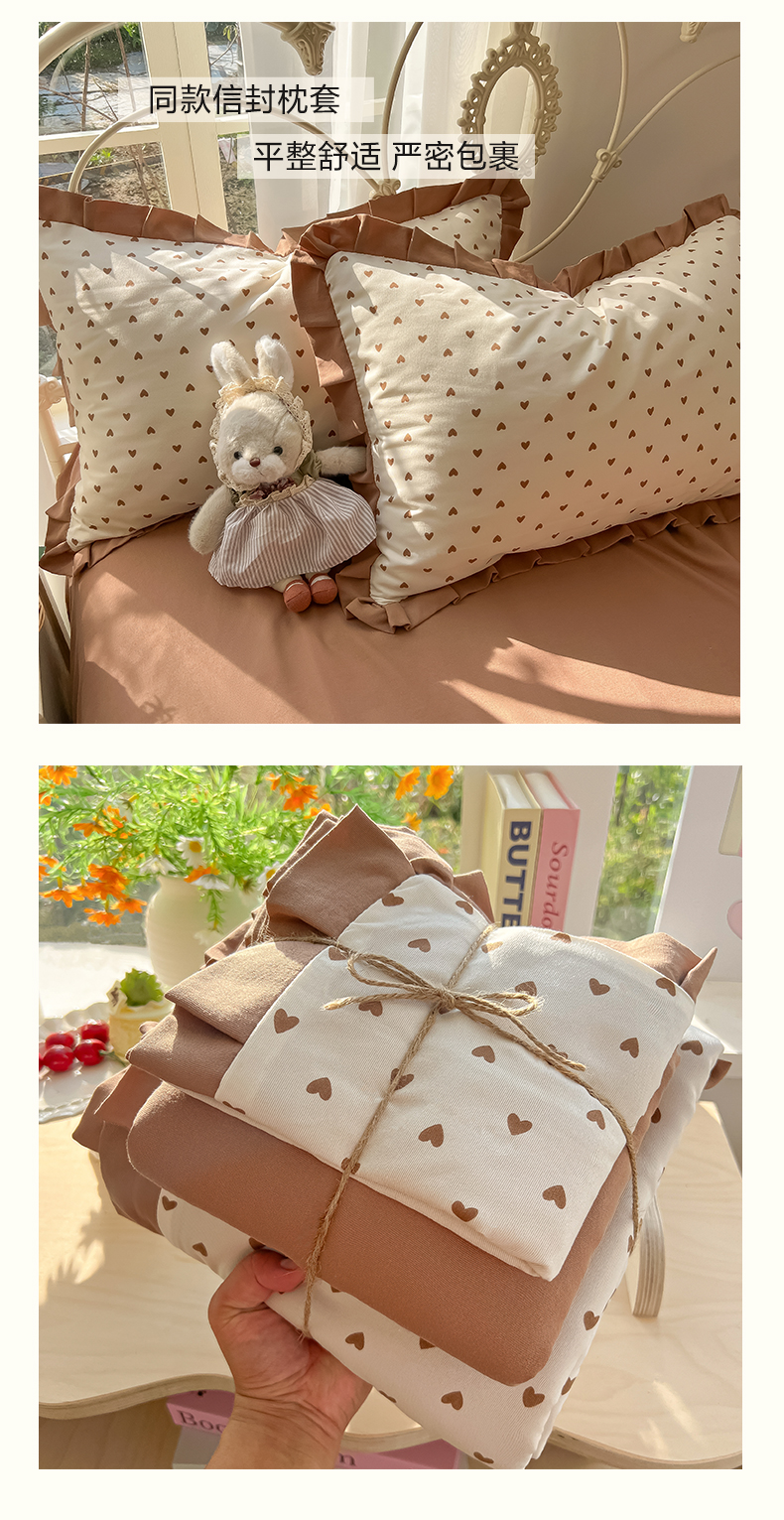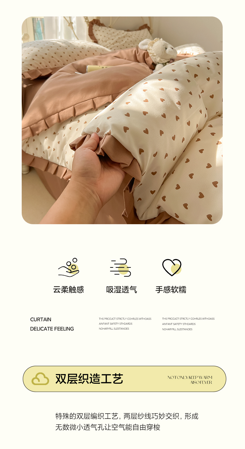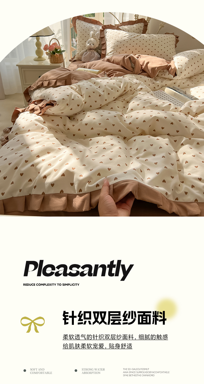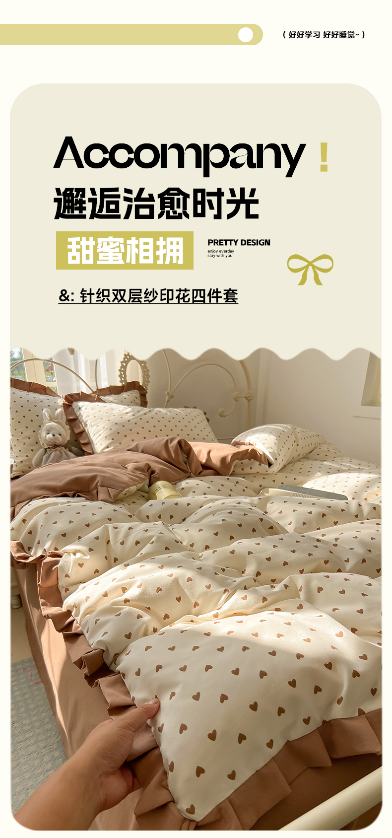 当前位置: 91家纺网 > 商品网购 > 床品套件 > 四件套 > 双层纱四件套 > 韩巢家纺 2026新款花边款针织双层纱四件套 爱心