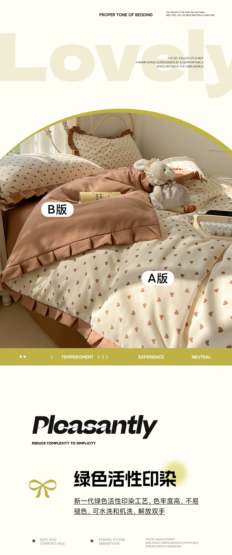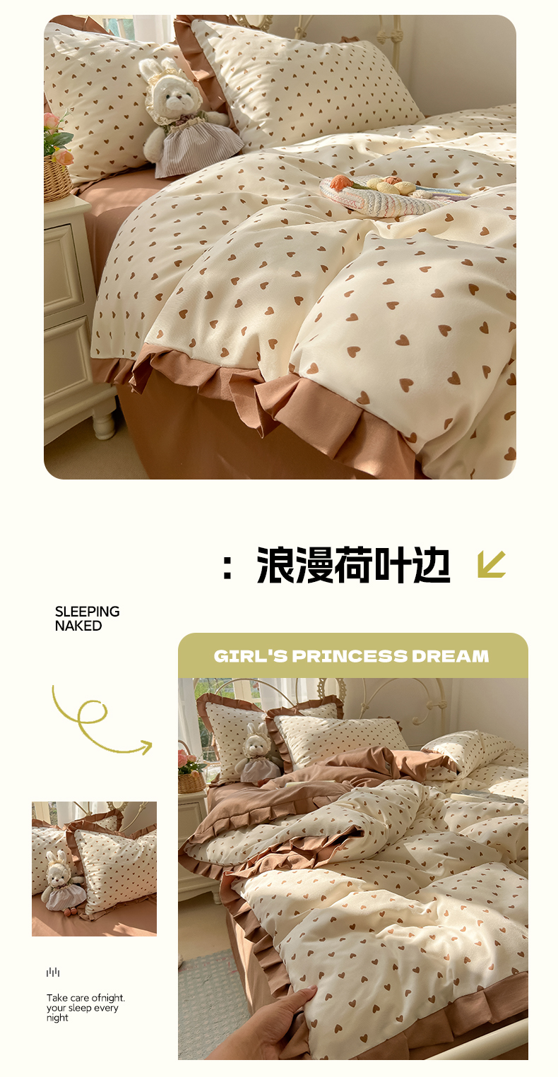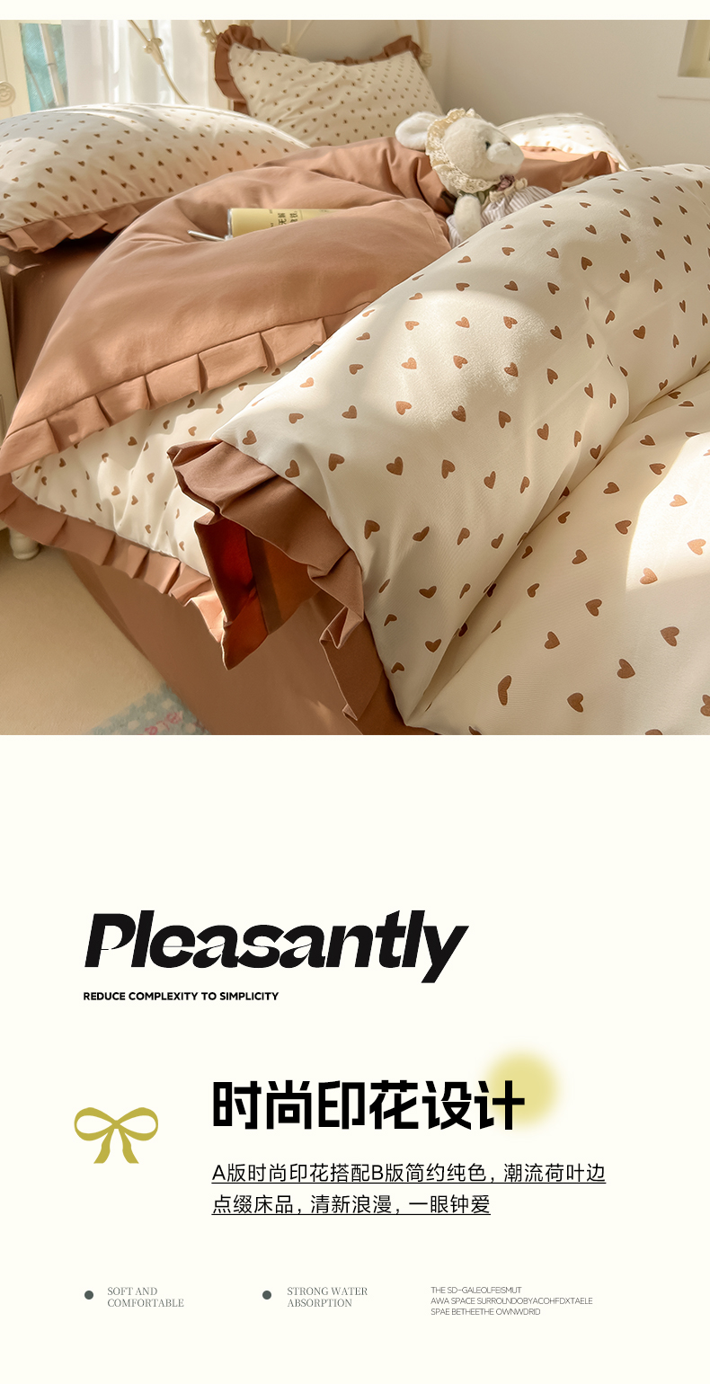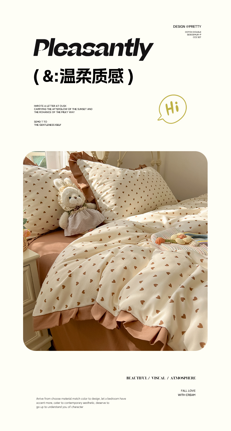 当前位置: 91家纺网 > 商品网购 > 床品套件 > 四件套 > 双层纱四件套 > 韩巢家纺 2026新款花边款针织双层纱四件套 爱心