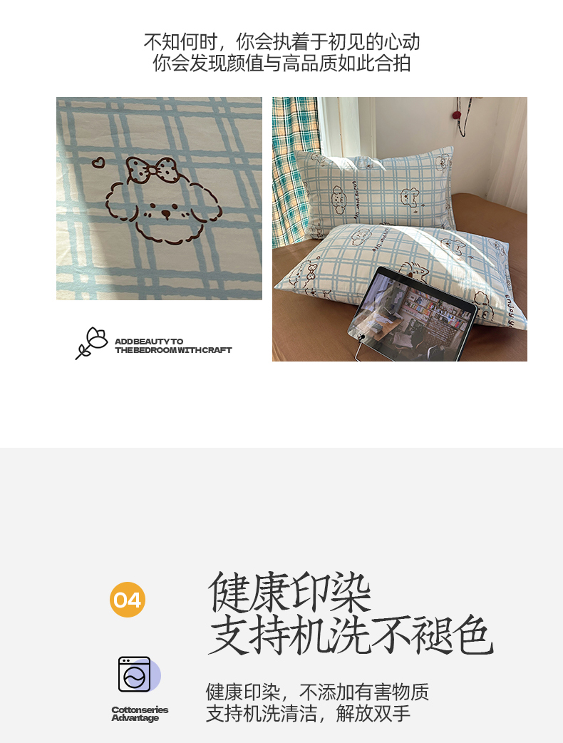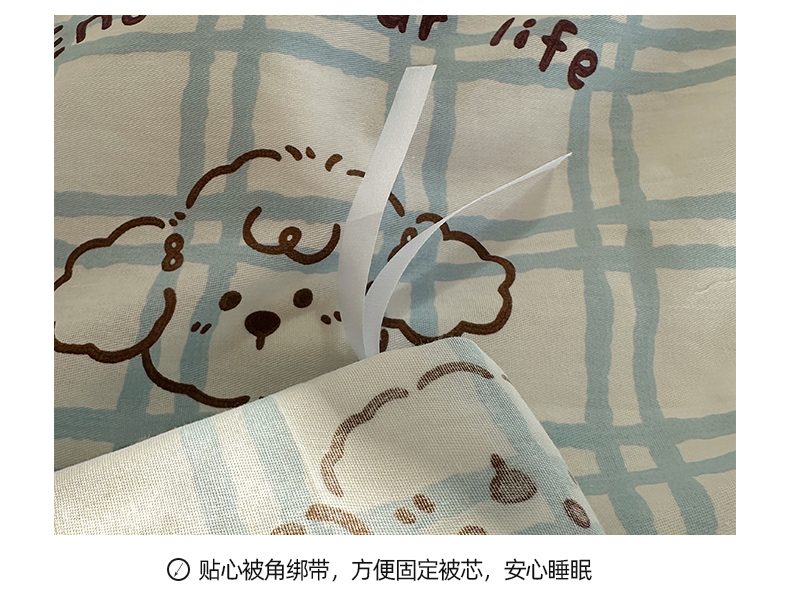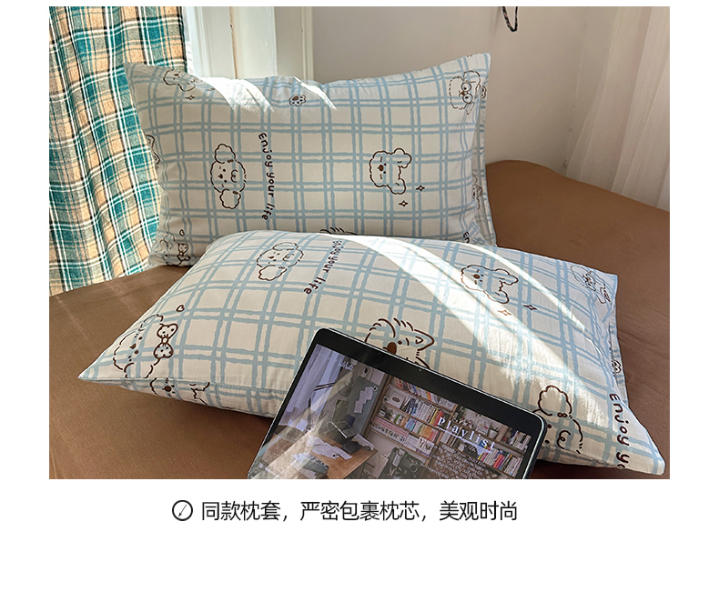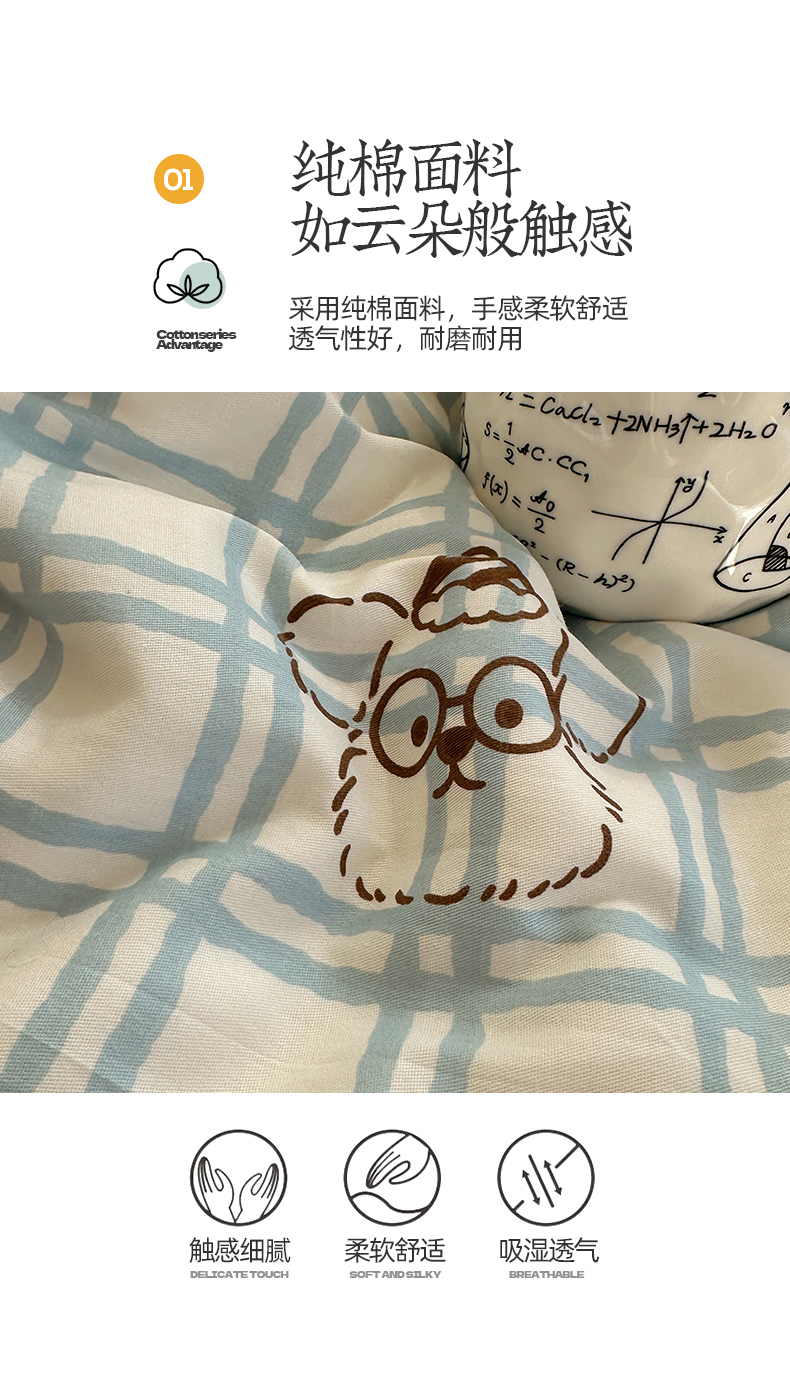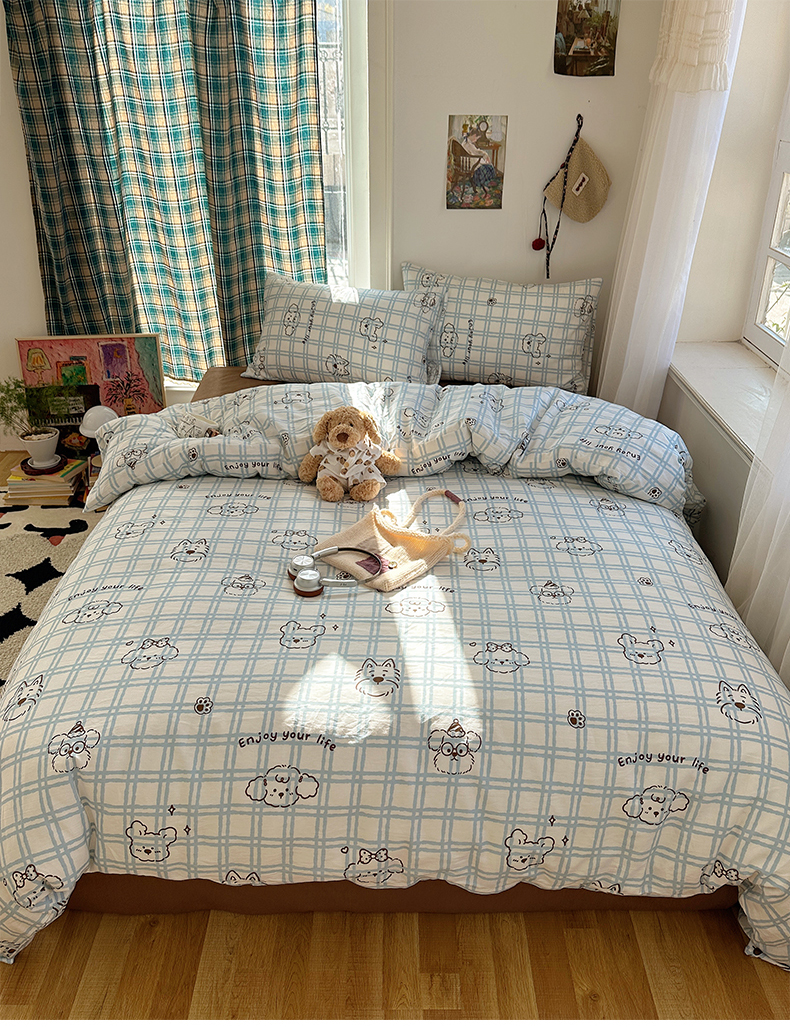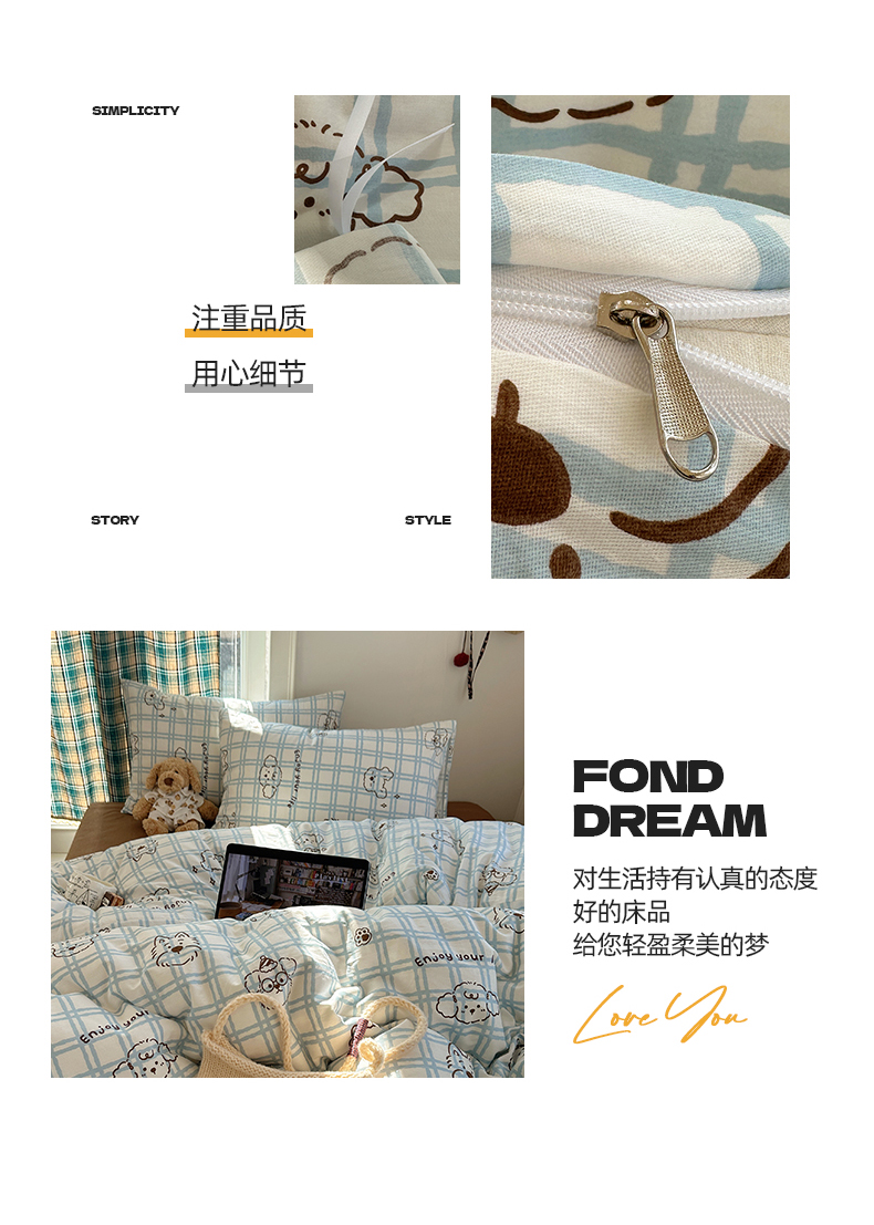 当前位置: 91家纺网 > 商品网购 > 床品套件 > 四件套 > 全棉普通四件套 > 桃子家居 2026新款ins小清新费尔岛猫咪全棉纯棉印花四件套 棉-蓝格线条狗