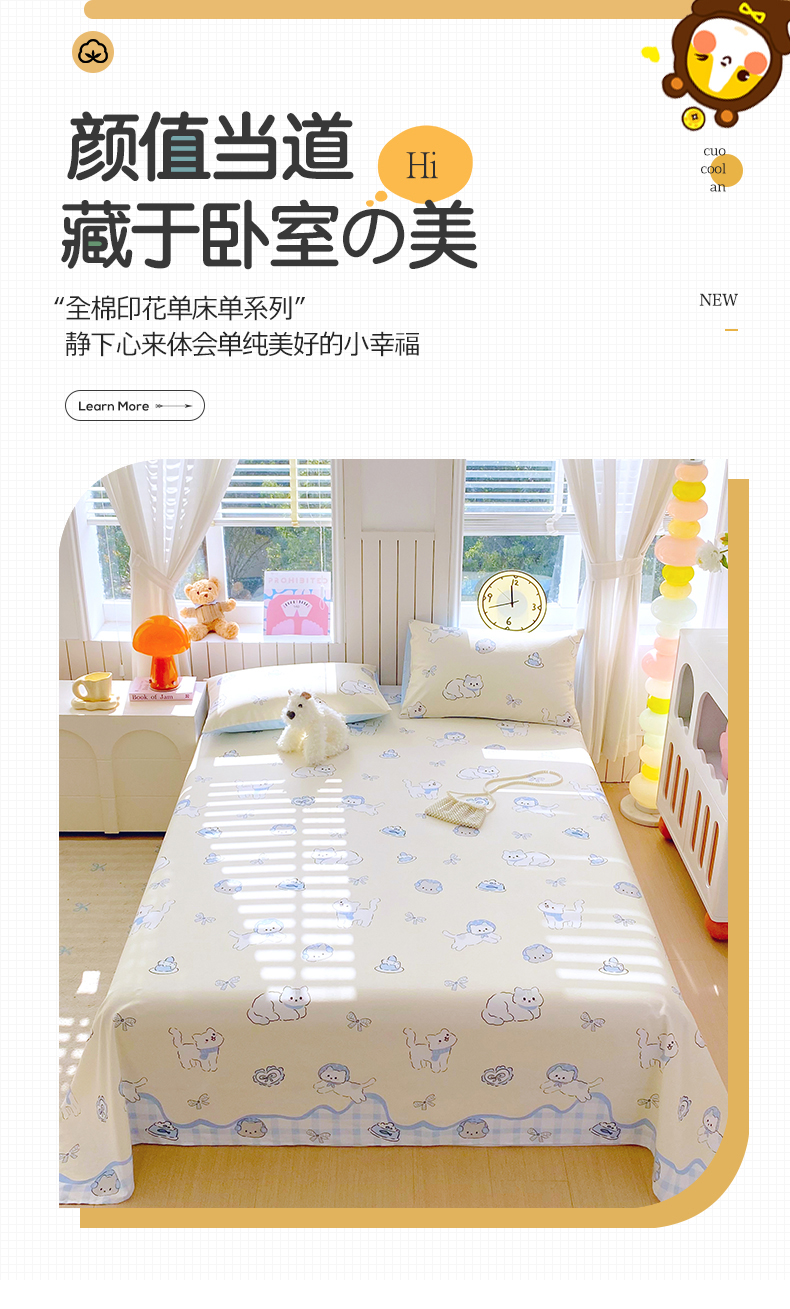 • 91家纺网 家纺一手货源 找家纺 小懒猪 2026全棉纯棉印花单床单 (提供买家秀) 喵语时光
