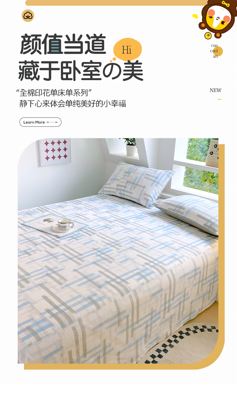 • 91家纺网 家纺一手货源 找家纺 小懒猪 2026全棉纯棉印花单床单床单单件 线影轻痕