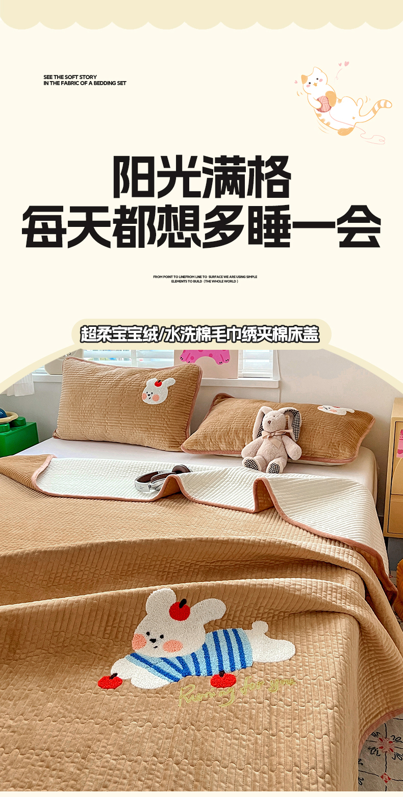 (总)鑫喜莱家纺 2025新款原创宝宝绒毛巾绣床盖三件套单床盖床垫单件床盖,冰淇淋兔,魔法小象,苹果小狗,狮子王,晚安小兔,组合图(仅供展示不可下单)