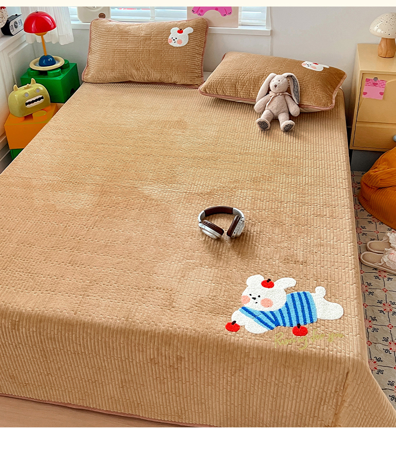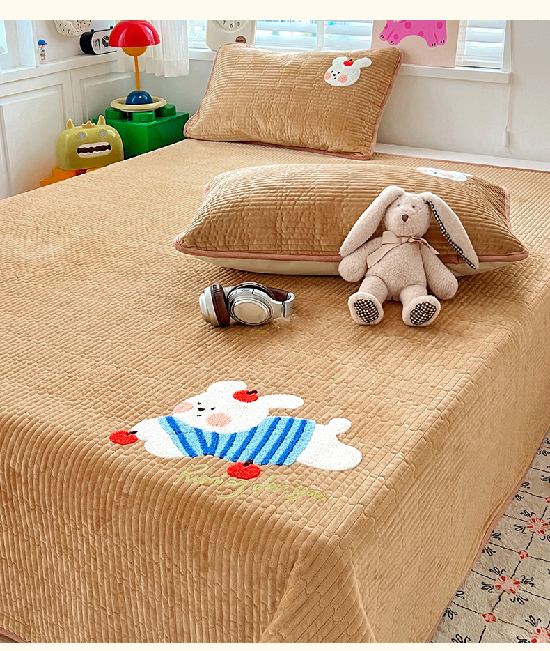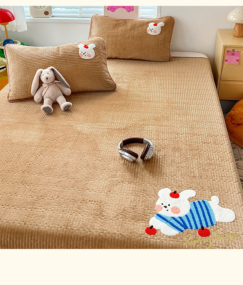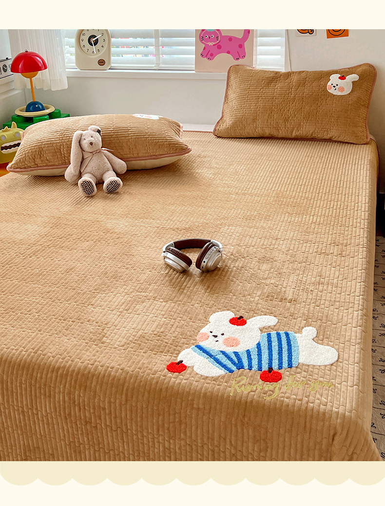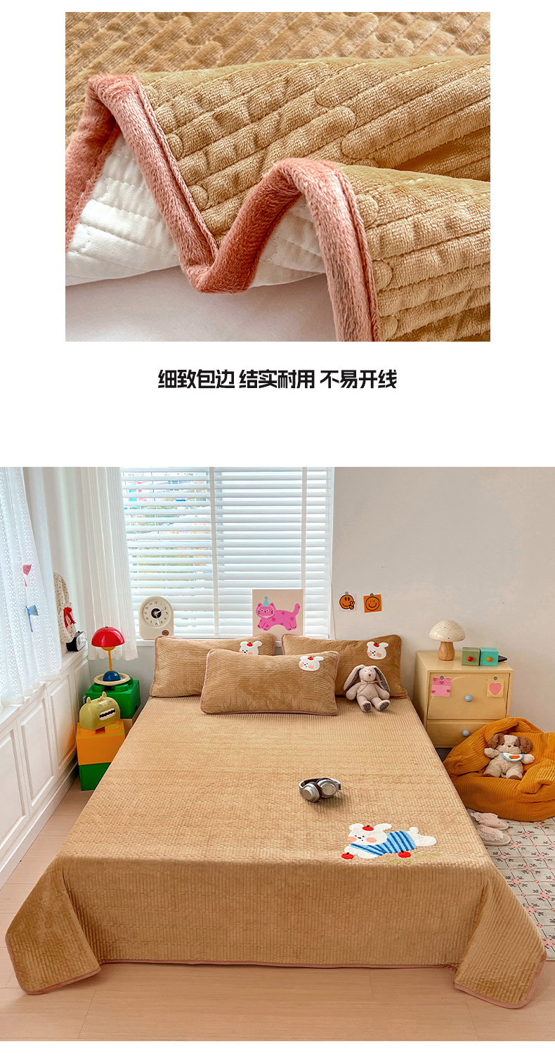 (总)鑫喜莱家纺 2025新款A版纯棉B版牛奶绒床盖毛巾绣系列单件床褥垫软床垫床盖,卡米熊和伙伴,恐龙呆呆,萝卜兔,梦幻小马,小猫伙伴,樱桃小兔,组合图仅供展示不可下单