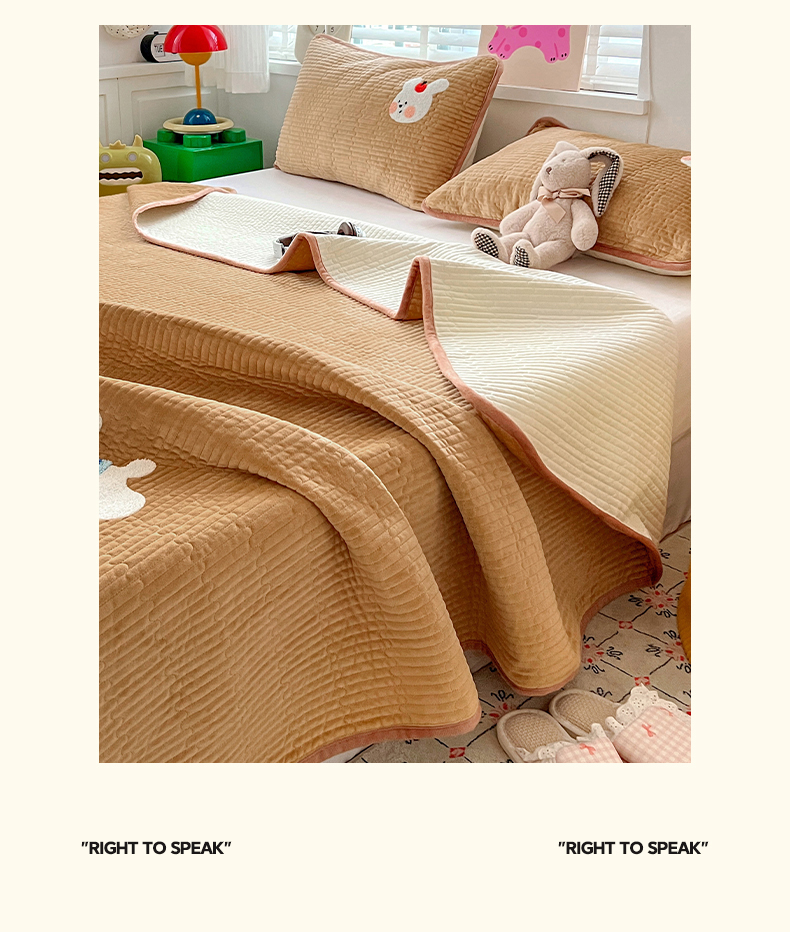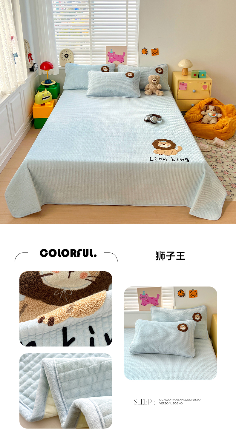 • 91家纺网 家纺一手货源 找家纺 (总)鑫喜莱家纺 2025新款原创宝宝绒毛巾绣床盖三件套单床盖床垫单件床盖,冰淇淋兔,魔法小象,苹果小狗,狮子王,晚安小兔,组合图(仅供展示不可下单)