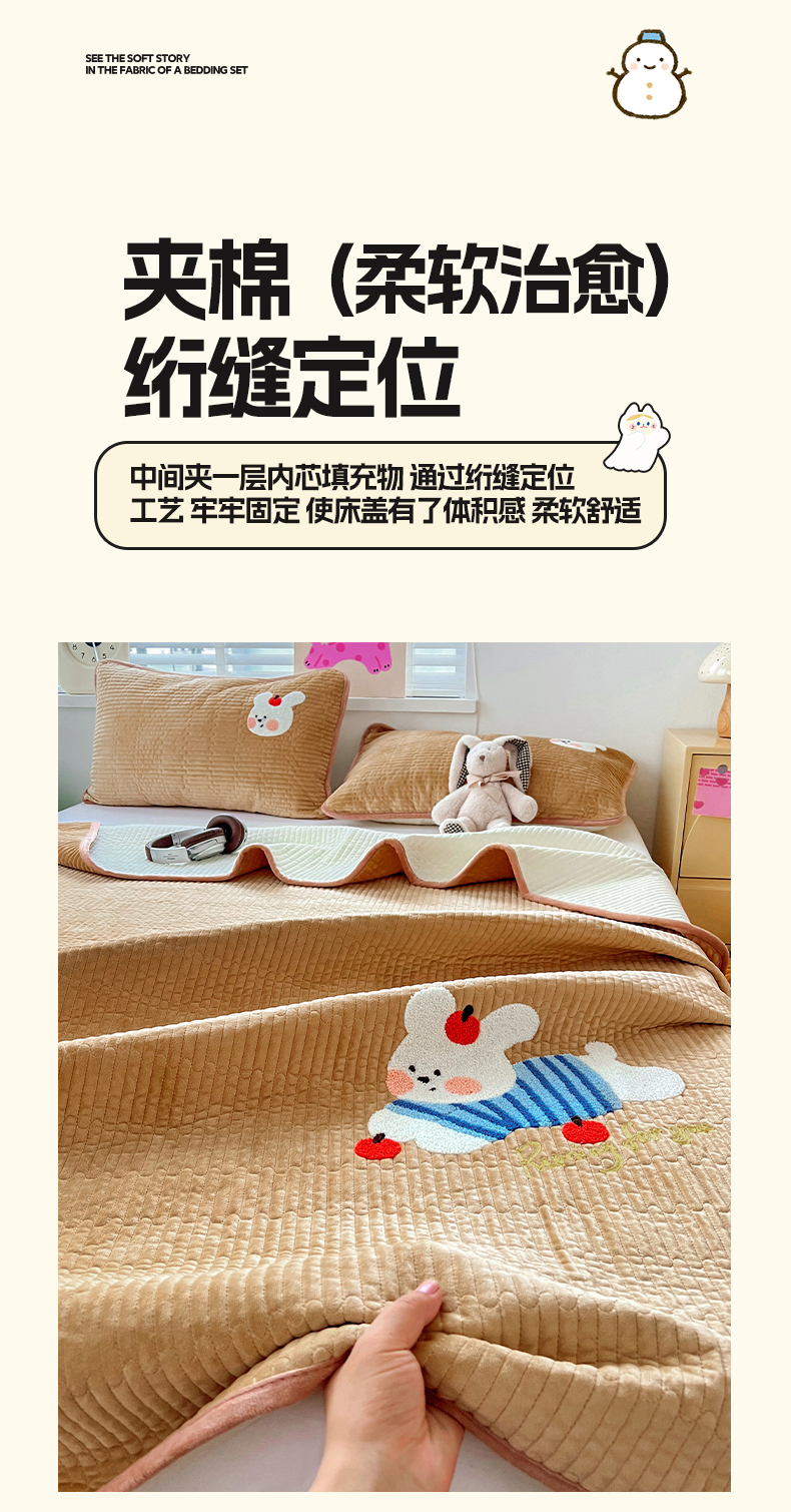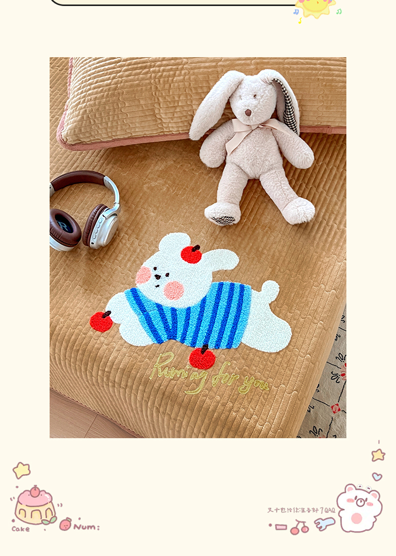 • 91家纺网 家纺一手货源 找家纺 (总)鑫喜莱家纺 2025新款A版纯棉B版牛奶绒床盖毛巾绣系列单件床褥垫软床垫床盖,卡米熊和伙伴,恐龙呆呆,萝卜兔,梦幻小马,小猫伙伴,樱桃小兔,组合图仅供展示不可下单