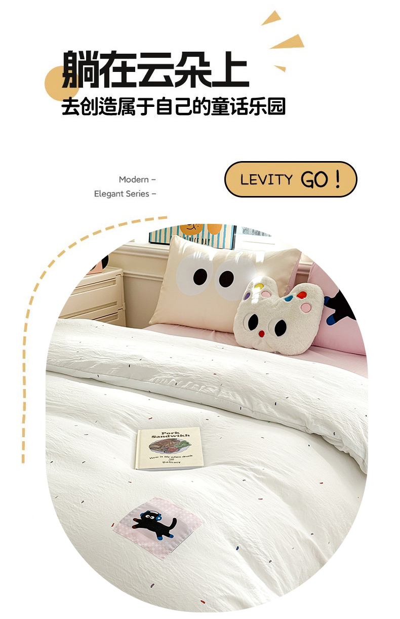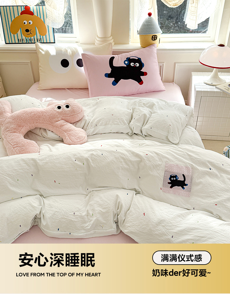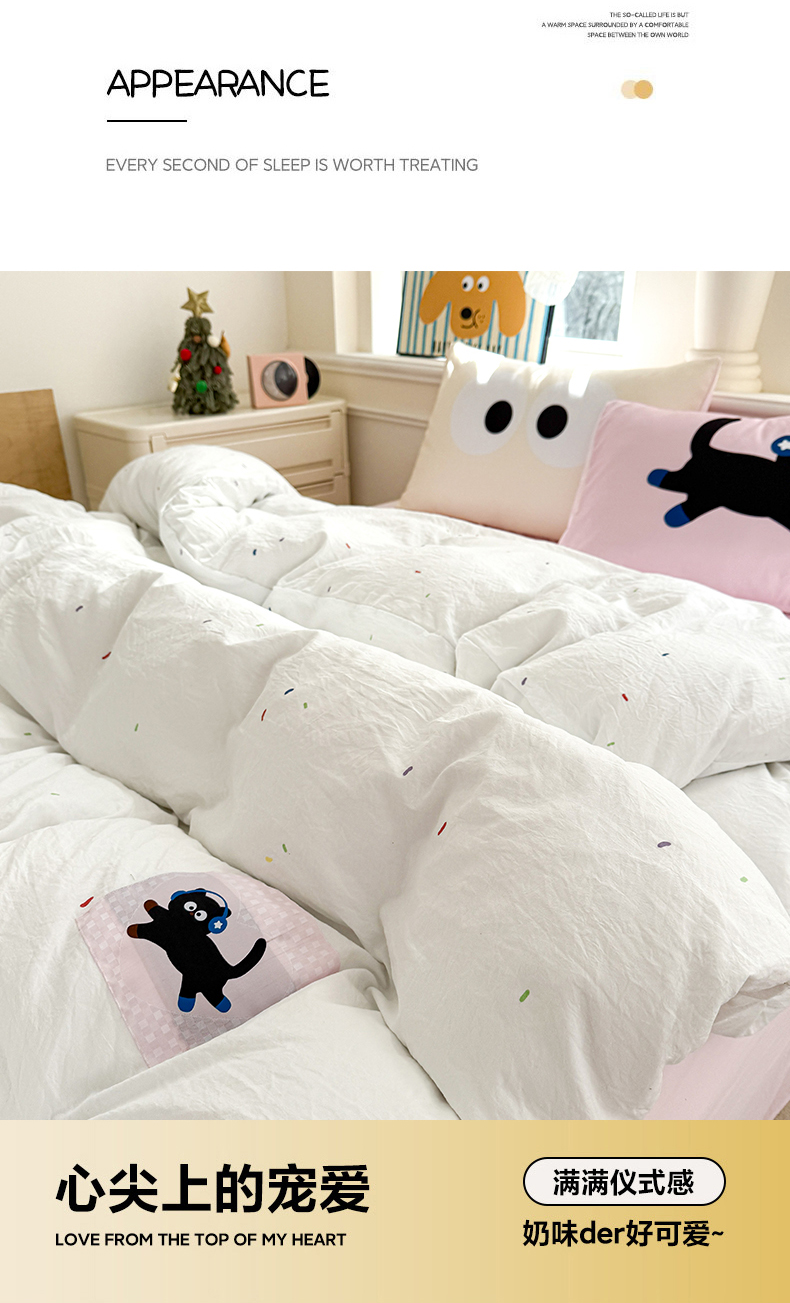 当前位置: 91家纺网 > 商品网购 > 床品套件 > 四件套 > 水洗棉四件套 > 温眠家纺 2025新款水洗云朵棉(高克重)数码布标四件套 摇滚猫