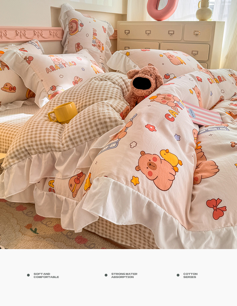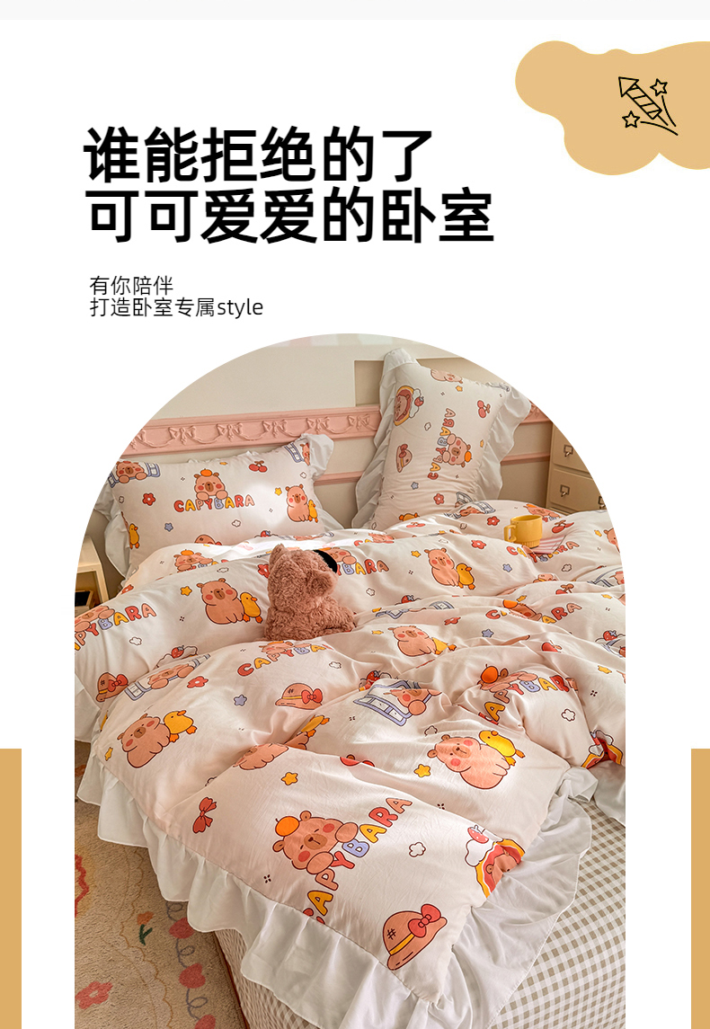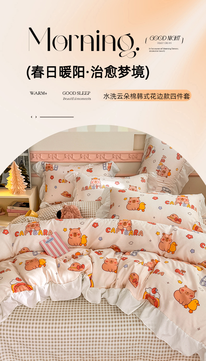 当前位置: 91家纺网 > 商品网购 > 床品套件 > 四件套 > 水洗棉四件套 > 温眠家纺 2025新款水洗云朵棉韩式INS减龄花边款四件套 卡巴伙伴