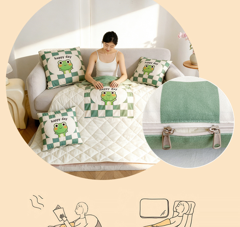 (总)新奇异 2025新款数码印花多功能抱枕被,快乐青蛙,快乐小狗,领结小熊,快乐小象,快乐猫咪,好运蓝熊