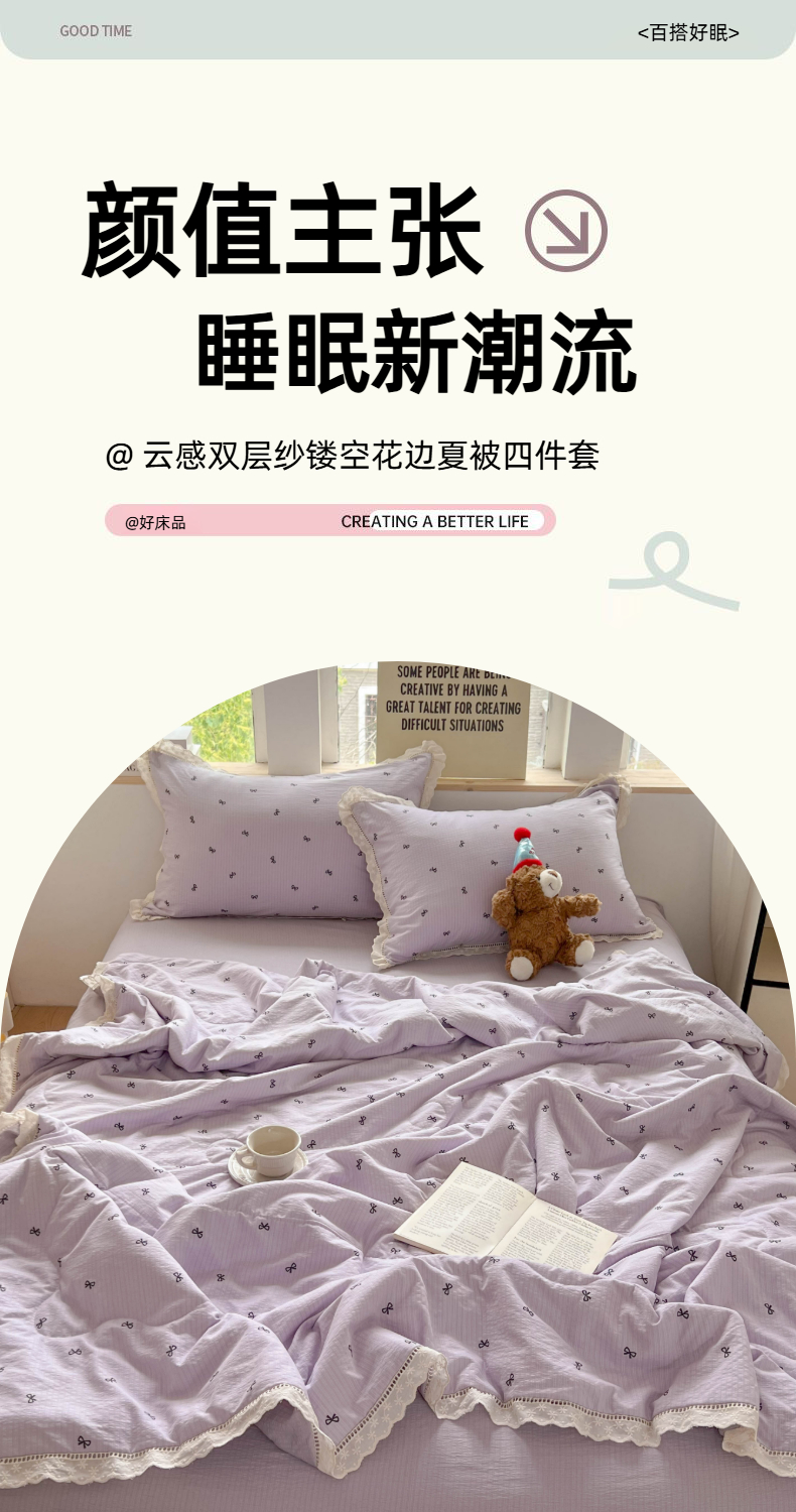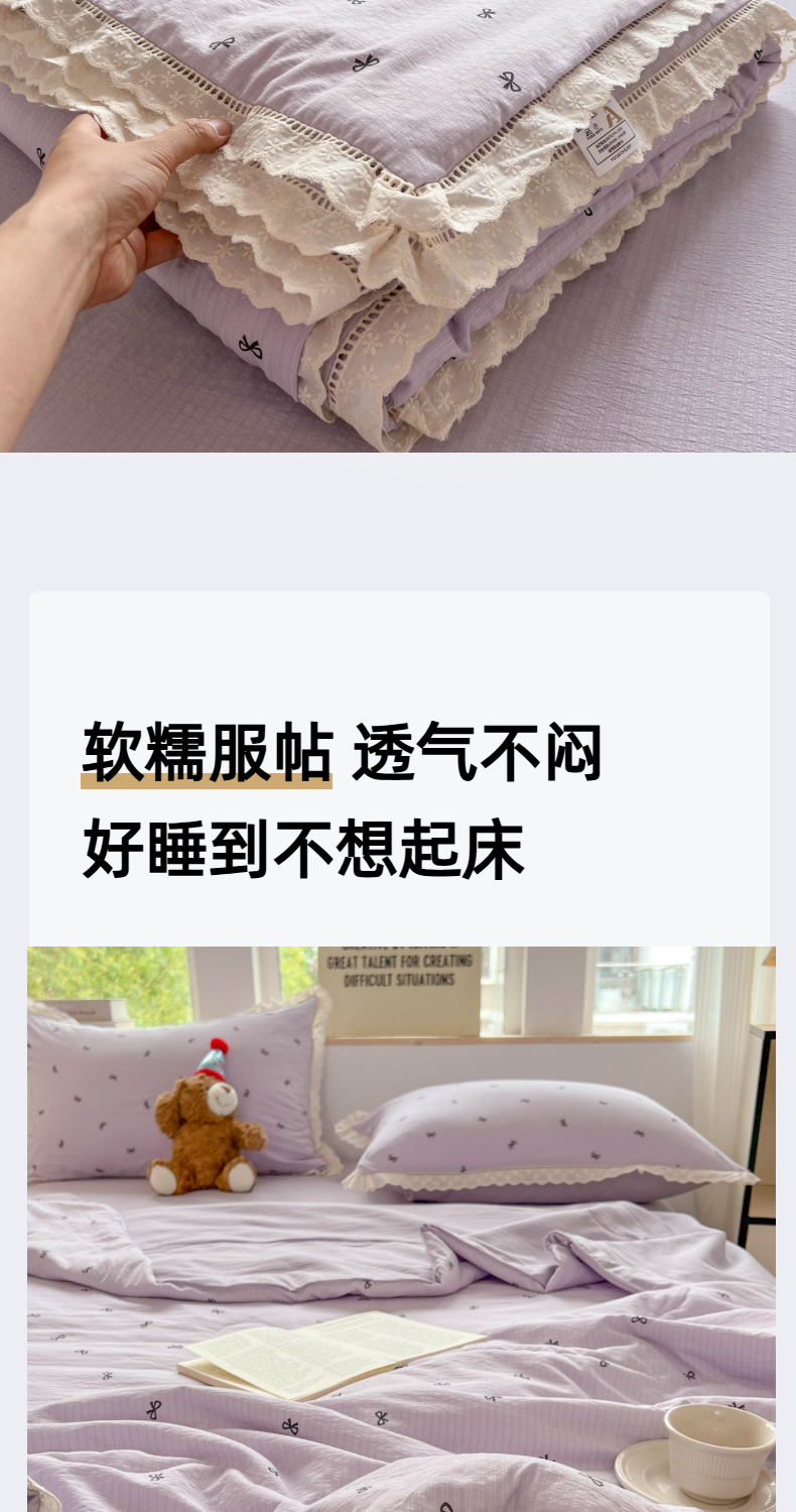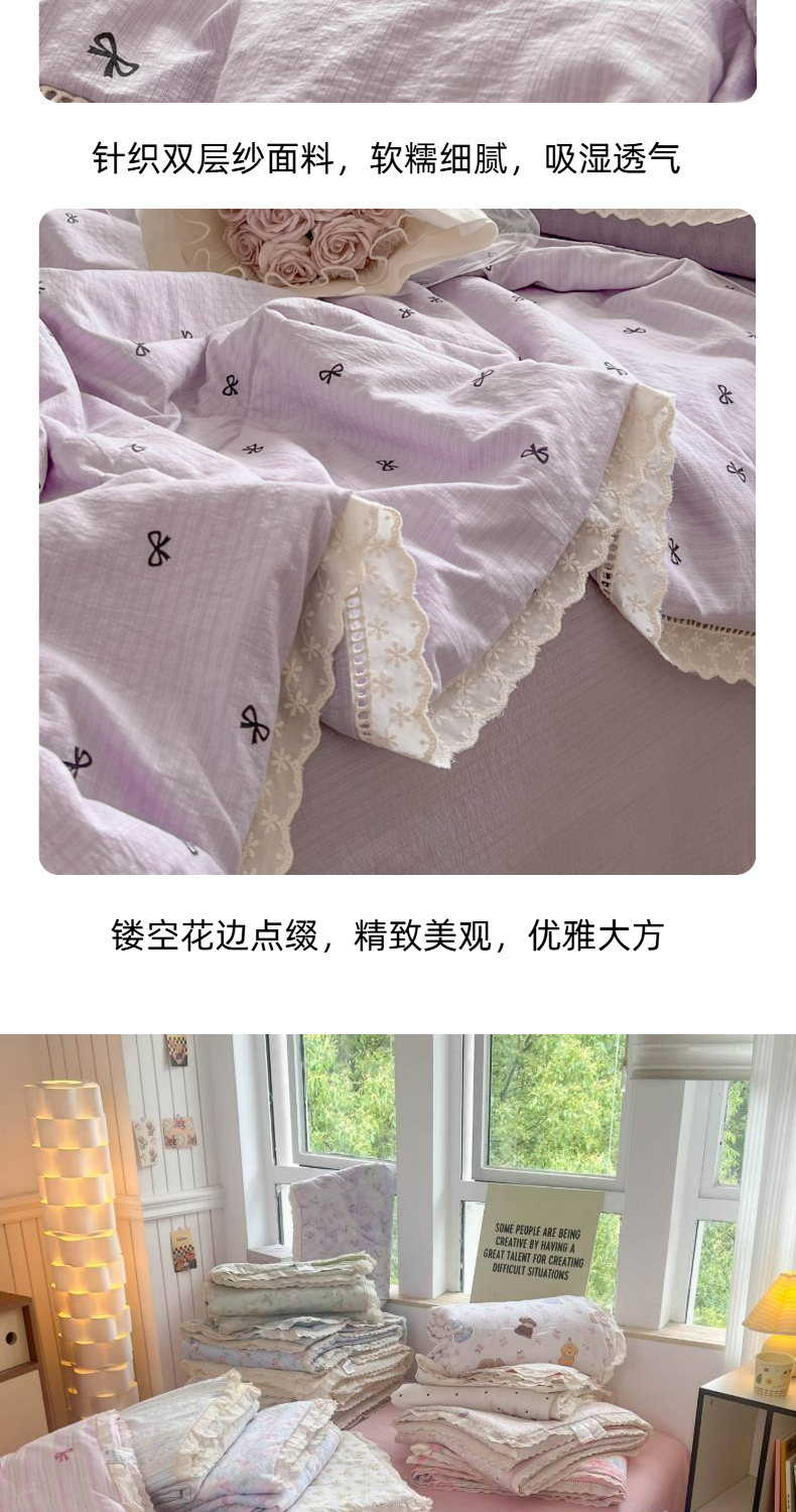 商品名称:温眠家纺 2025新款云感双层纱镂空花边夏被四件套 小资情调