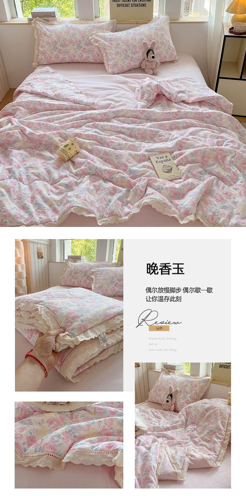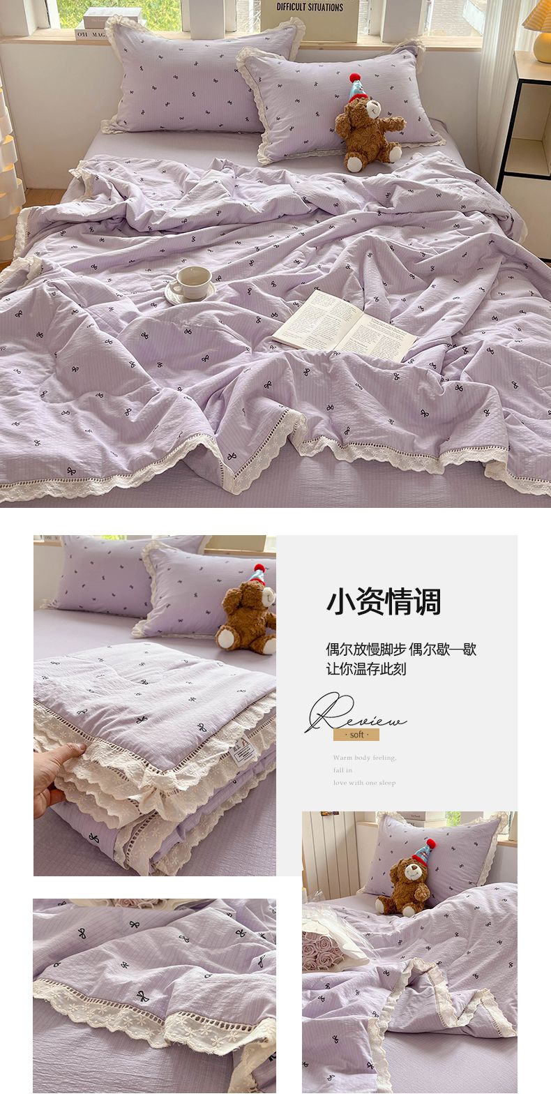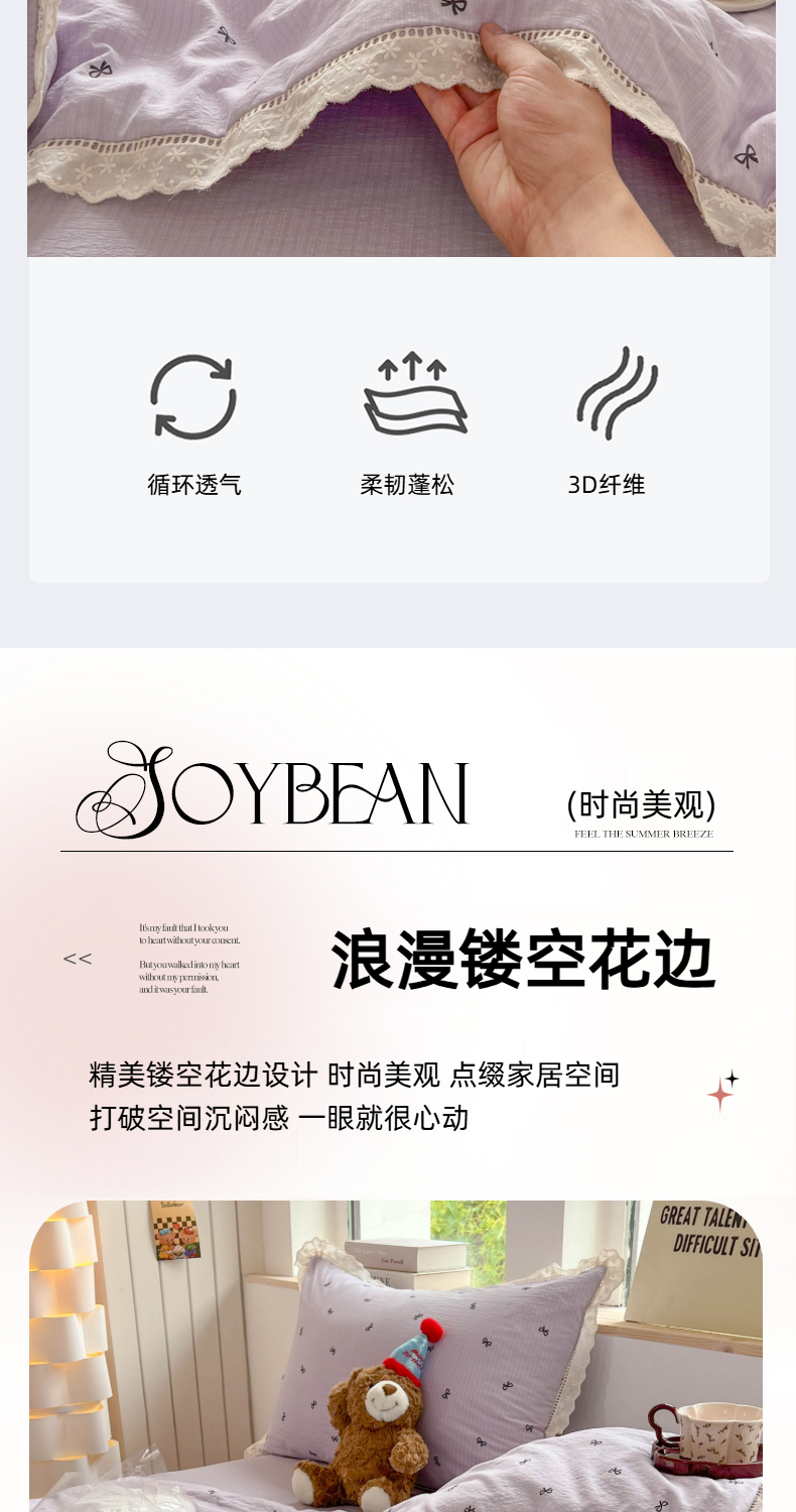 商品名称:温眠家纺 2025新款云感双层纱镂空花边夏被四件套 小资情调