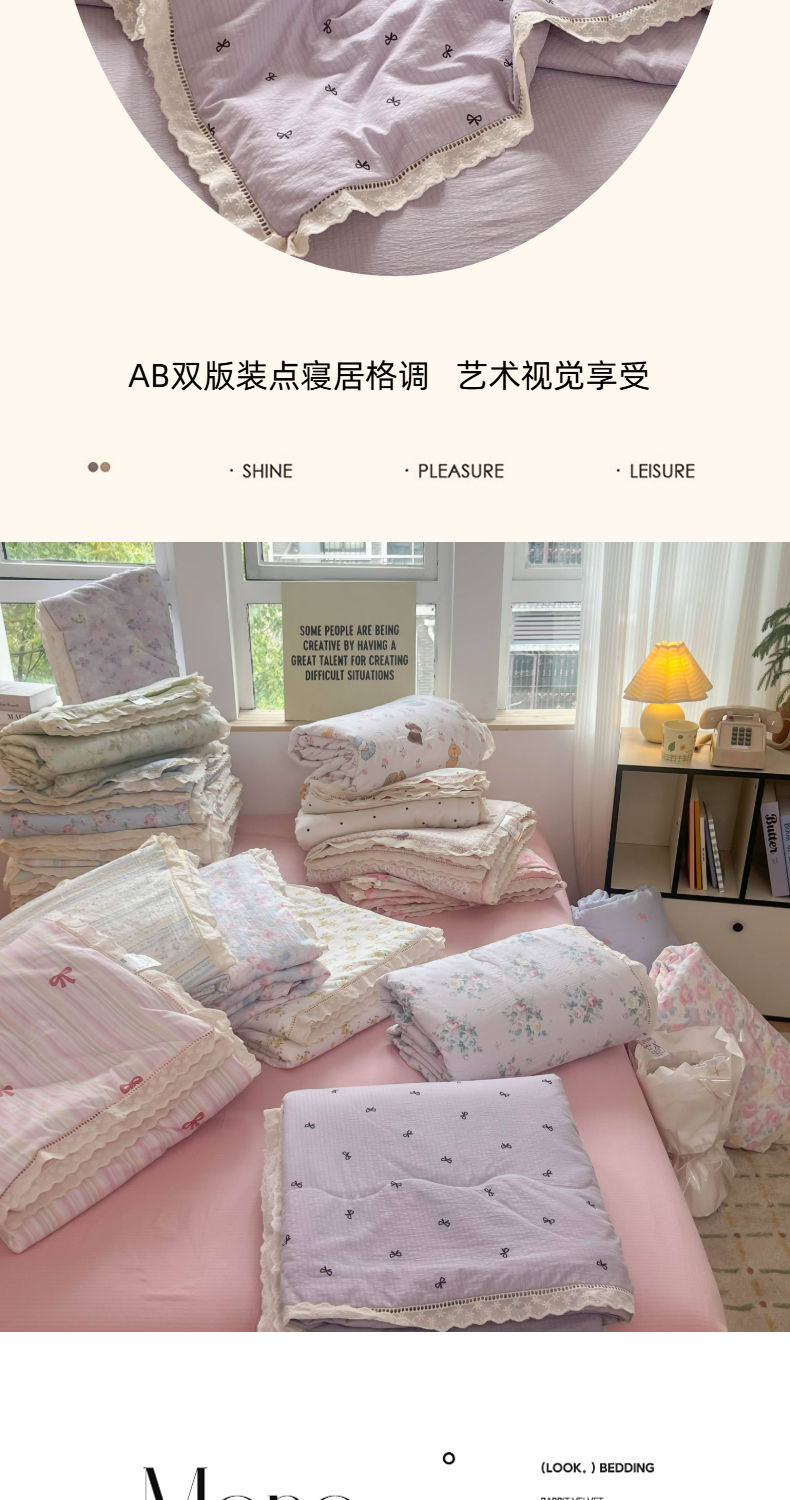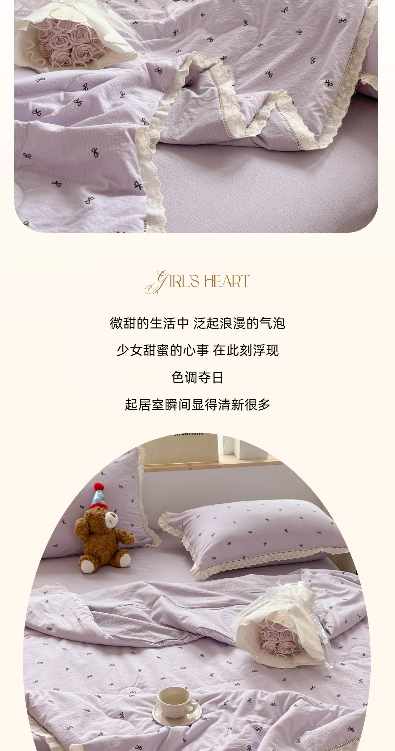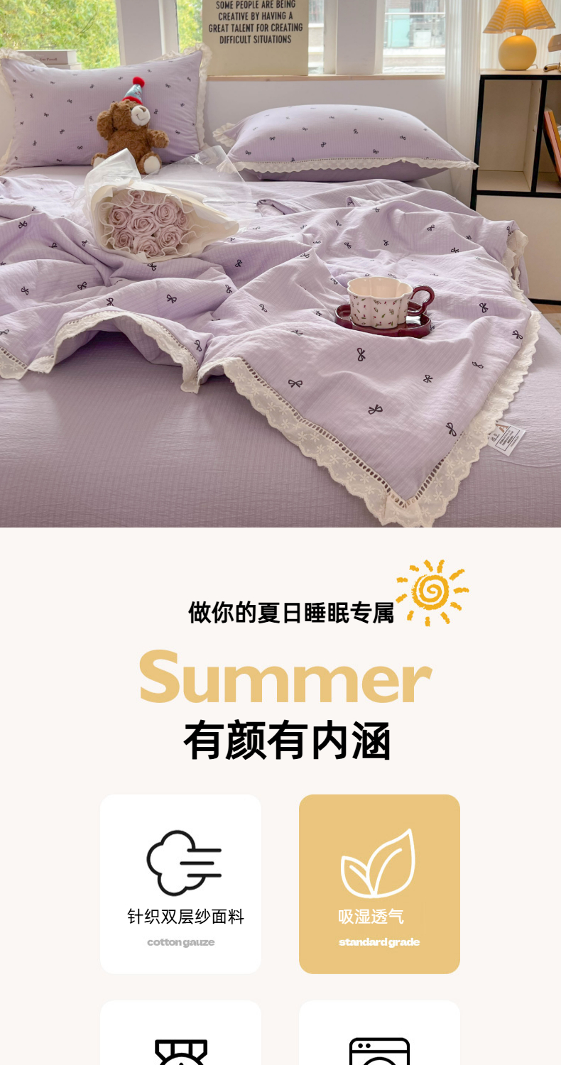 温眠家纺 2025新款云感双层纱镂空花边夏被四件套 小资情调