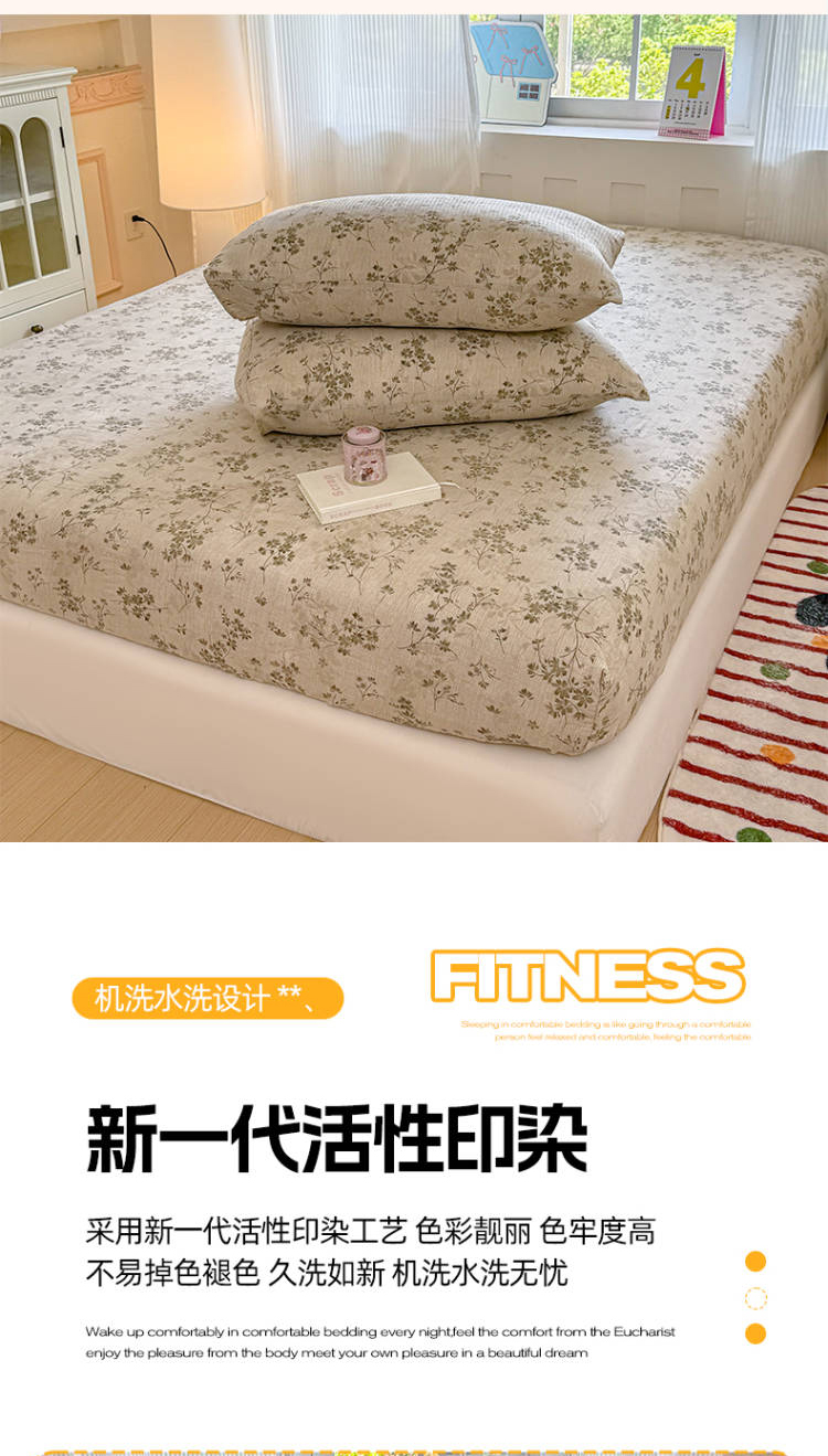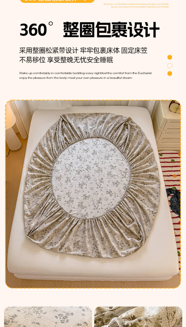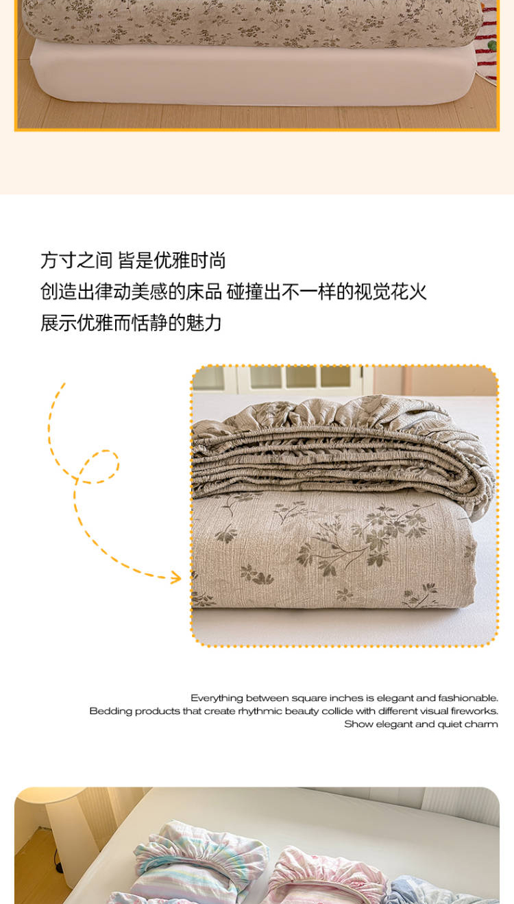 • 91家纺网 家纺一手货源 找家纺 温眠家纺 2025春夏新款云感棉双层纱床笠单床笠枕套三件套 失约温柔