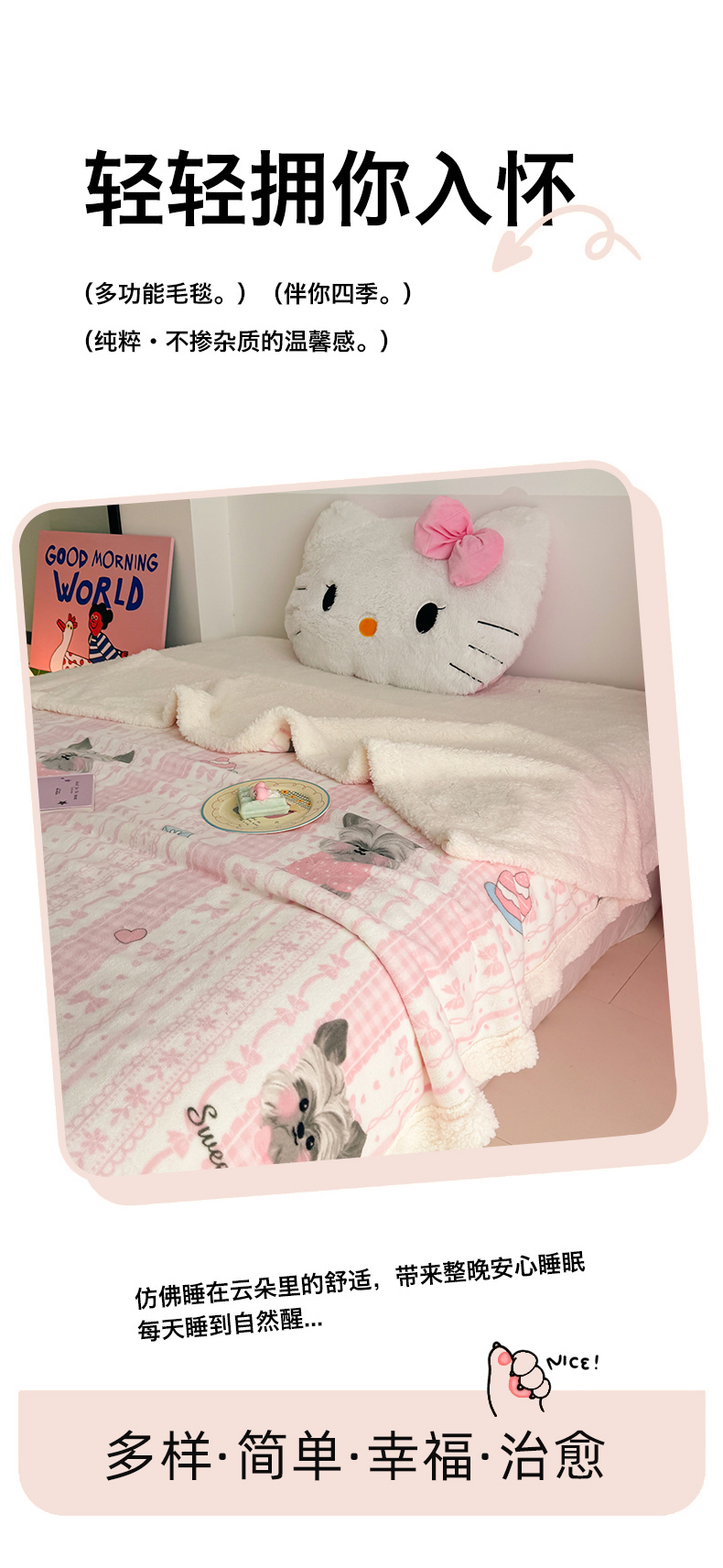 温眠家纺 2025新款ins羊羔绒牛奶绒可被套休闲毯单被套-毯子图 羊-欢喜
