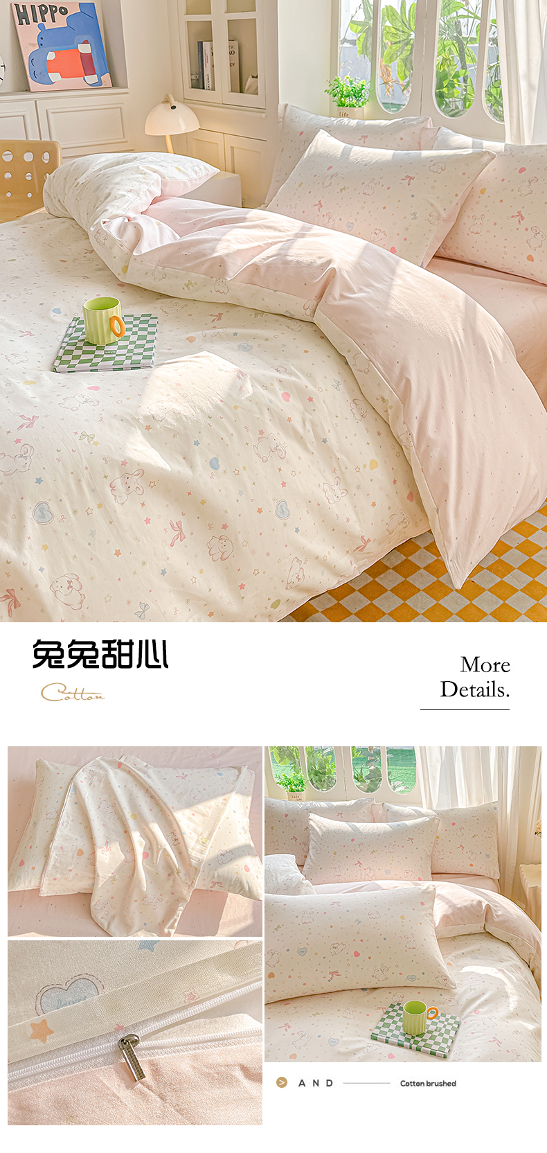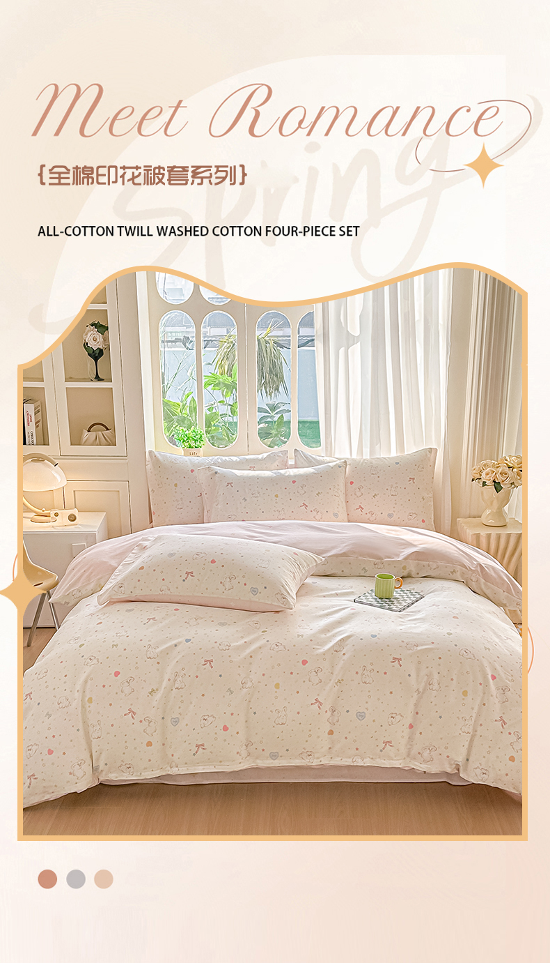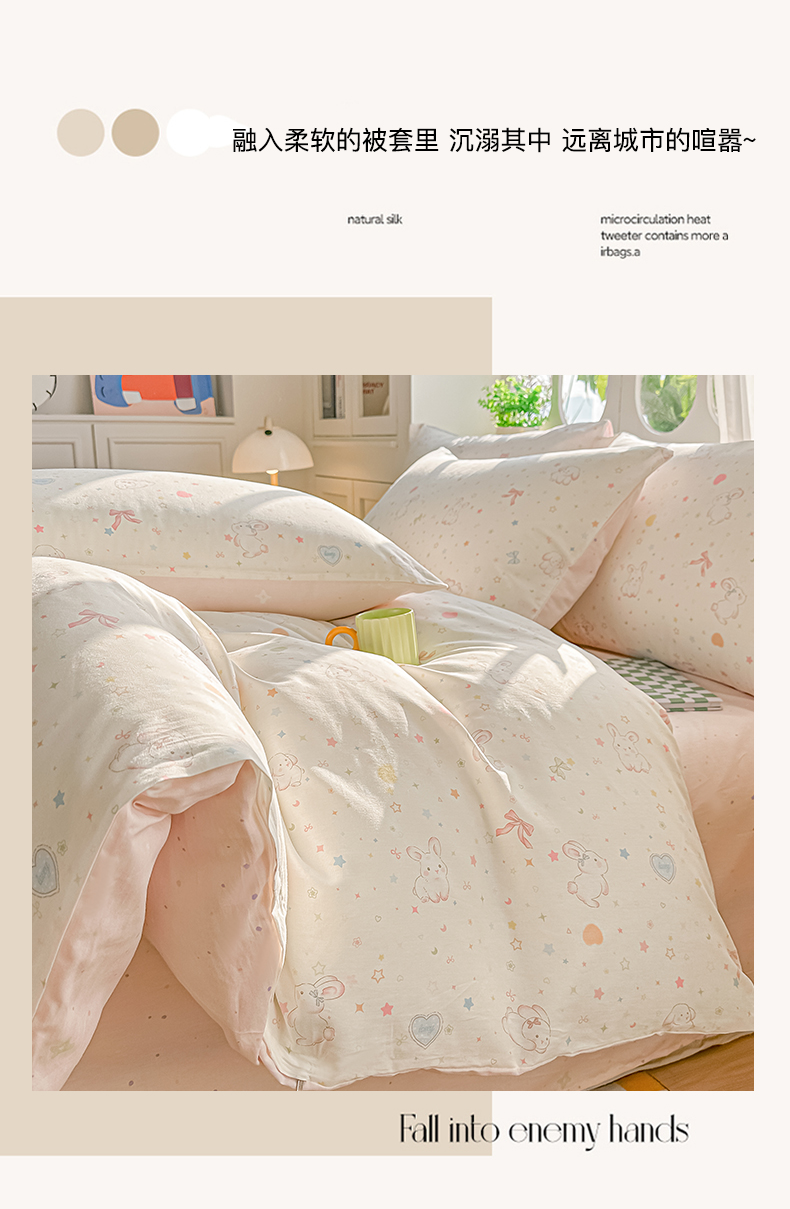 • 91家纺网 家纺一手货源 找家纺 颜选 2026新款全棉印花单被套 兔兔甜心