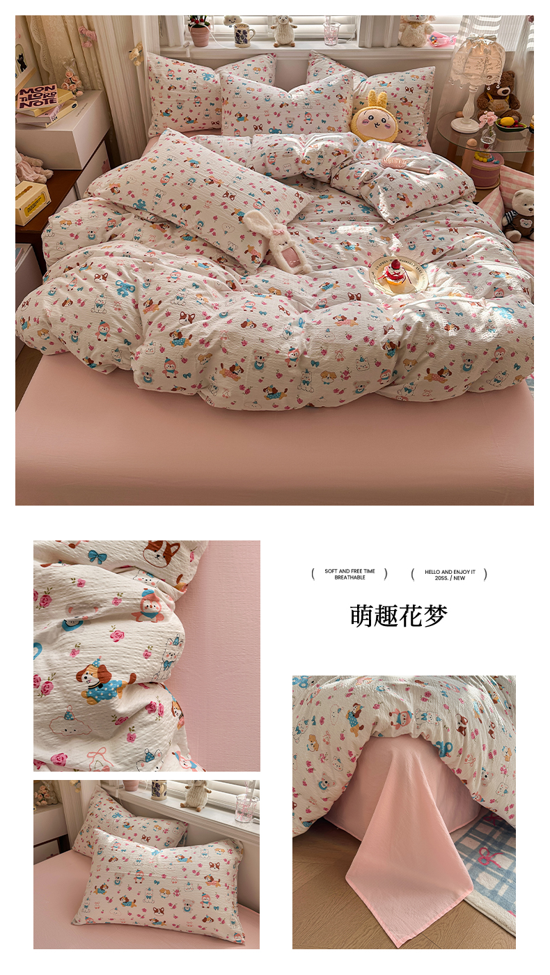 (总)卡斯诺 2025新款芦荟棉四件套7月新花型,萌萌狗,布丁狗,丛林猫,蝶恋花,粉色小熊,开心树,绿野仙踪,美好时光,萌兔宝贝,迷恋,喵星人,墨迹,甜心汪汪,旺旺小狗,幸运女孩,熊猫日记,着迷