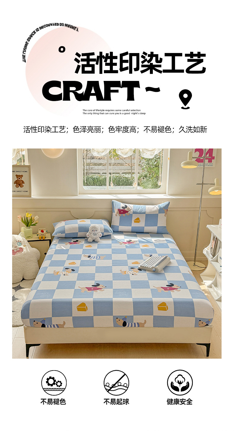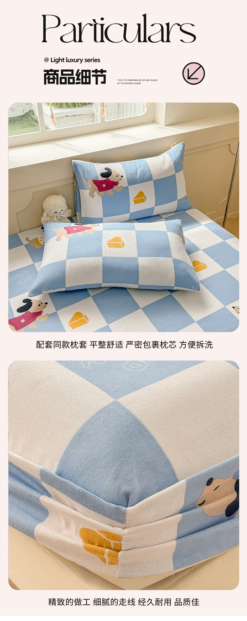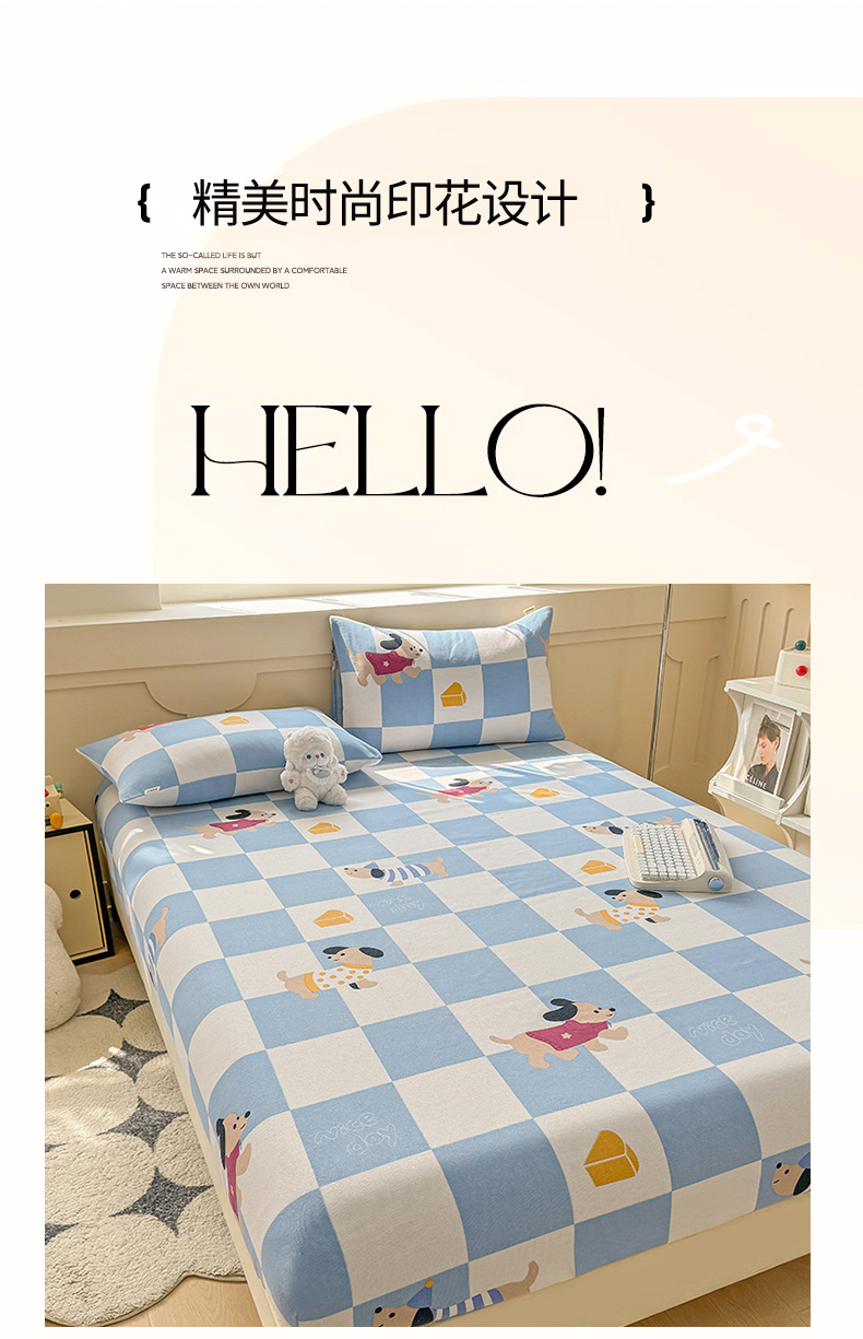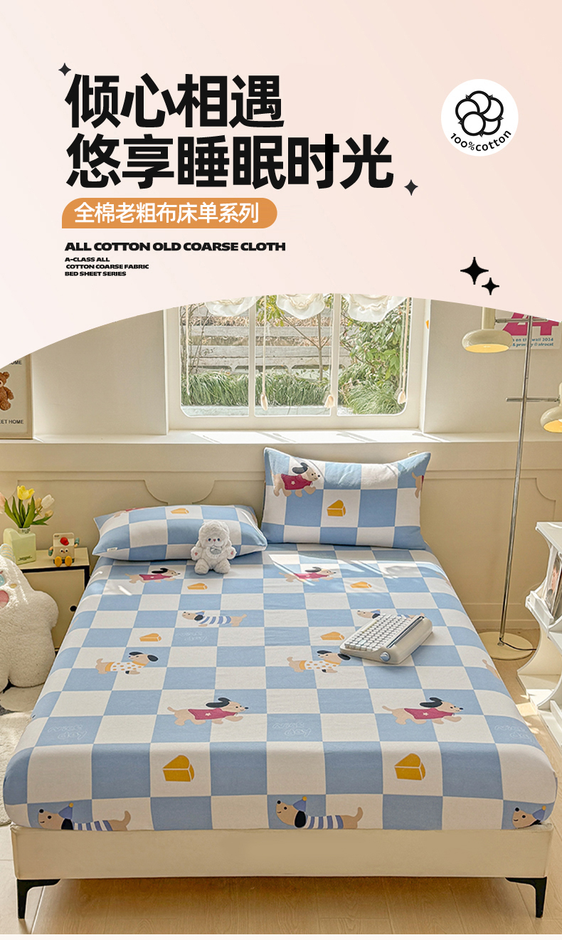 爱彼家纺 2026新款舒适透气老粗布凉席印花床笠单件-床笠三件套 老粗布床笠-腊肠狗-蓝
