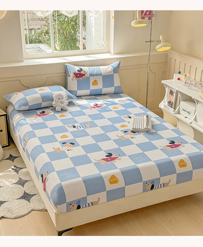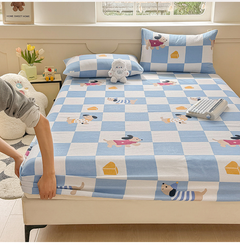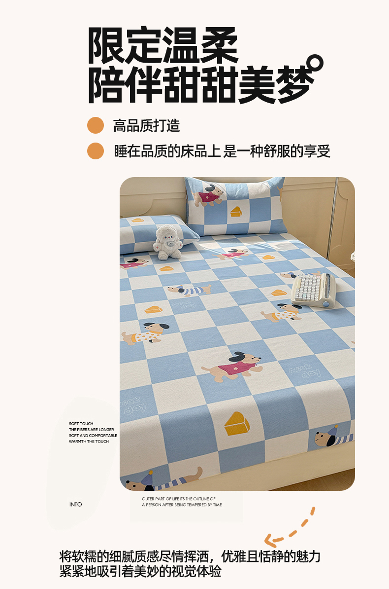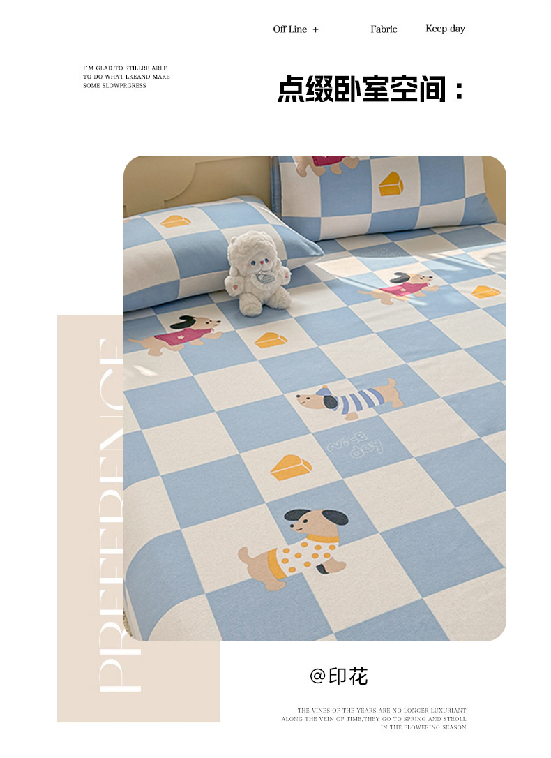 • 91家纺网 家纺一手货源 找家纺 爱彼家纺 2026新款舒适透气老粗布凉席印花床笠单件-床笠三件套 老粗布床笠-腊肠狗-蓝