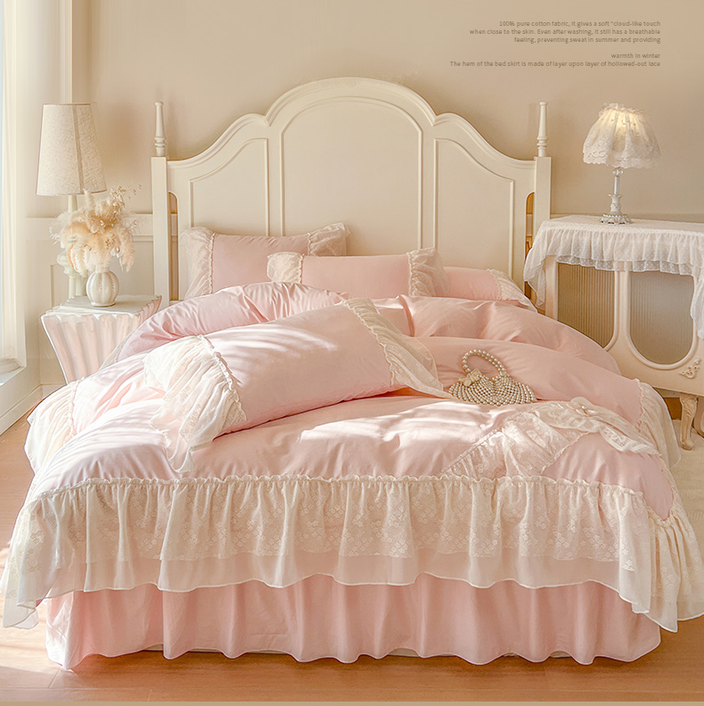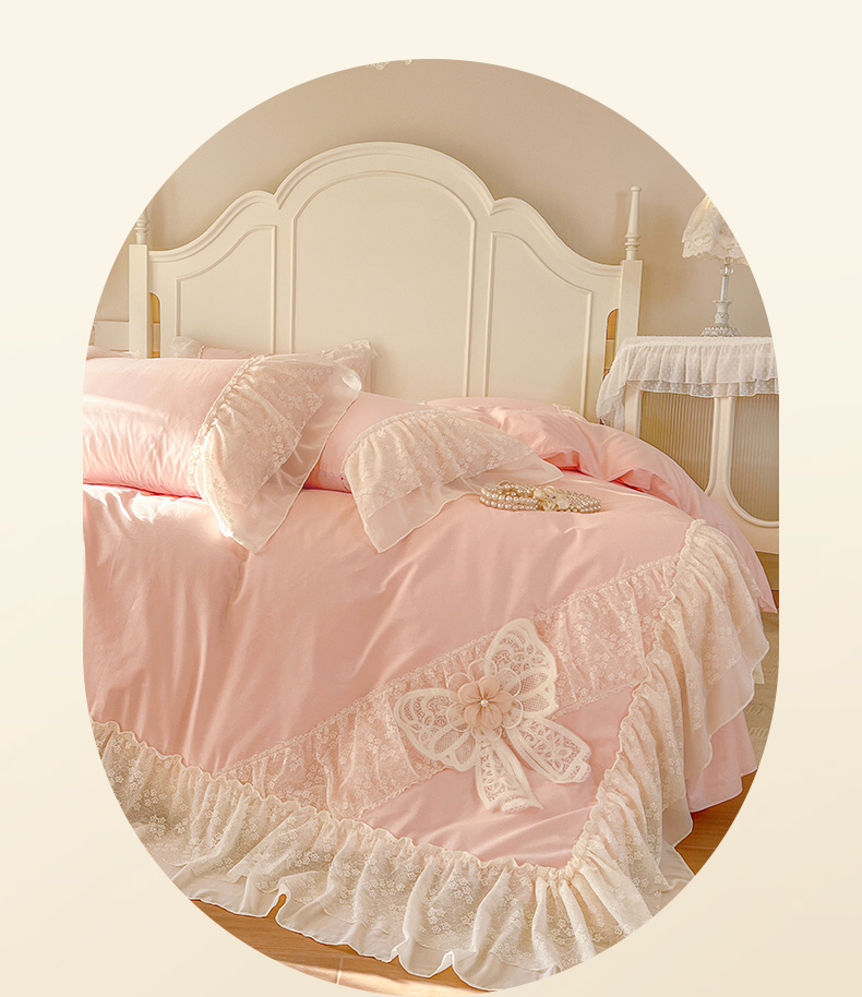 当前位置: 91家纺网 > 商品网购 > 床品套件 > 四件套 > 全棉普通四件套 > 亲亲公主 2026新款全棉蕾丝四件套-奶油泡芙(赠送蝴蝶结)券后不低于298 奶油泡芙-粉色