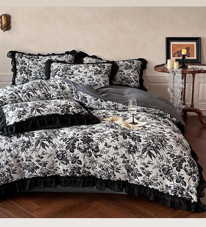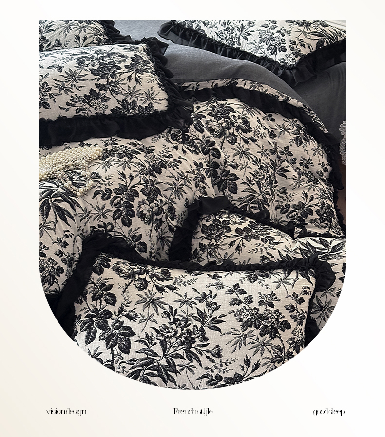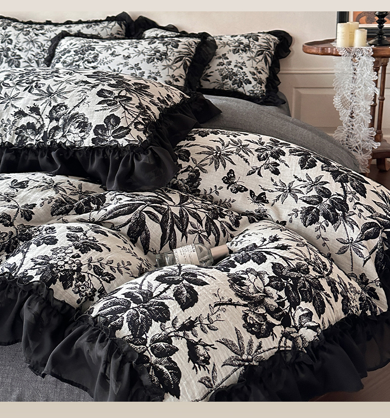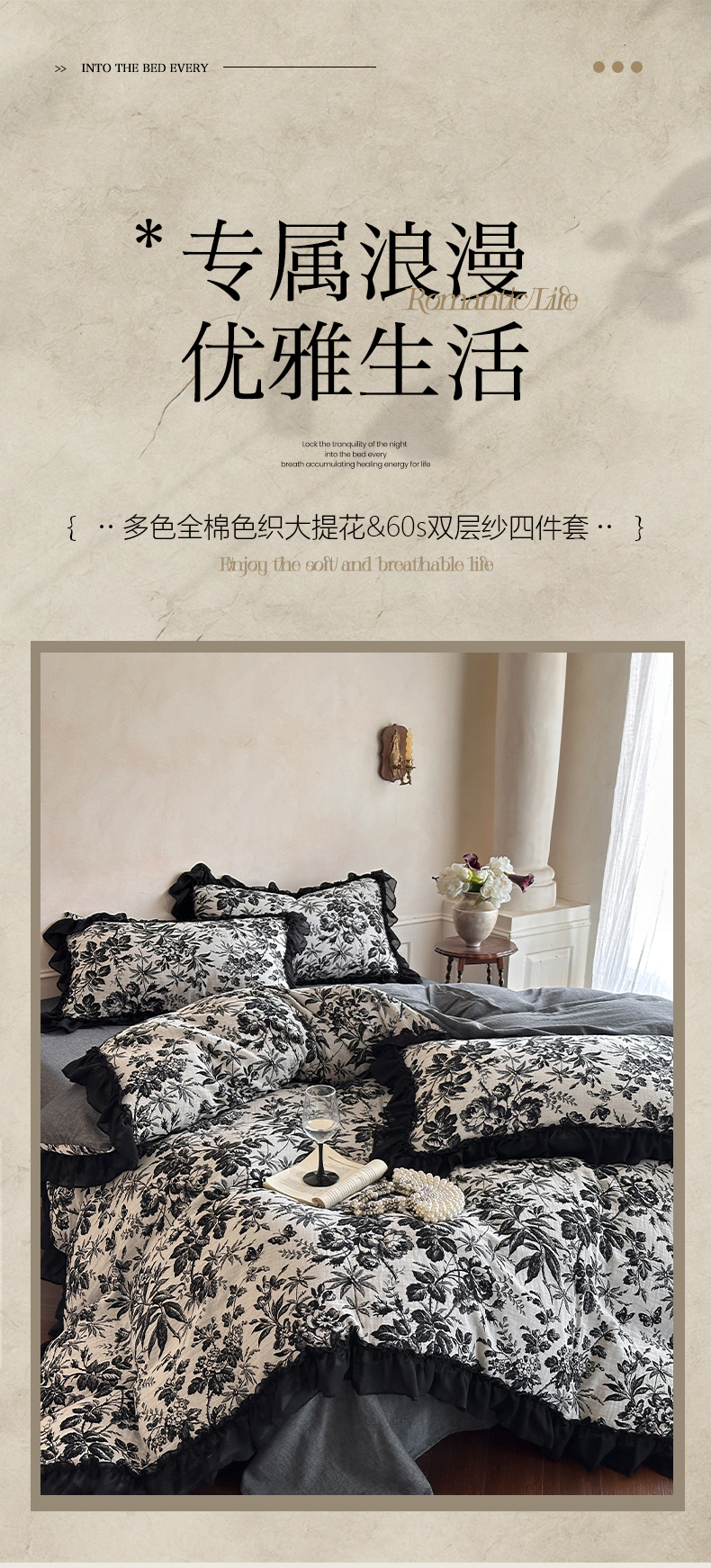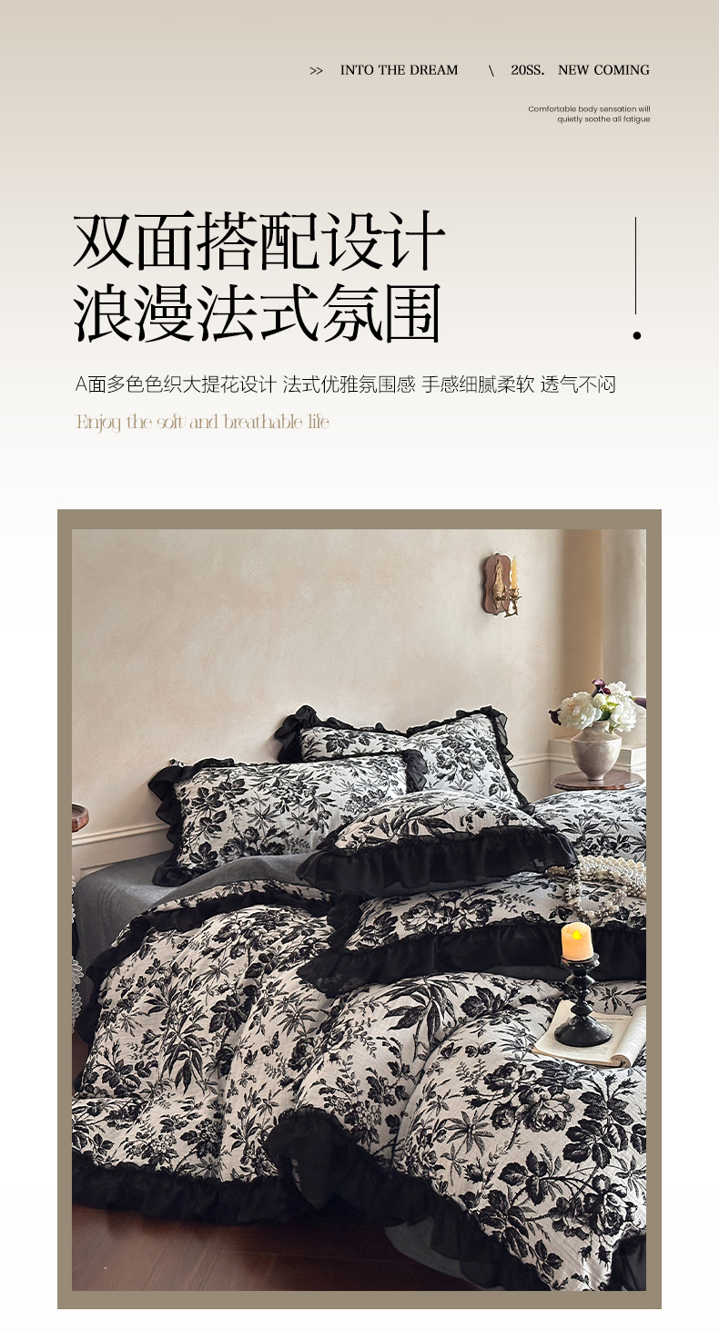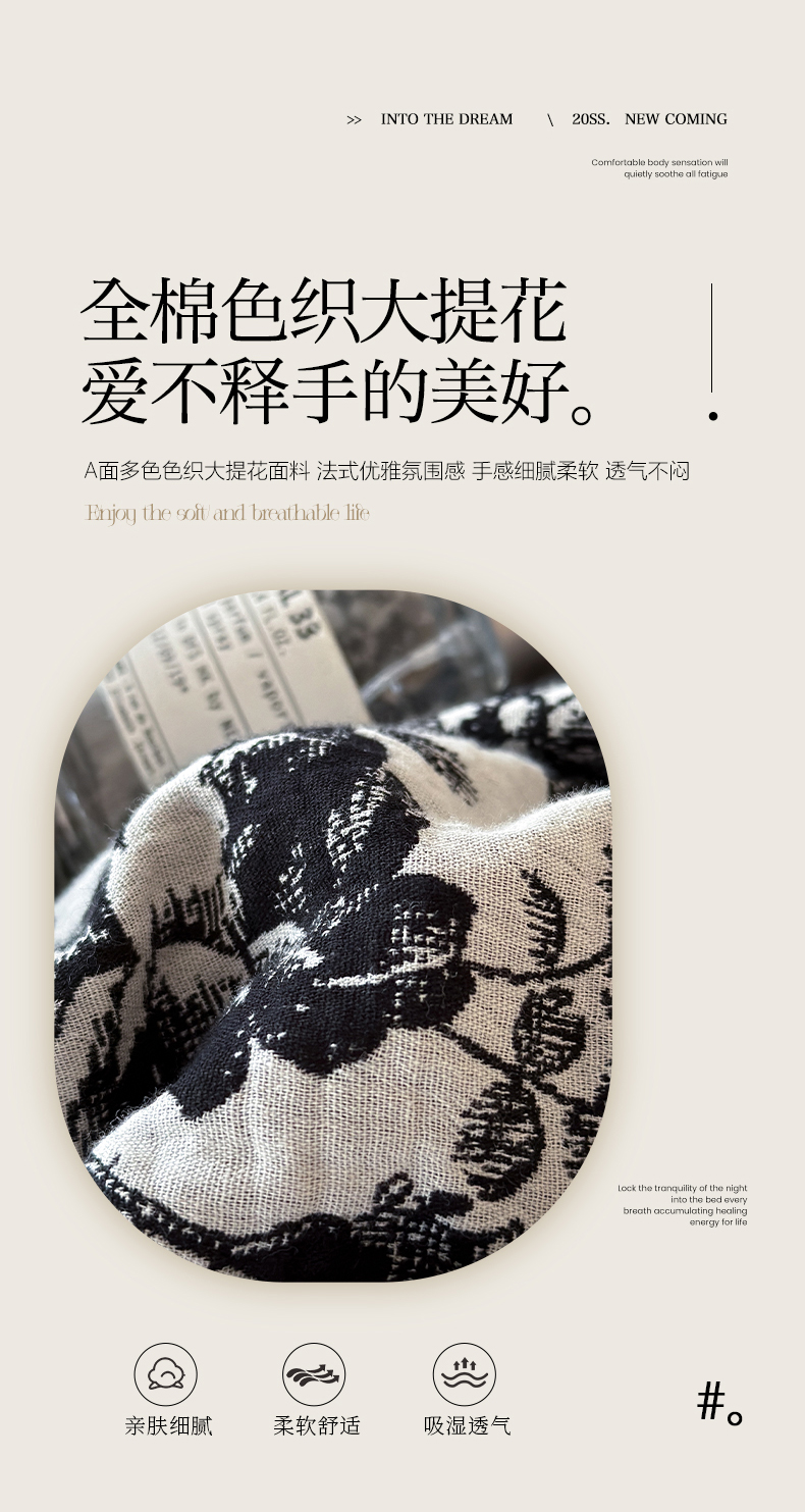 (总)莱茵家居 2026新款A类法式花边复古60支全棉纯棉色织大提花四件套-梦境系列,梦境-茶歇,梦境-油墨,梦境-鸢尾