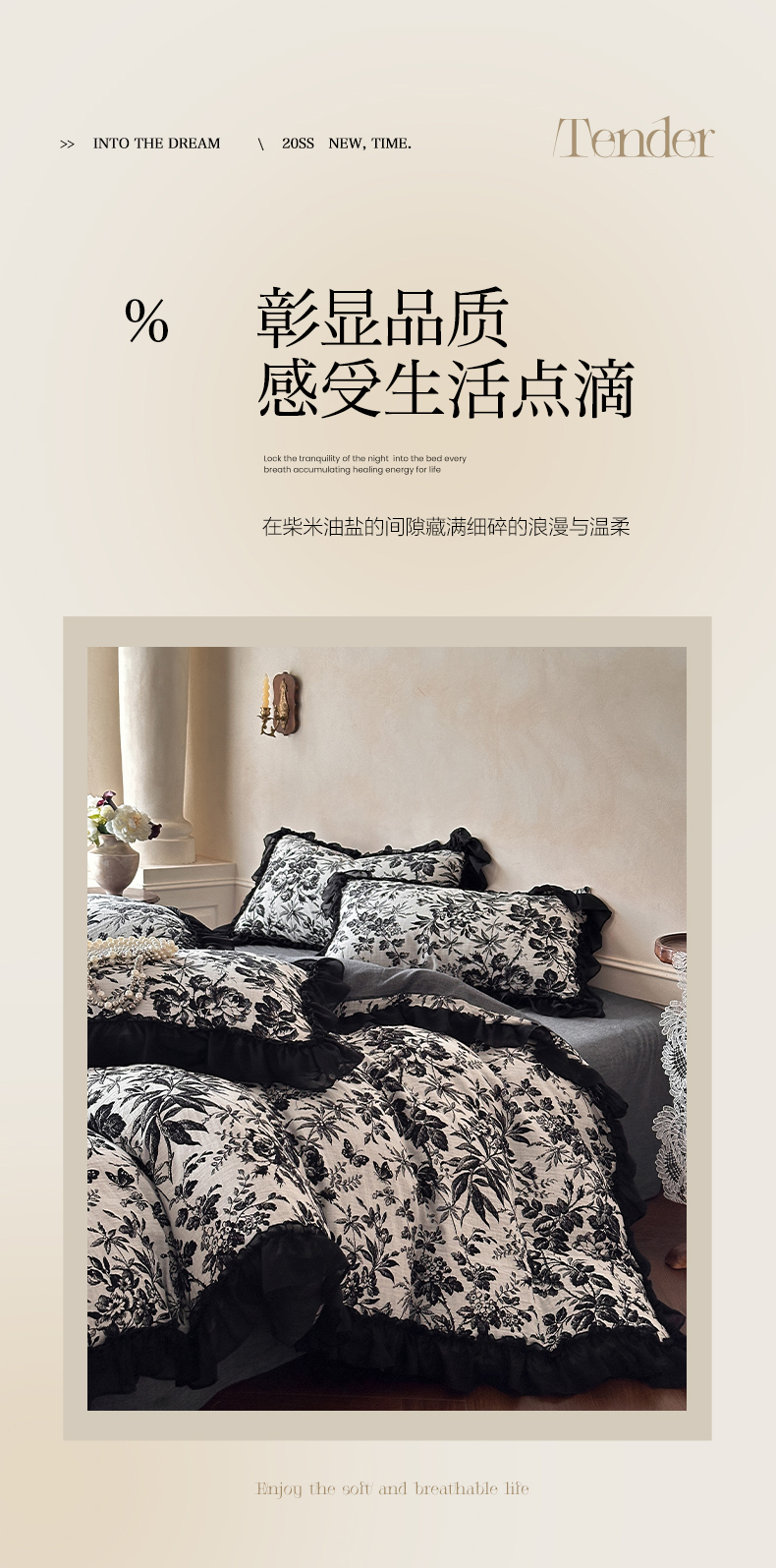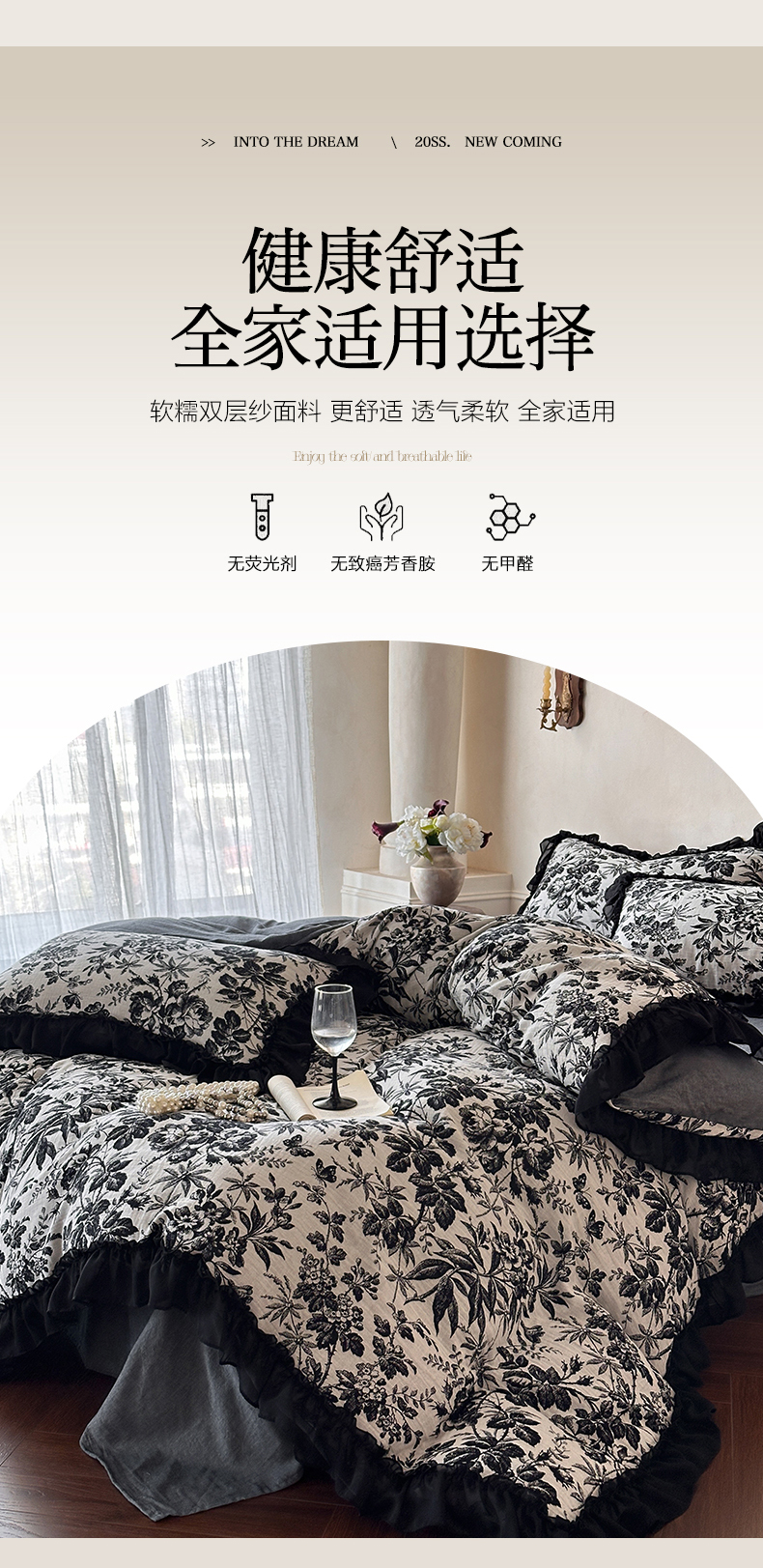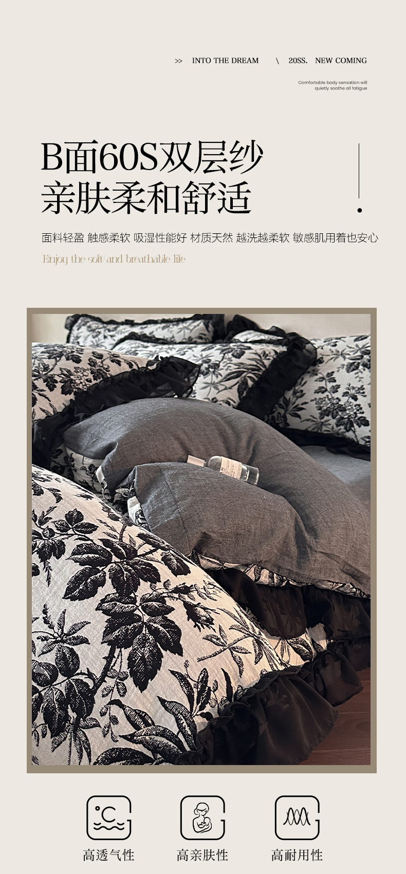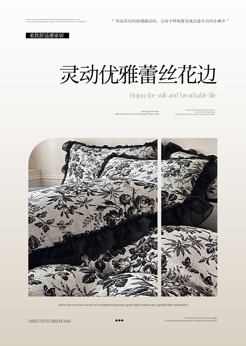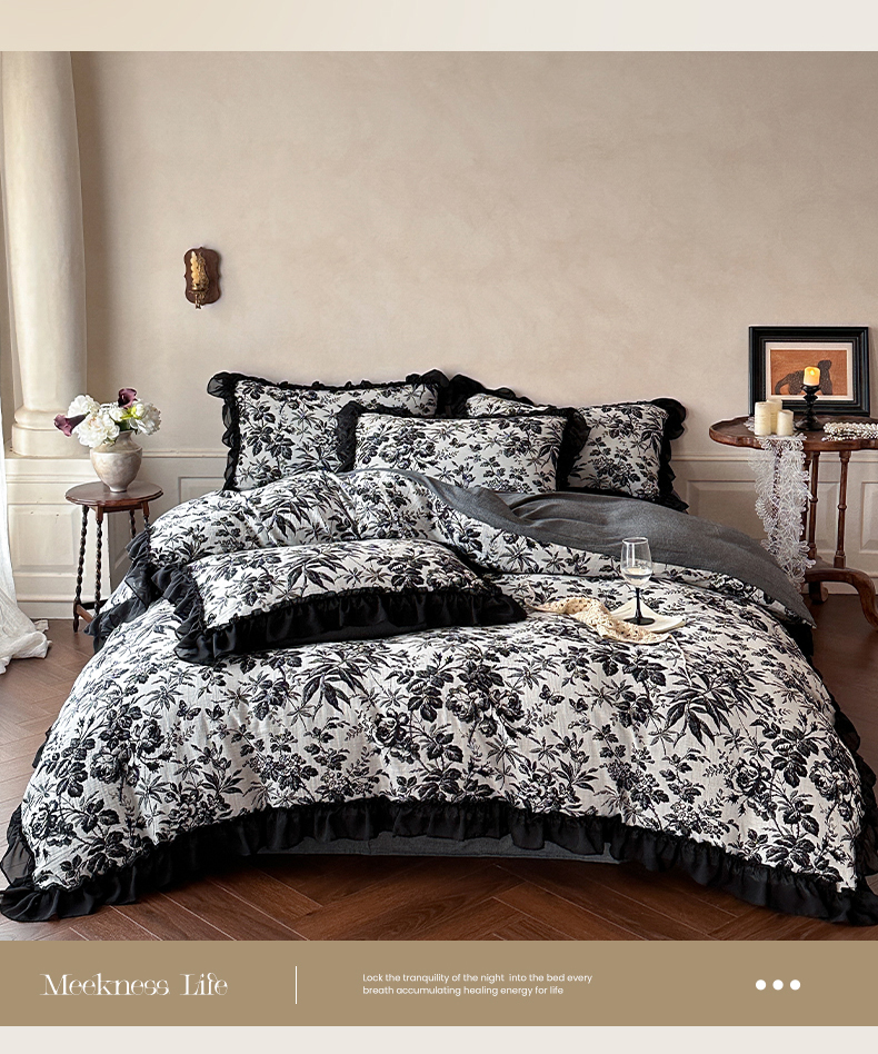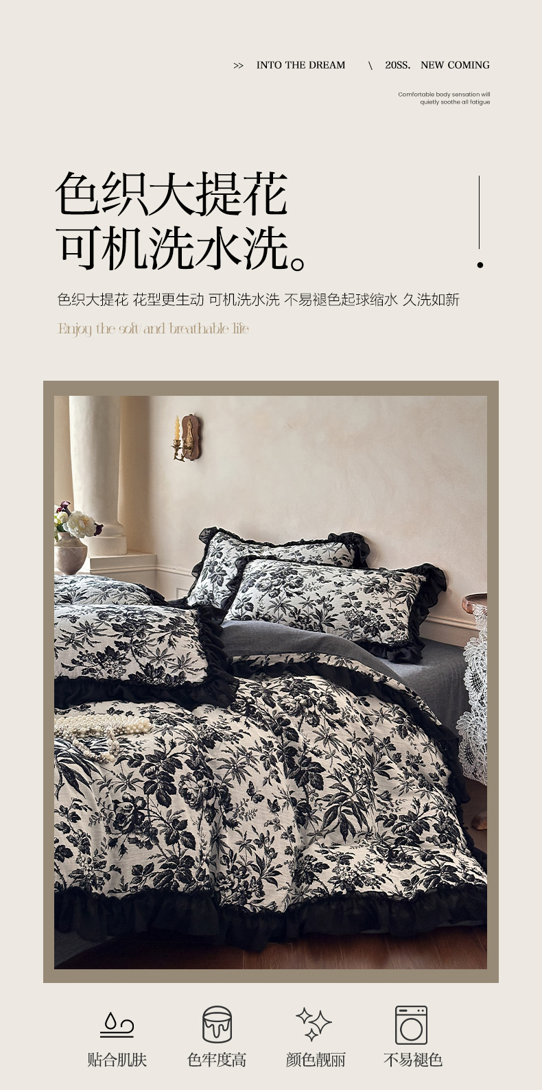 (总)莱茵家居 2026新款A类法式花边复古60支全棉纯棉色织大提花四件套-梦境系列,梦境-茶歇,梦境-油墨,梦境-鸢尾