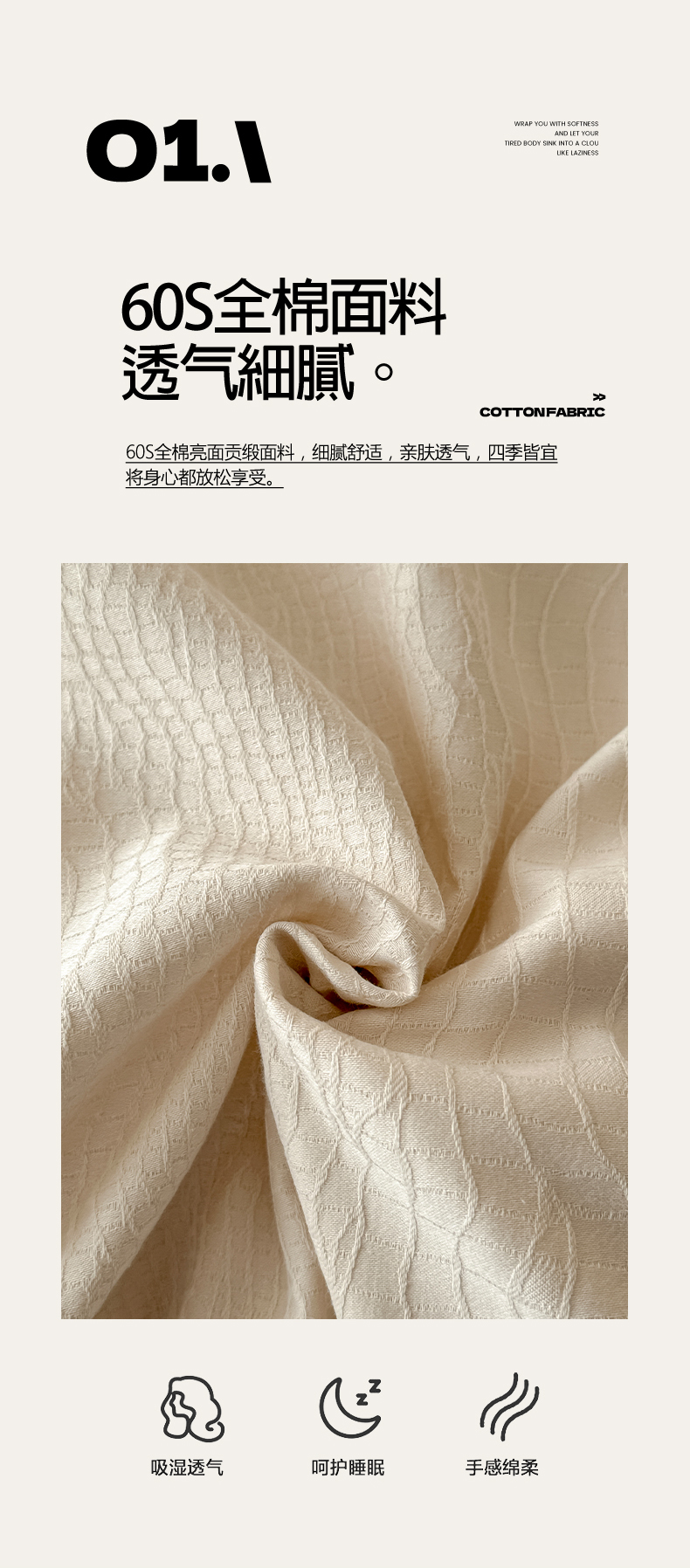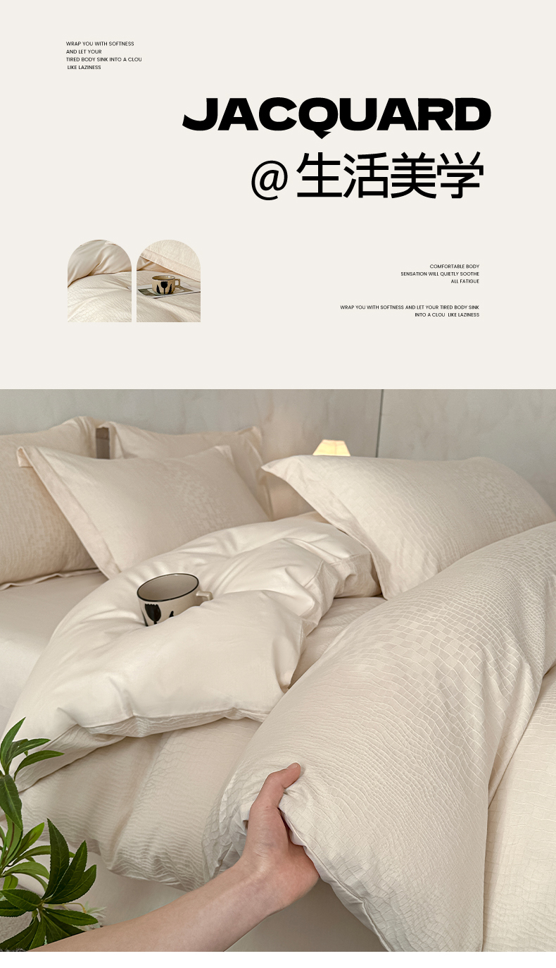 当前位置: 91家纺网 > 商品网购 > 床品套件 > 四件套 > 贡缎全棉四件套 > 莱茵家居 2026新款A类60支长绒棉纯棉提花贡缎大提花四件套光泽绸缎感轻奢风 素简-奶白