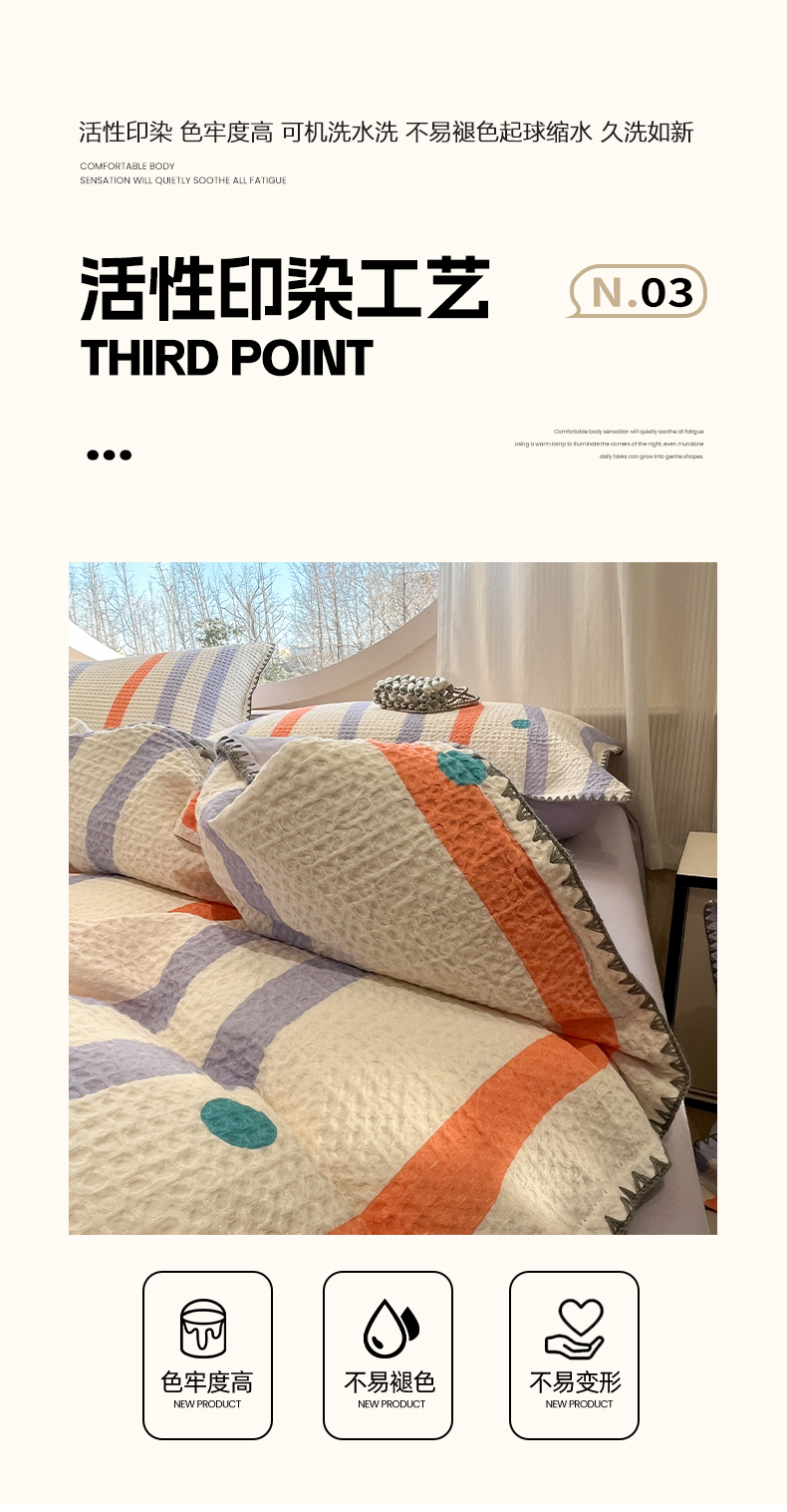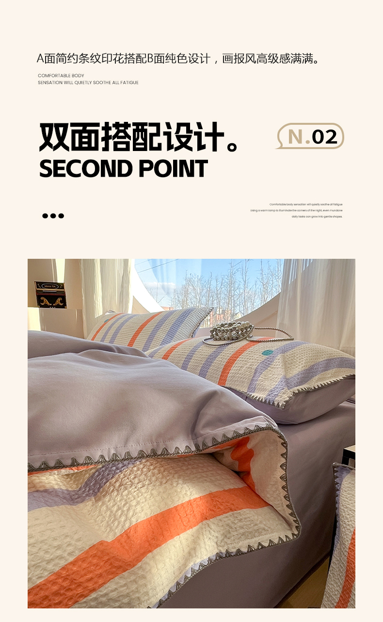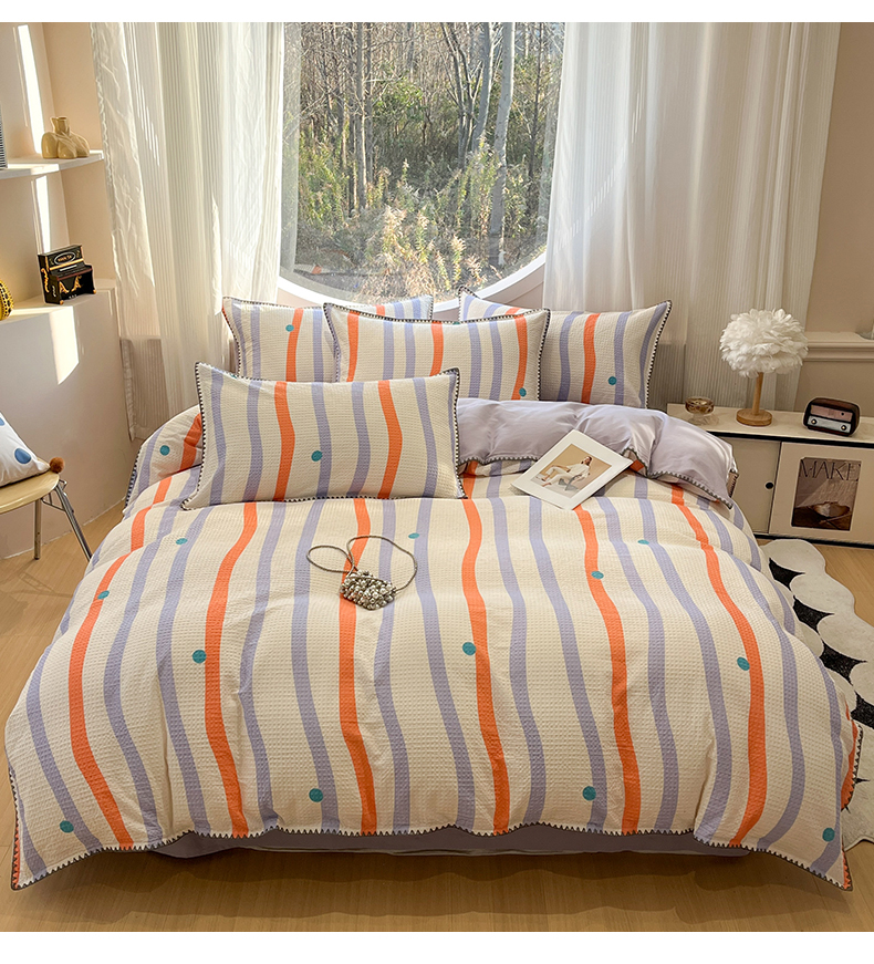当前位置: 91家纺网 > 商品网购 > 床品套件 > 四件套 > 全棉普通四件套 > 莱茵家居 2026新款A类全棉华夫格印花贝壳边套件-华夫系列 华夫-枫糖紫