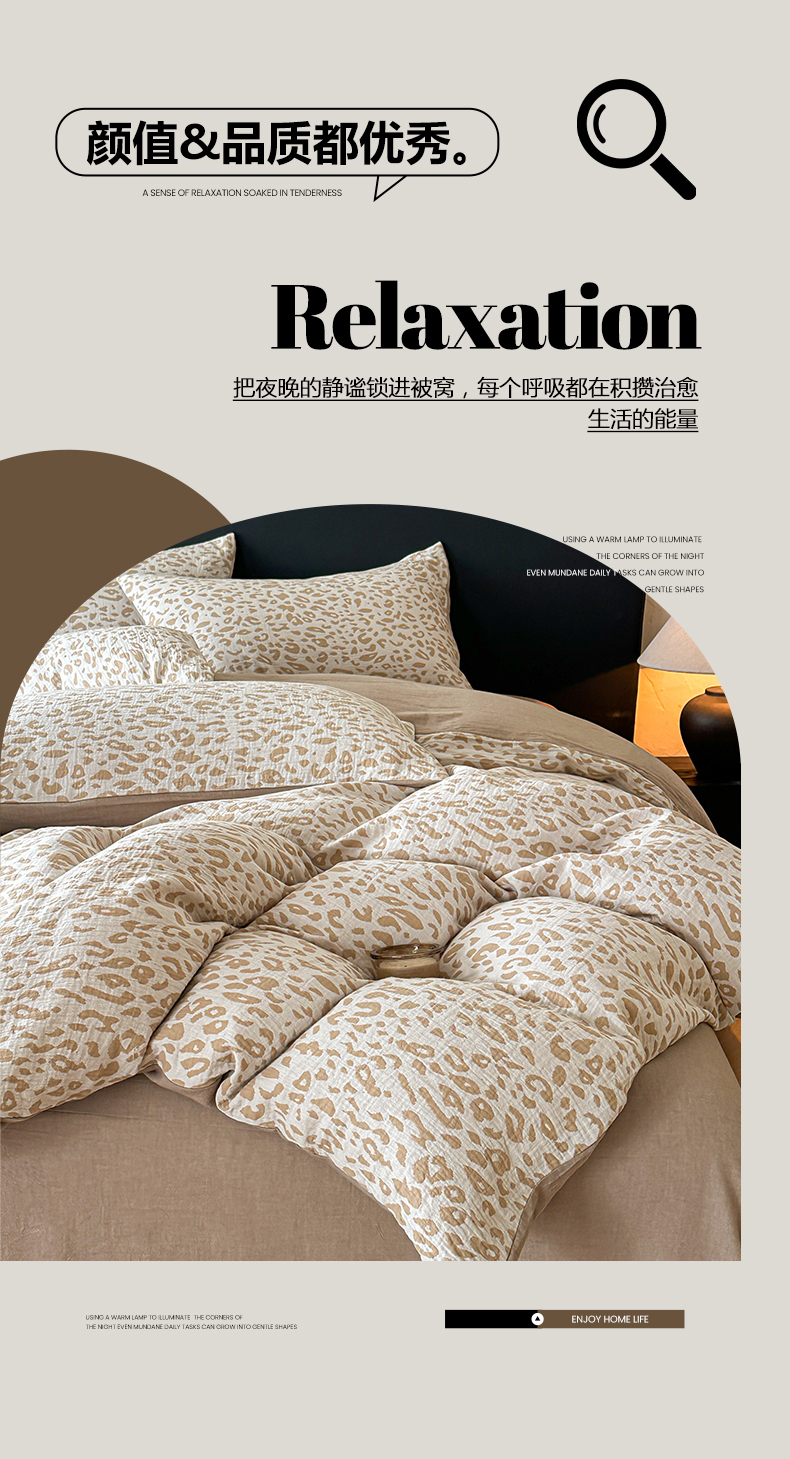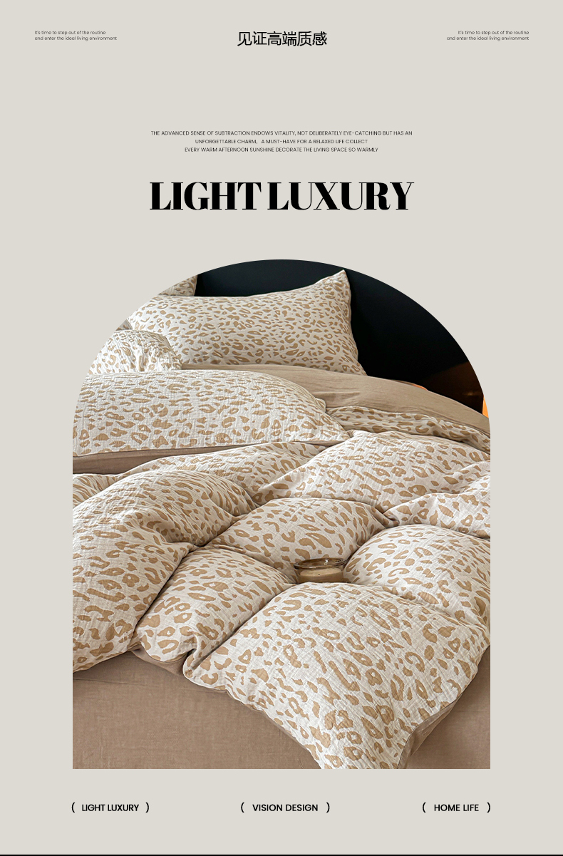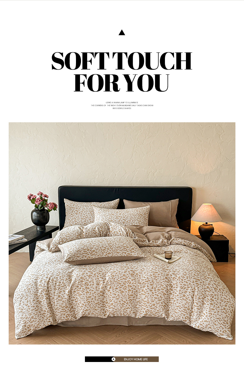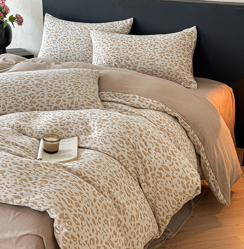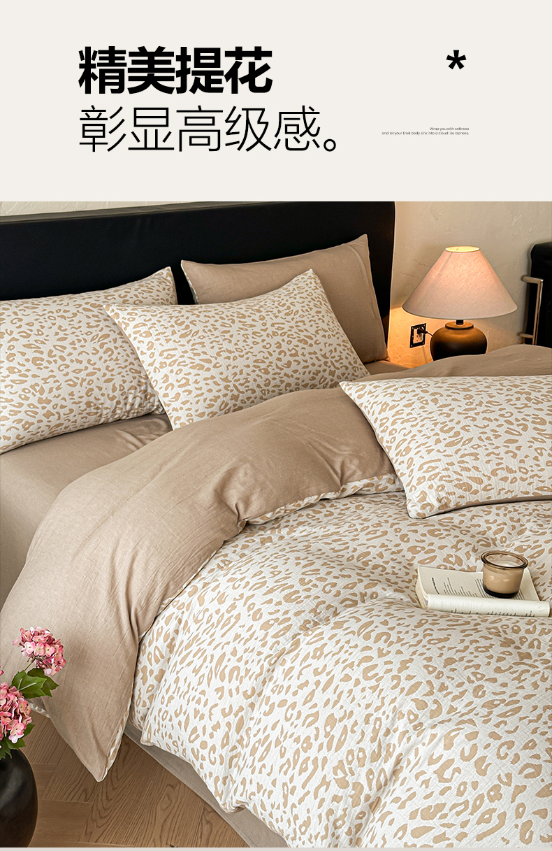 商品名称:莱茵家居 2026新款A类60支全棉纯棉复古侘寂风色织提花四件套-墨隙系列 豹纹-卡其