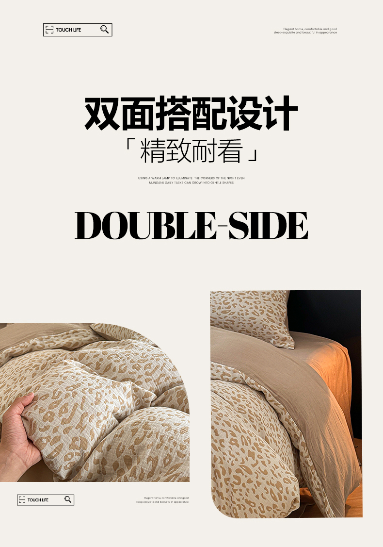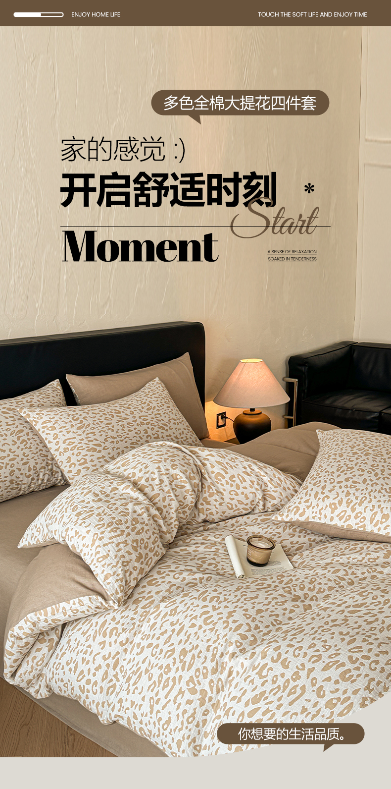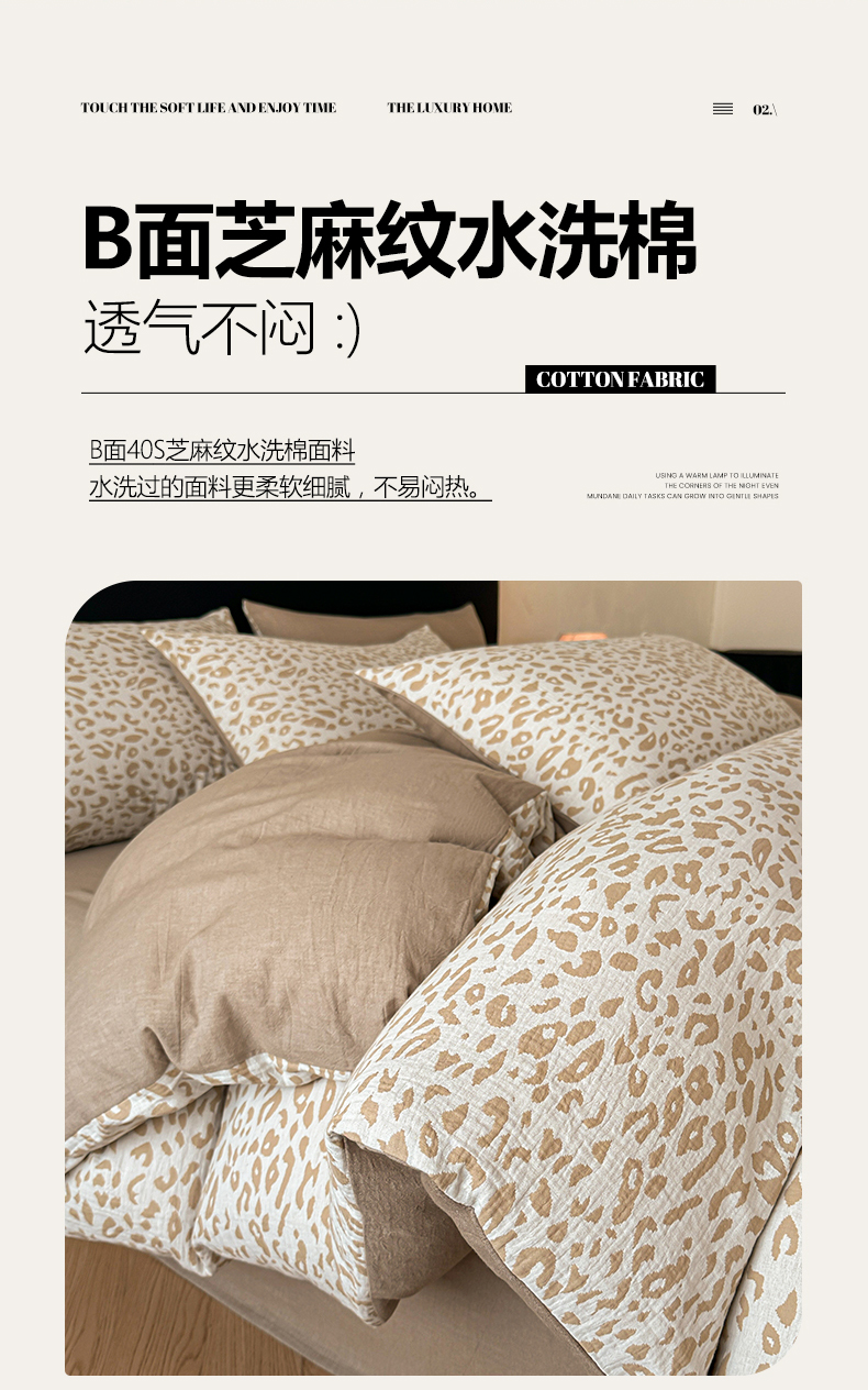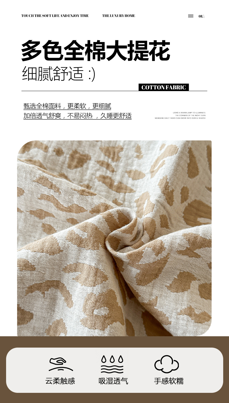 商品名称:莱茵家居 2026新款A类60支全棉纯棉复古侘寂风色织提花四件套-墨隙系列 豹纹-卡其