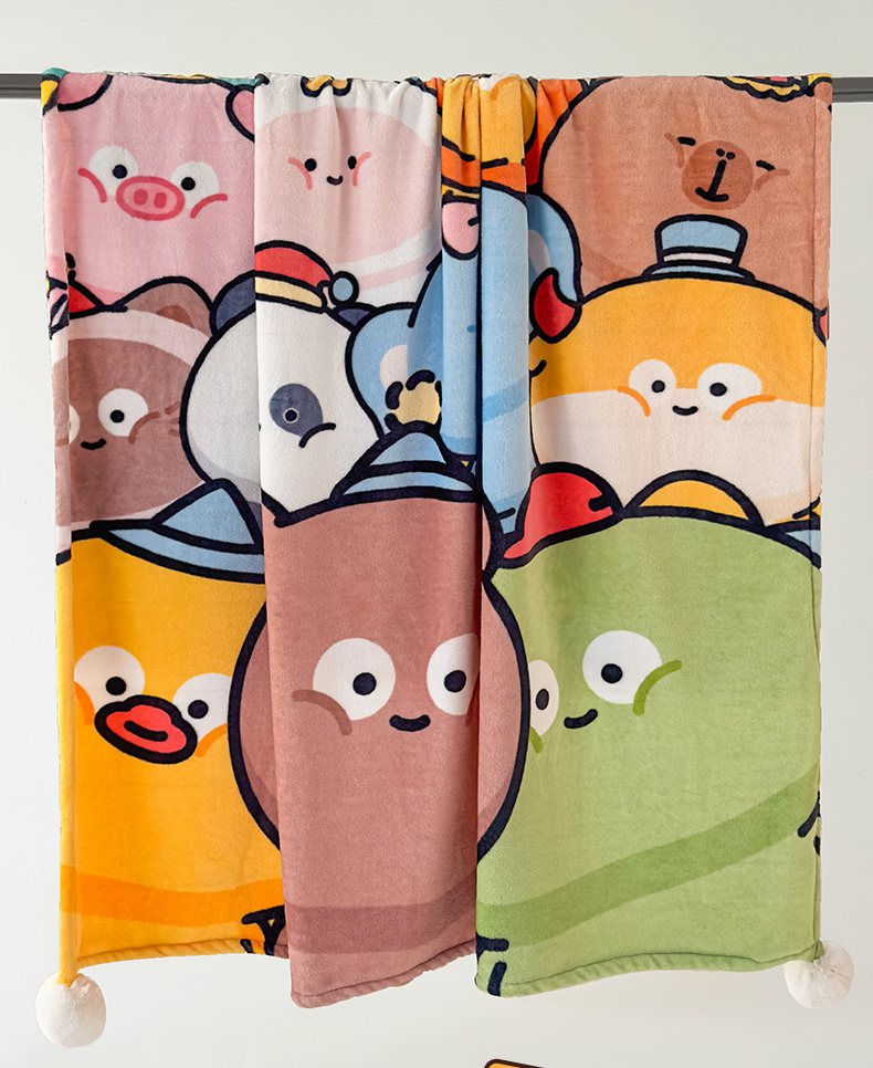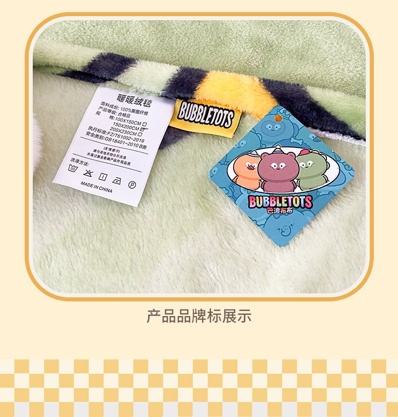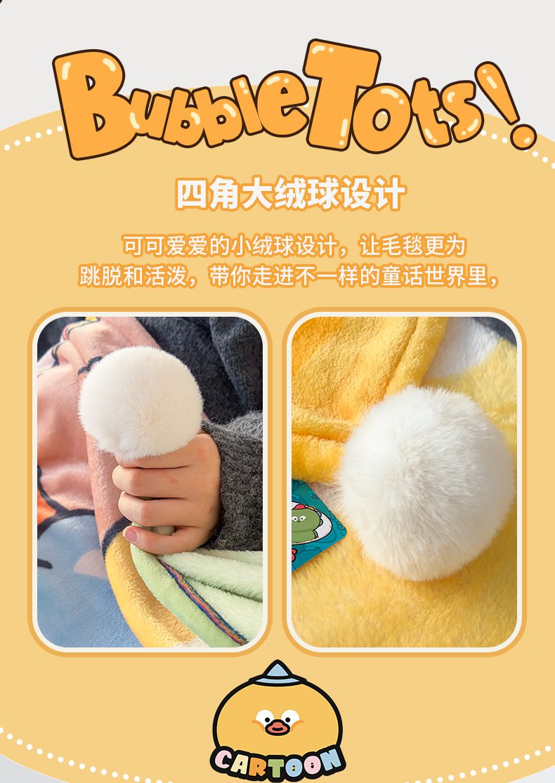 (总)潮邦创意家居 2026新款星眠绒单层双面球毯-BubbleTots巴波布布独家授权-第一批 控价:100*150cm不得低于69元 150*200cm不得低于89元,巴波萌团,巴波桃桃,巴波众萌,巴啵茨茨