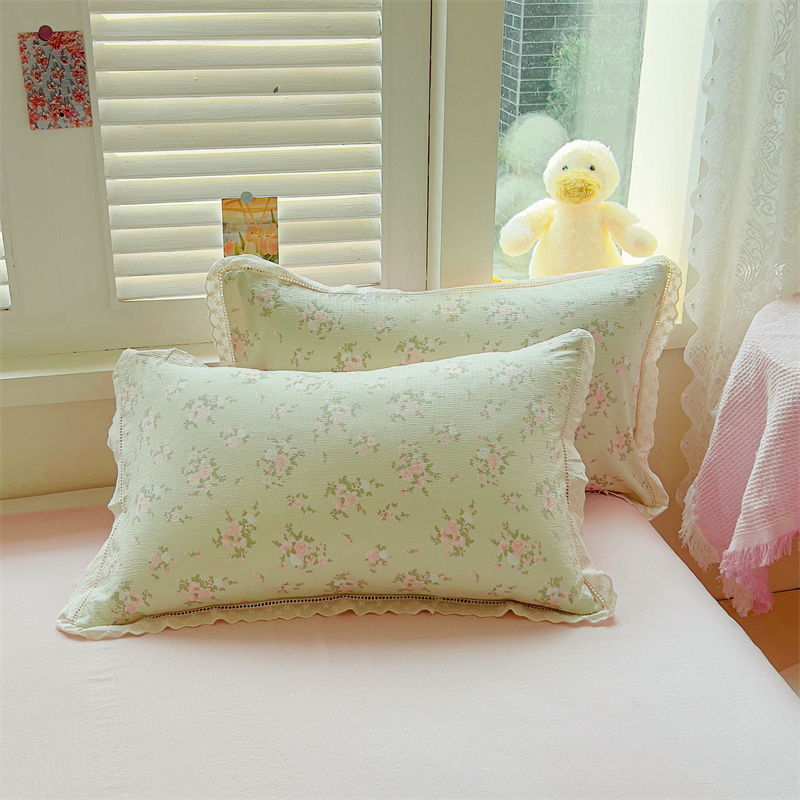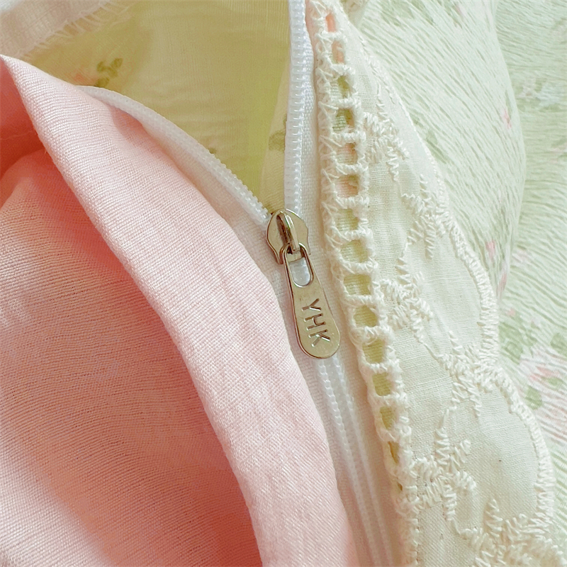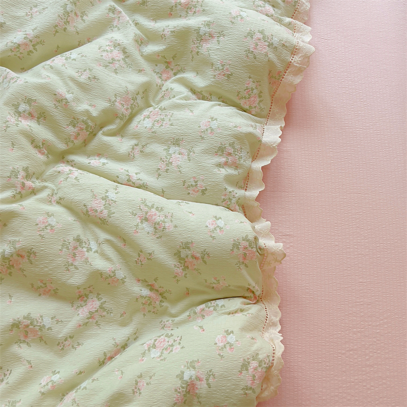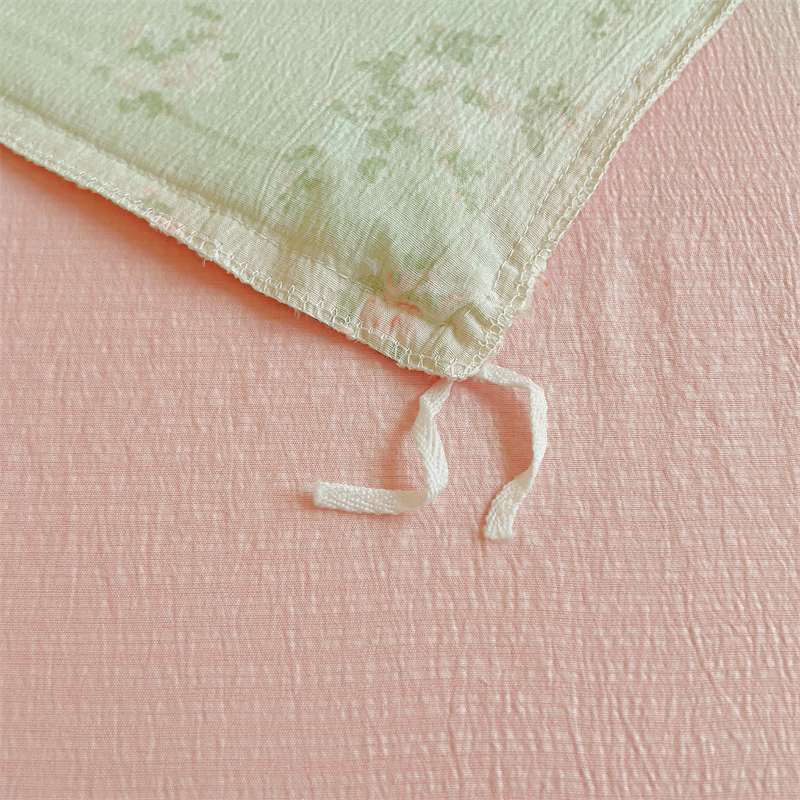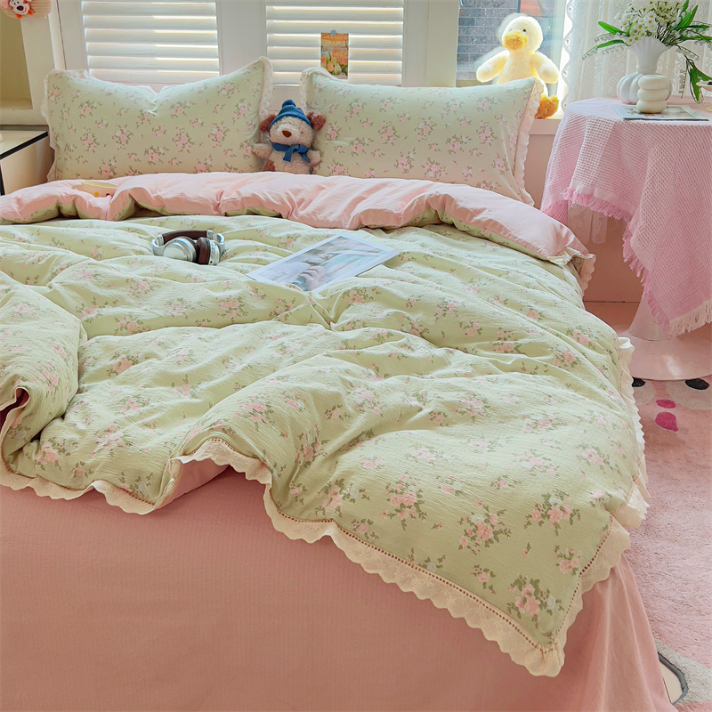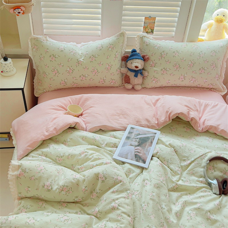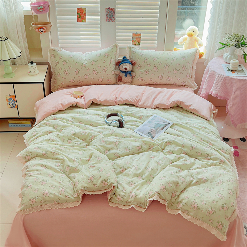 商品名称:壹号库家纺 2026新款云感木棉皱皱纱双层纱四件套-全棉花边款 甜茶
