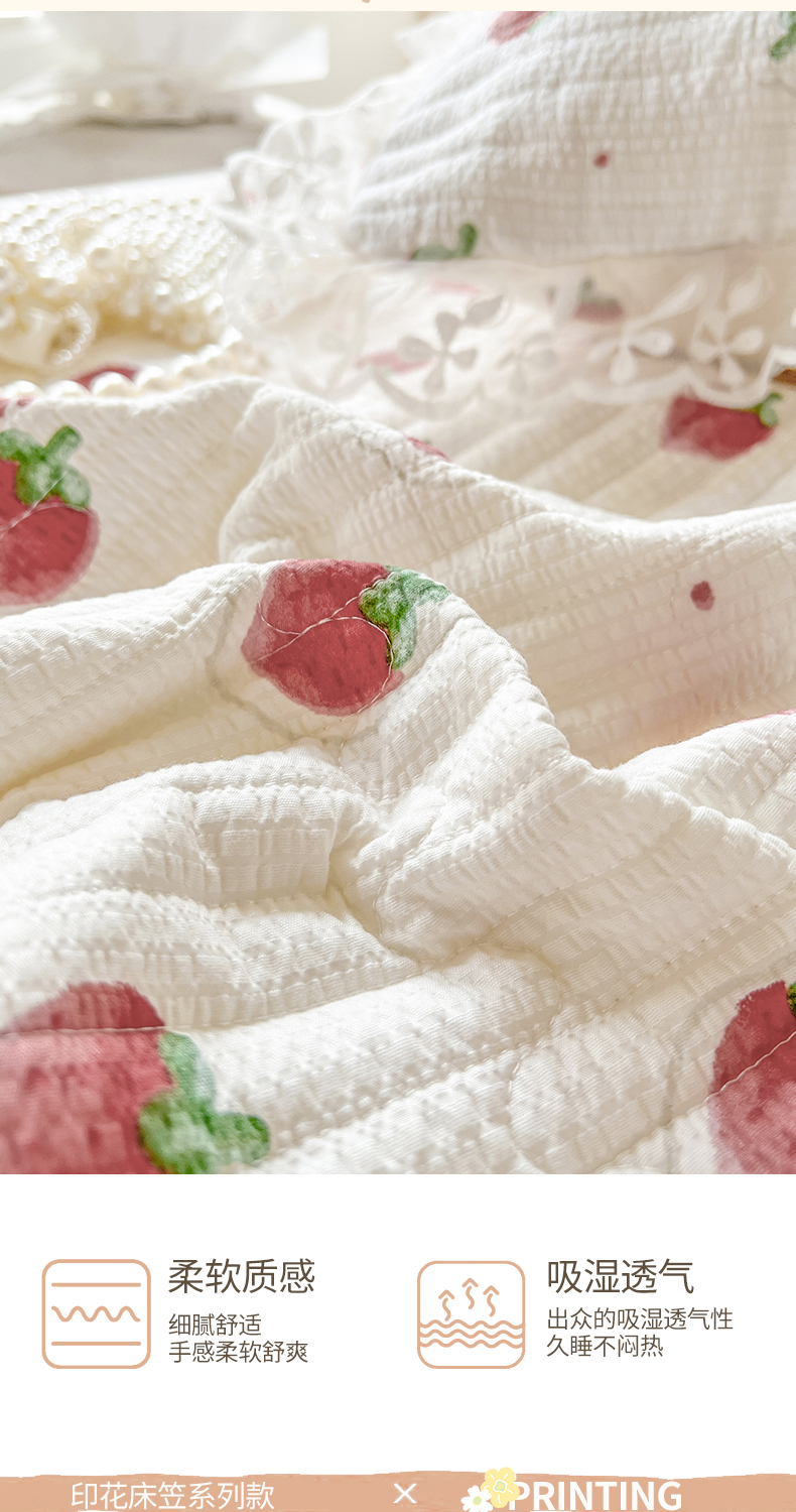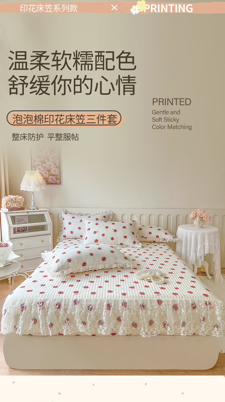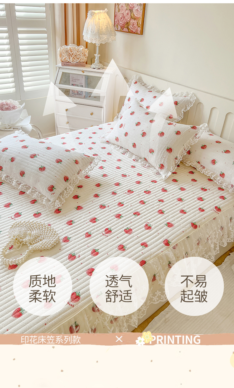 网红馆(ck家纺) 2026新款泡泡棉印花床笠三件套 甜心草莓