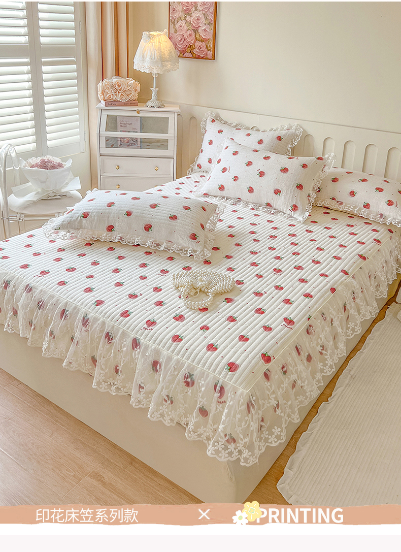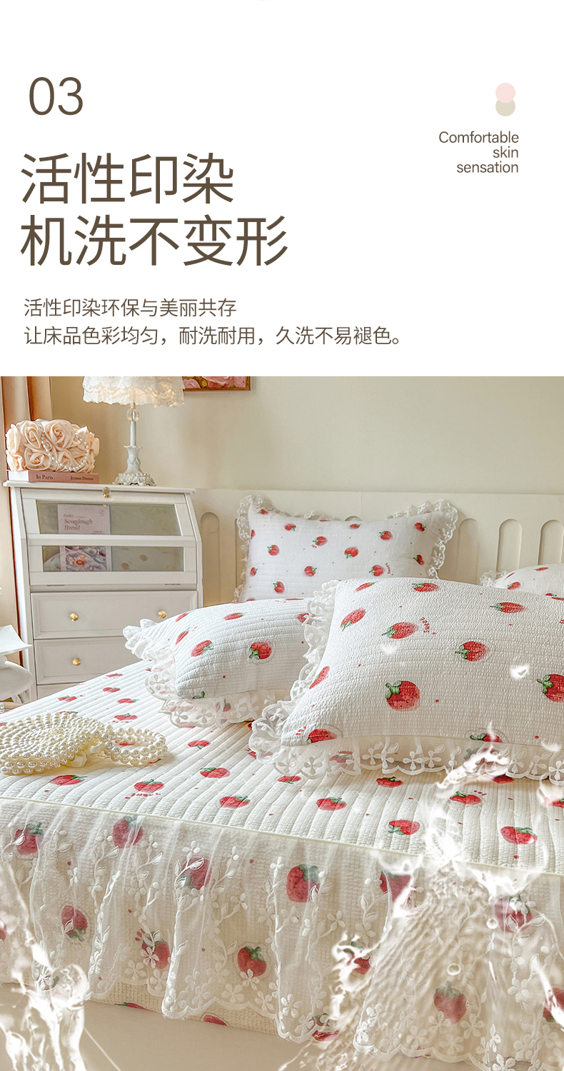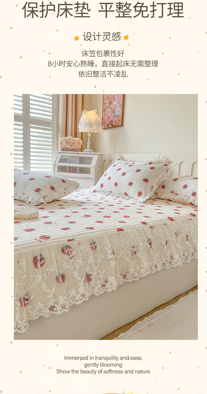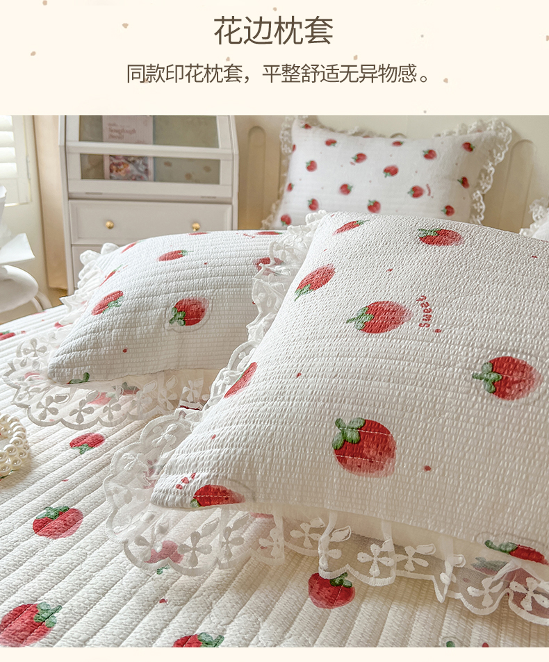 网红馆(ck家纺) 2026新款泡泡棉印花床笠三件套 甜心草莓