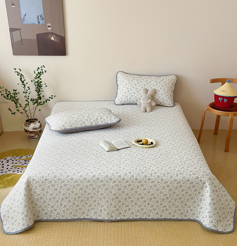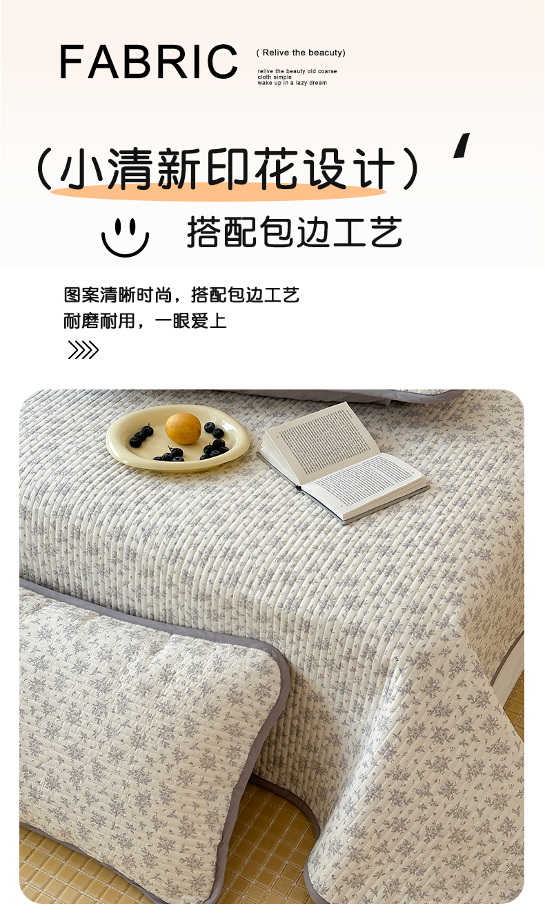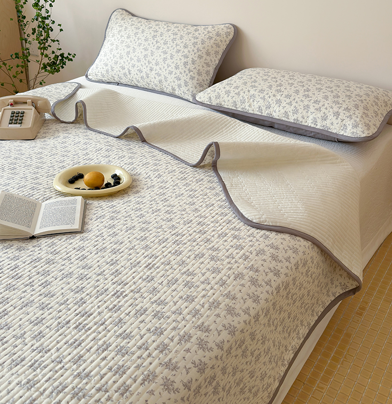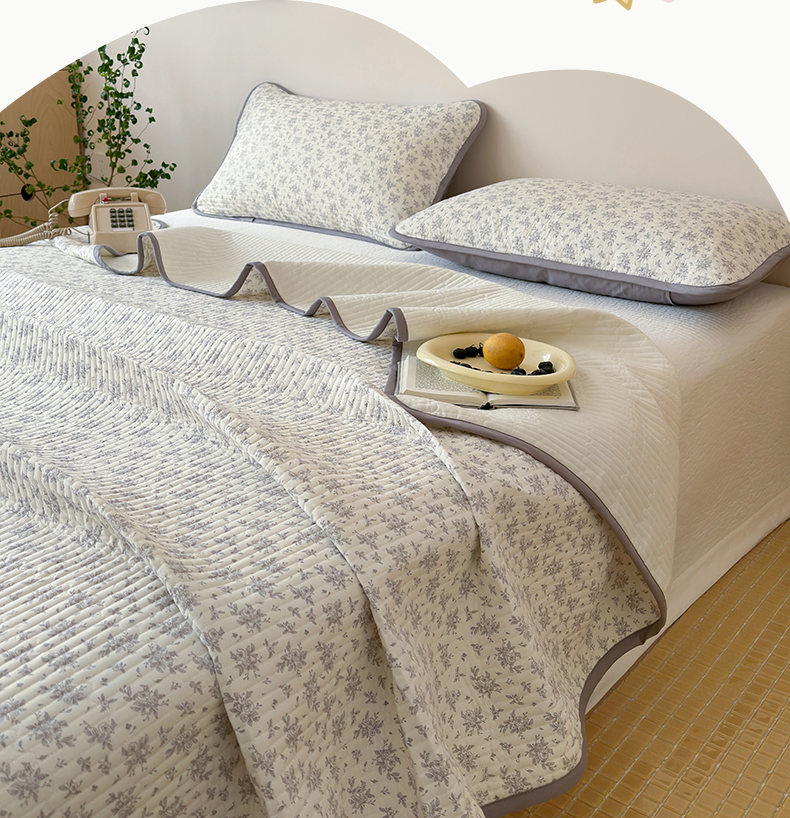 • 91家纺网 家纺一手货源 找家纺 漫时光 2026新款纯棉小清新棉花夹层床盖 灰絮花影