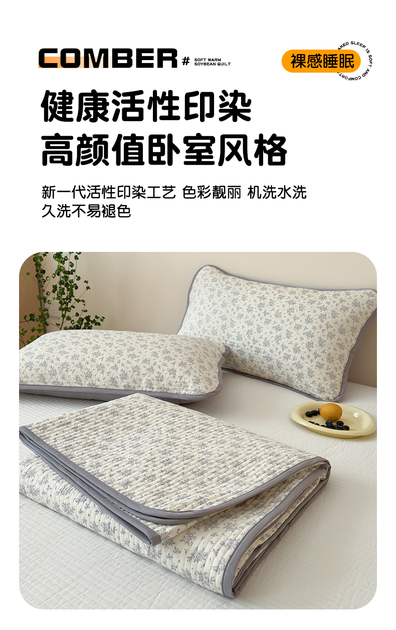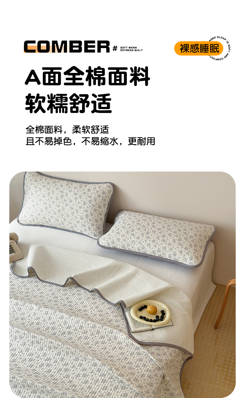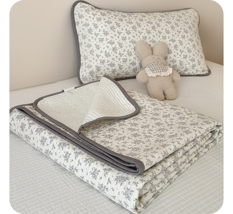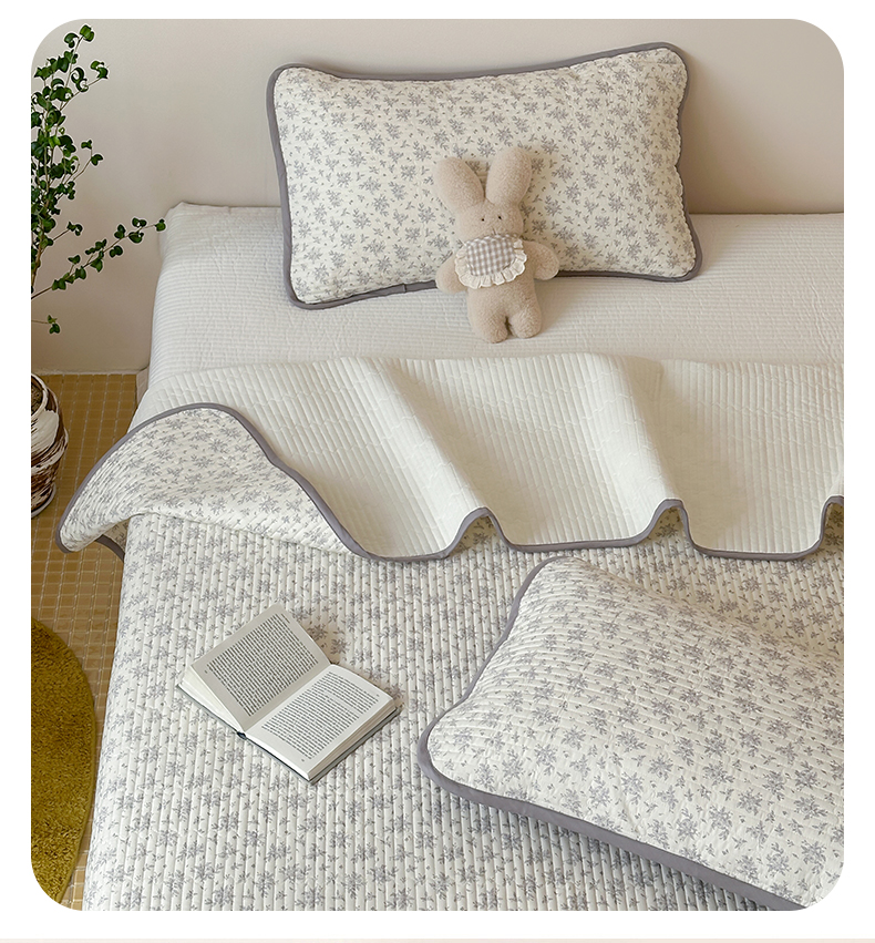 • 91家纺网 家纺一手货源 找家纺 漫时光 2026新款纯棉小清新棉花夹层床盖 灰絮花影
