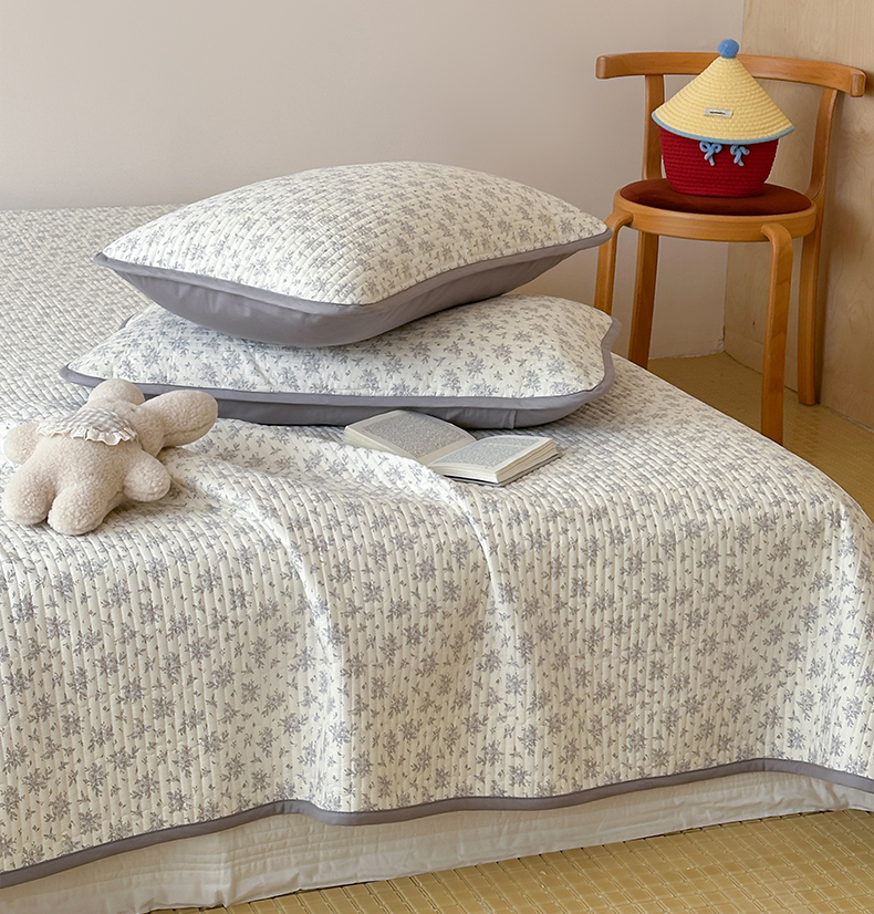漫时光 2026新款纯棉小清新棉花夹层床盖 灰絮花影