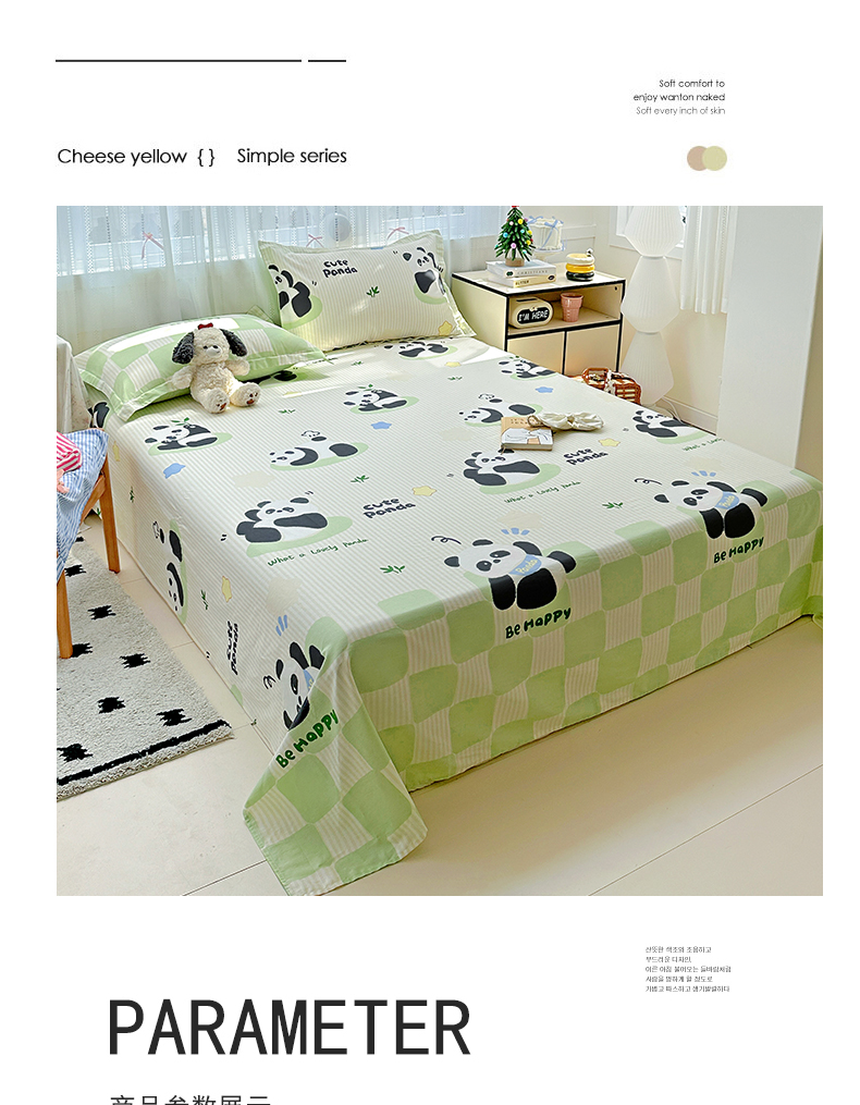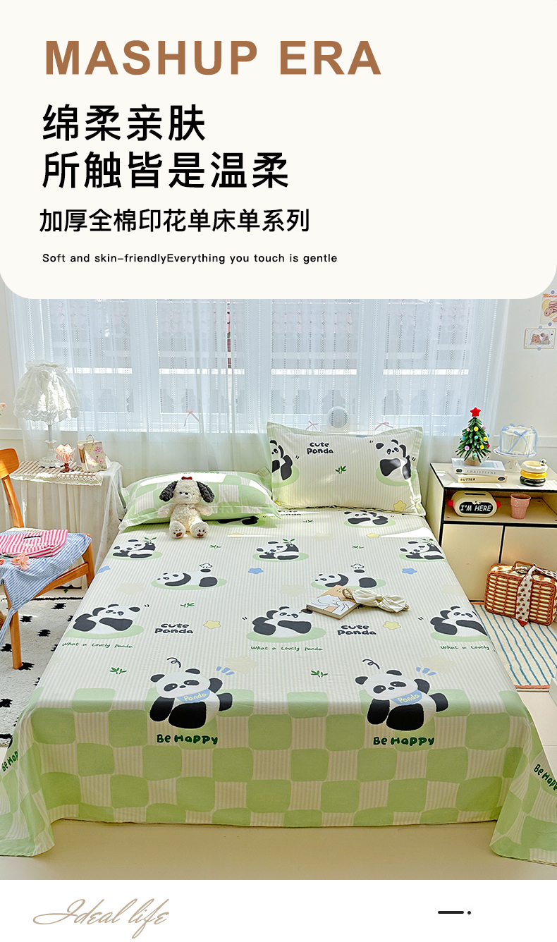 恩泽家纺 2026春夏新款全棉纯棉12868印花四件套及单品系列-单床单床单单件 小熊猫