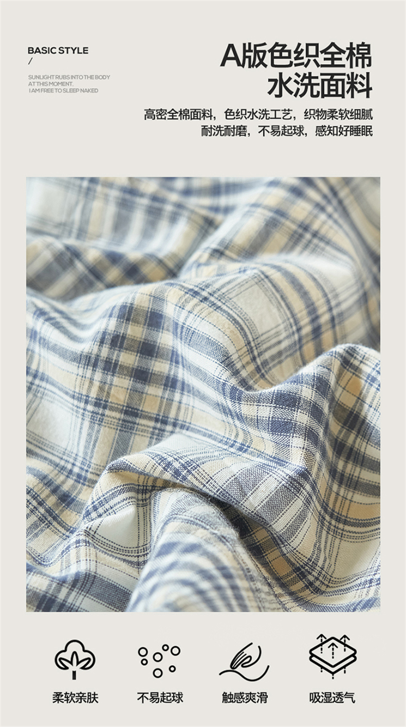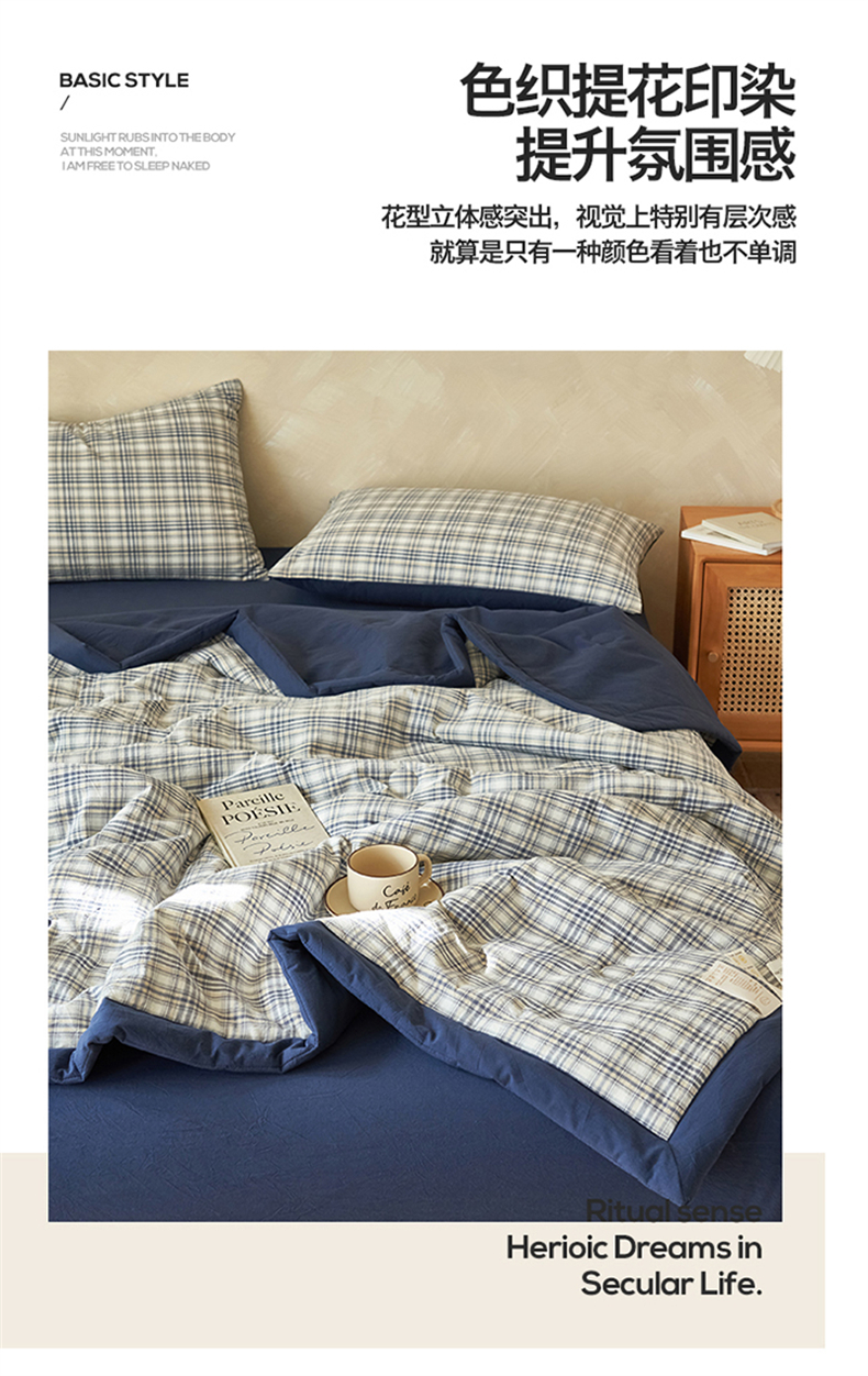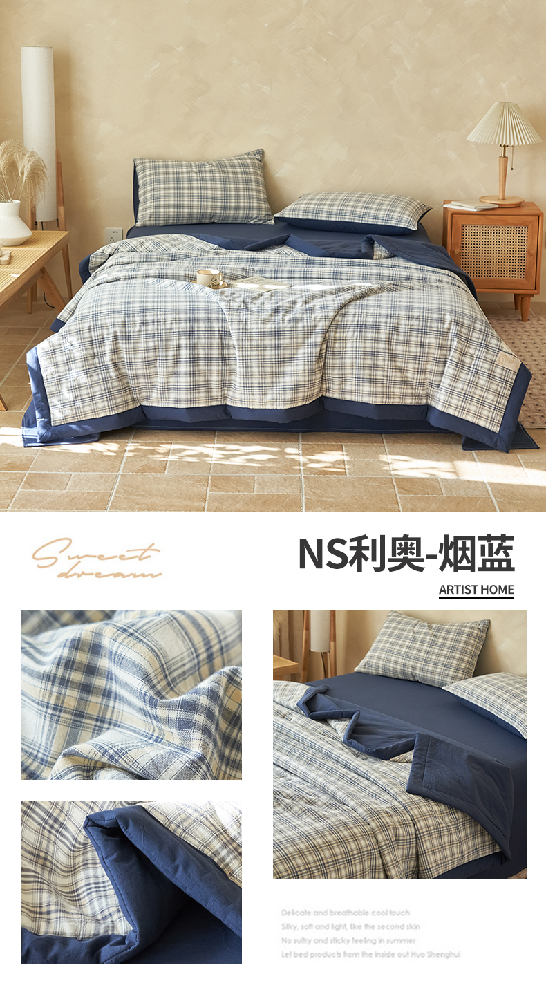 当前位置: 91家纺网 > 商品网购 > 床品套件 > 四件套 > 夏被四件套 > 恒爱家纺 2026新款A类色织全棉水洗夏被四件套 NS利奥-烟蓝