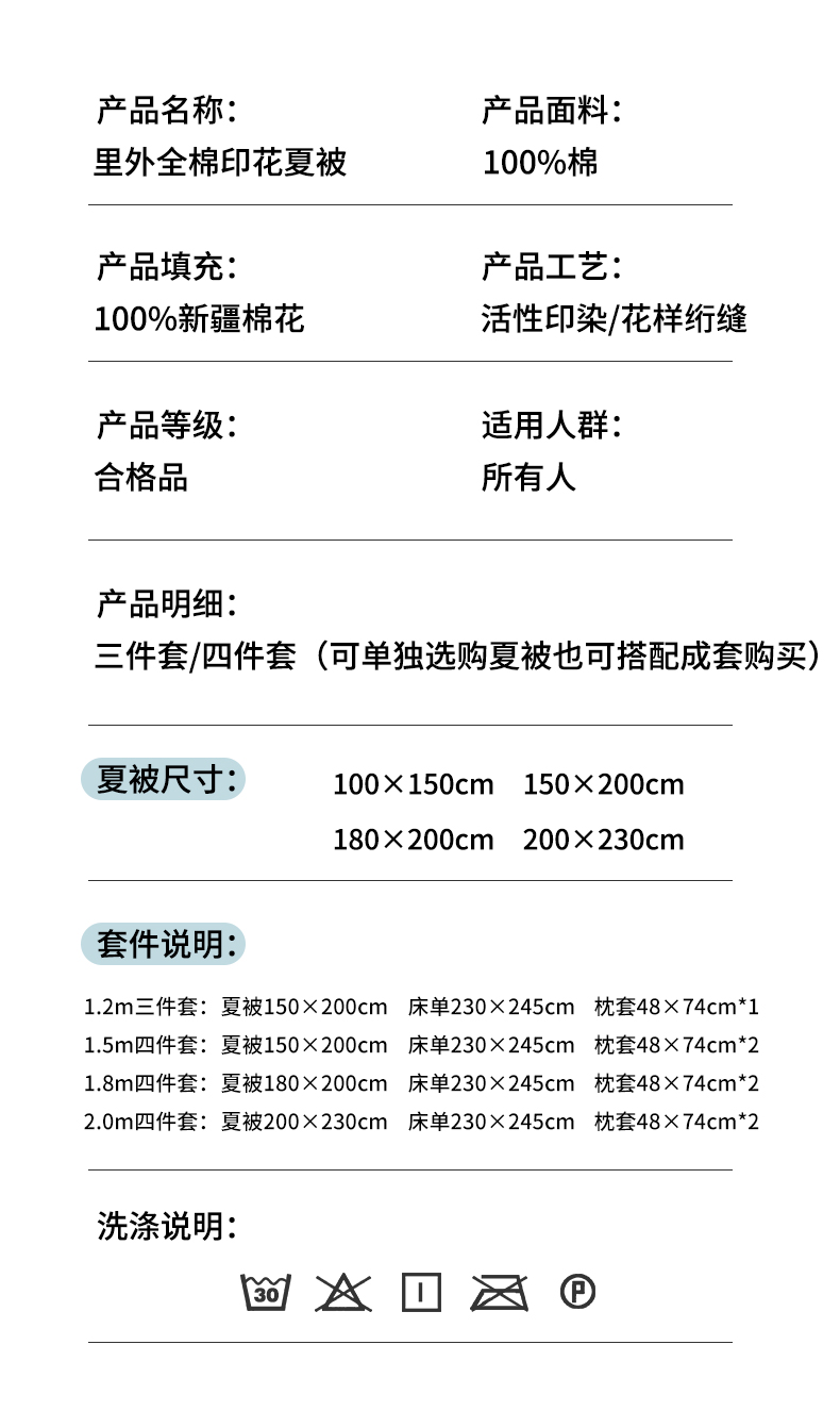 150x200cm单夏被+床单+枕套一对