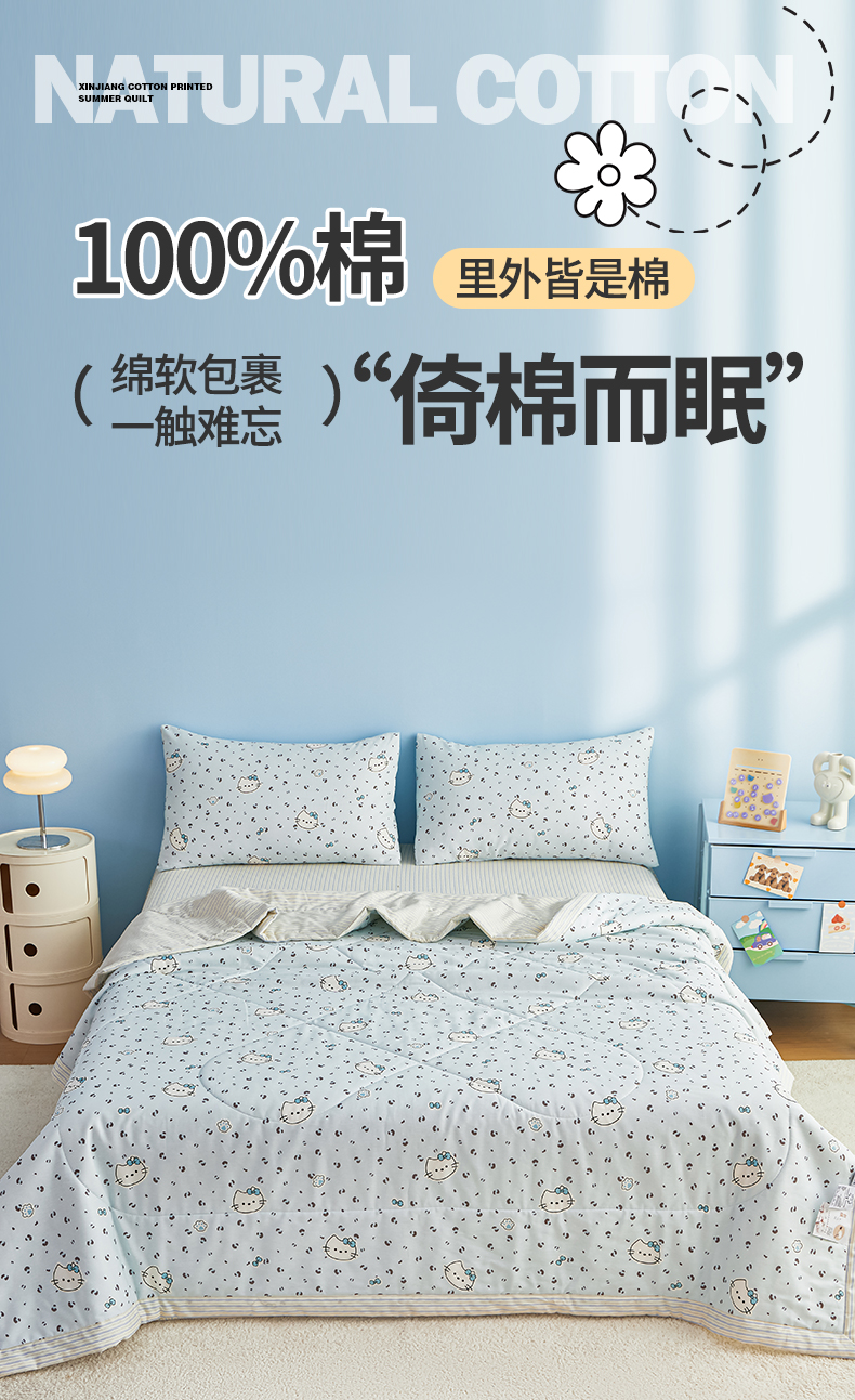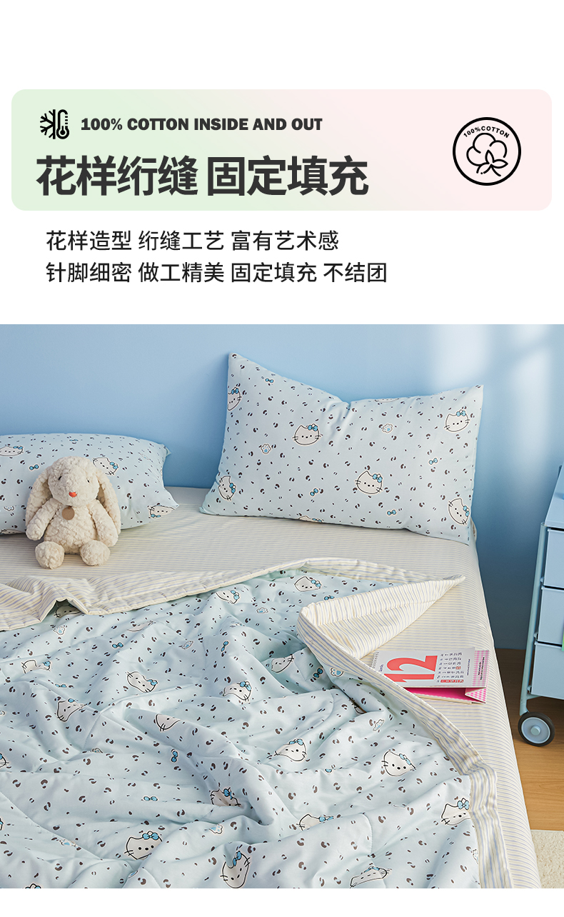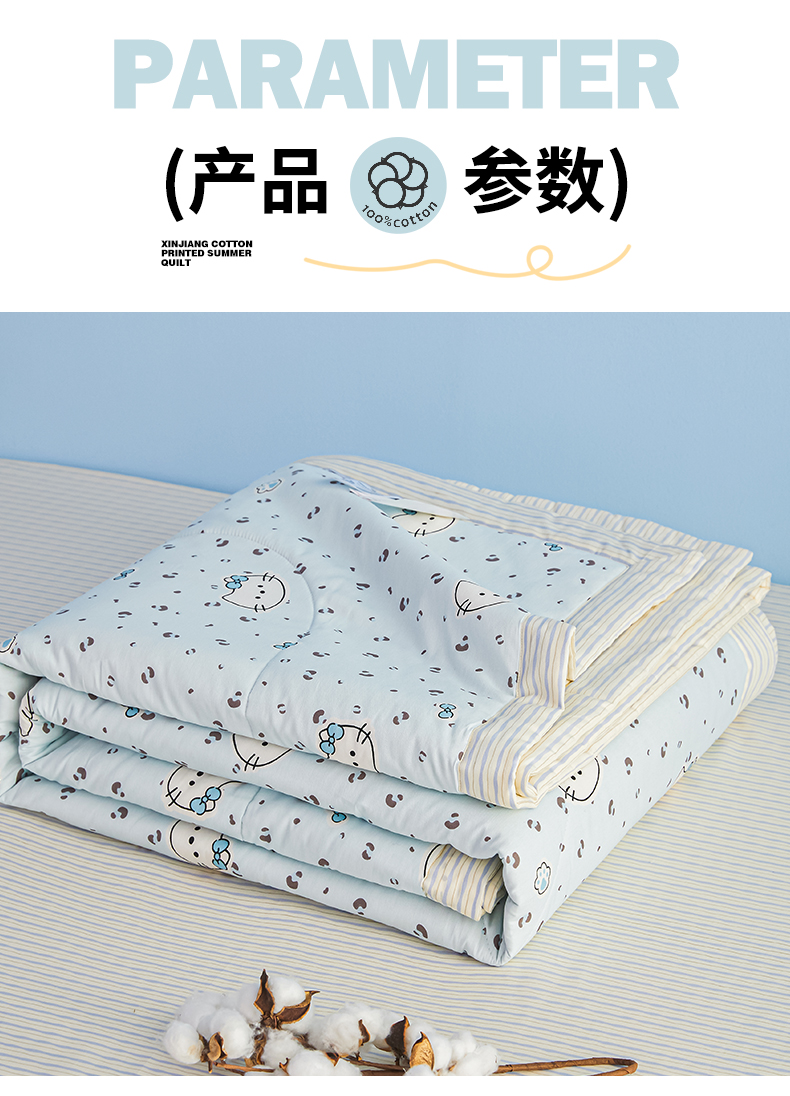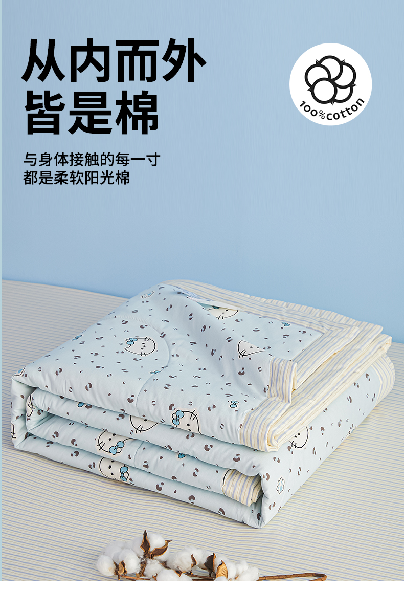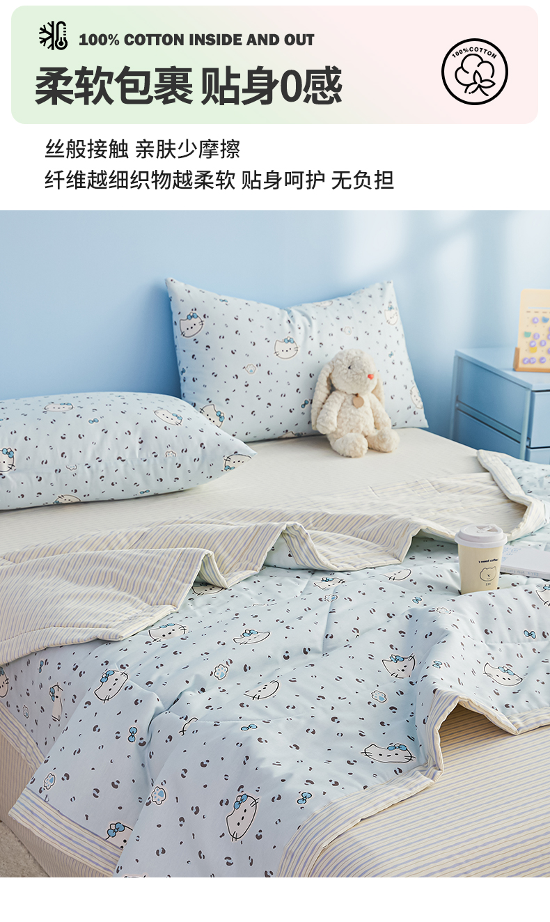 尊妙被业 2026年新款全棉纯棉印花100%棉花夏被四件套被子被芯-卡通风 凯蒂小姐-兰
