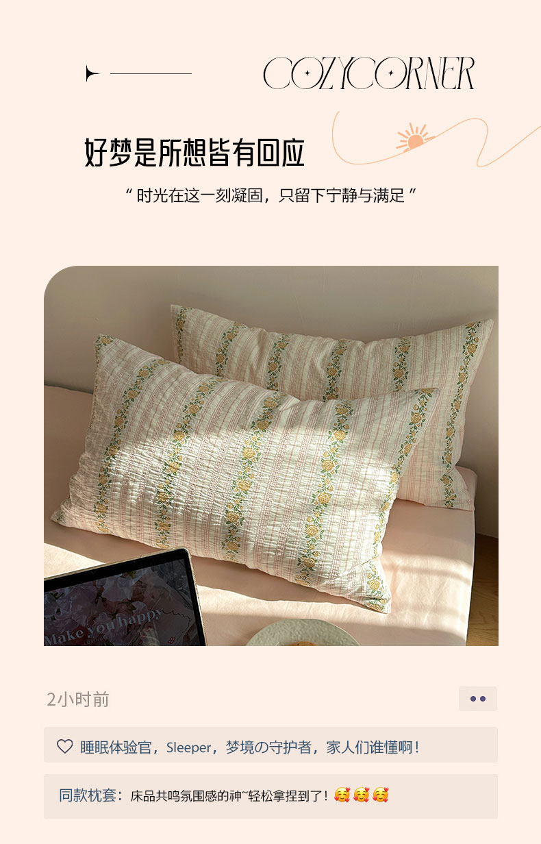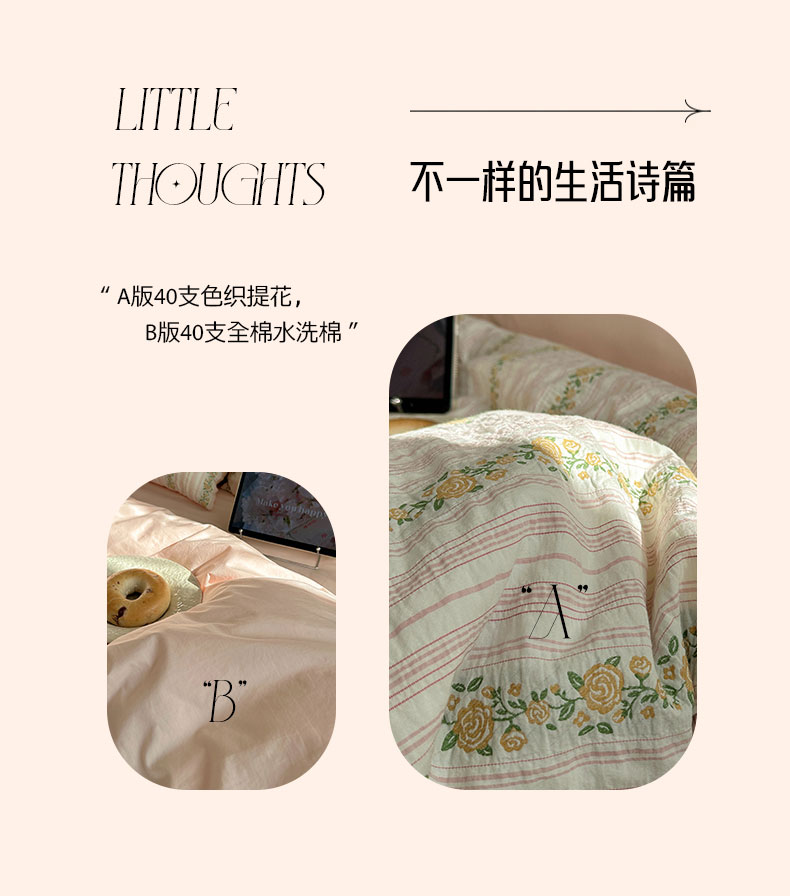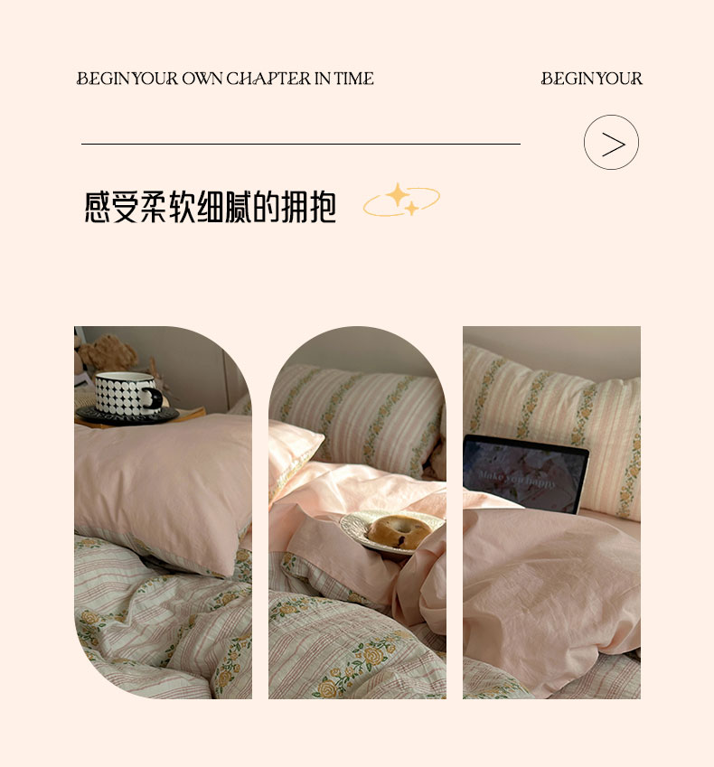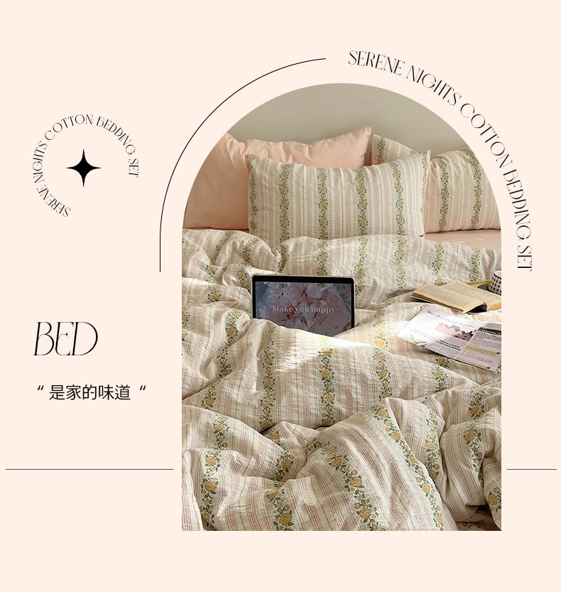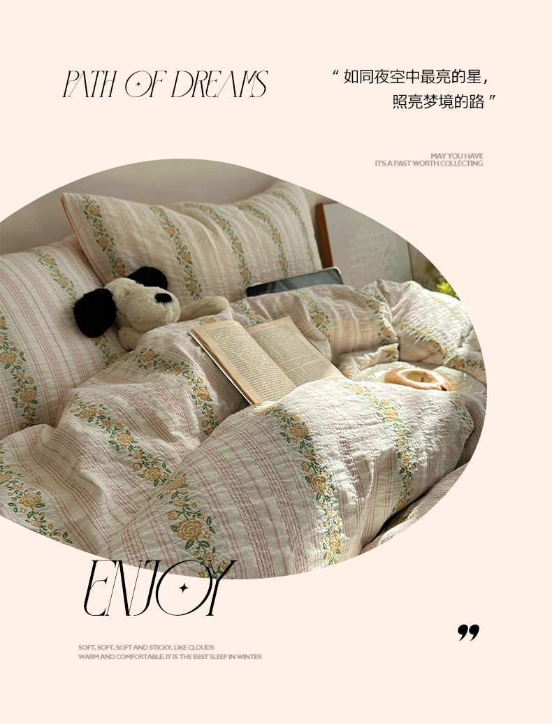当前位置: 91家纺网 > 商品网购 > 床品套件 > 四件套 > 全棉普通四件套 > 六巷胡同 2026新款韩系INS博主风40S全棉色织提花四件套 弥花集-粉