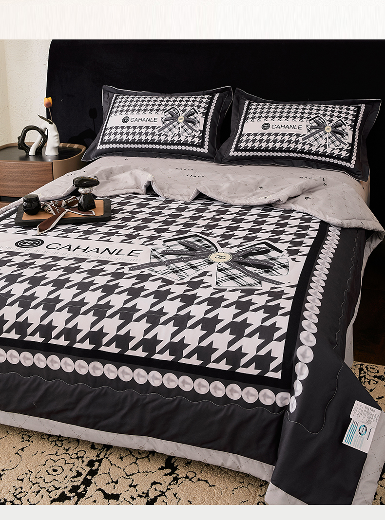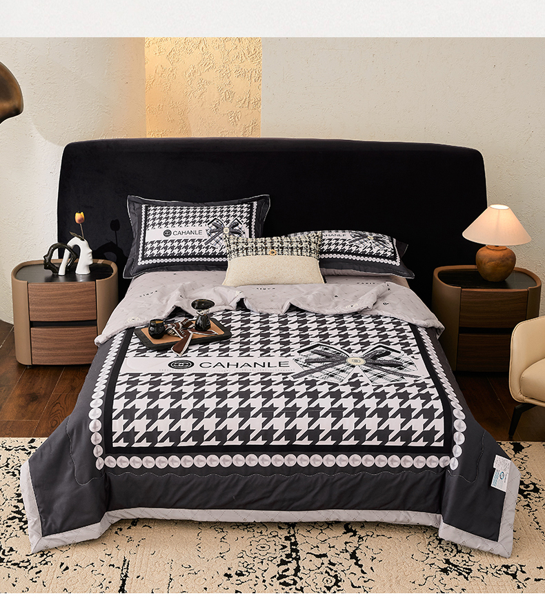 • 91家纺网 家纺一手货源 找家纺 宝薇 2026新款潮牌轻奢风大版夏被夏凉被空调被 千鸟结