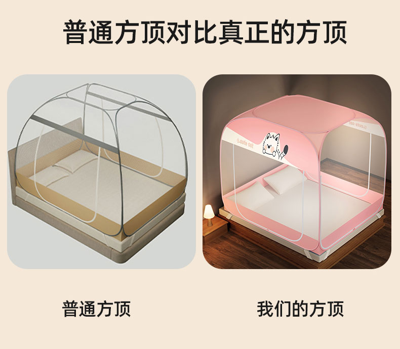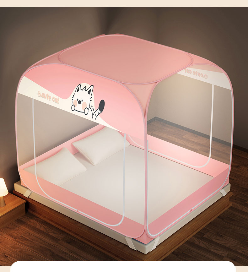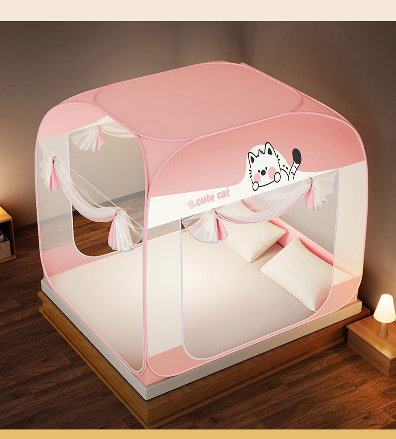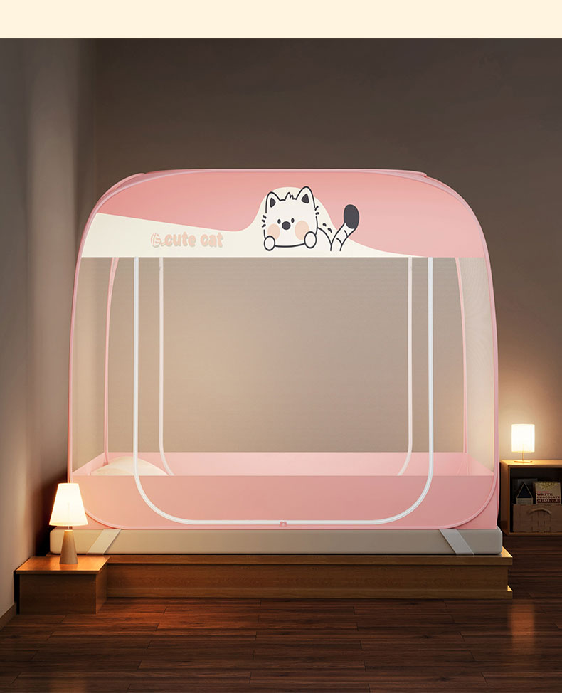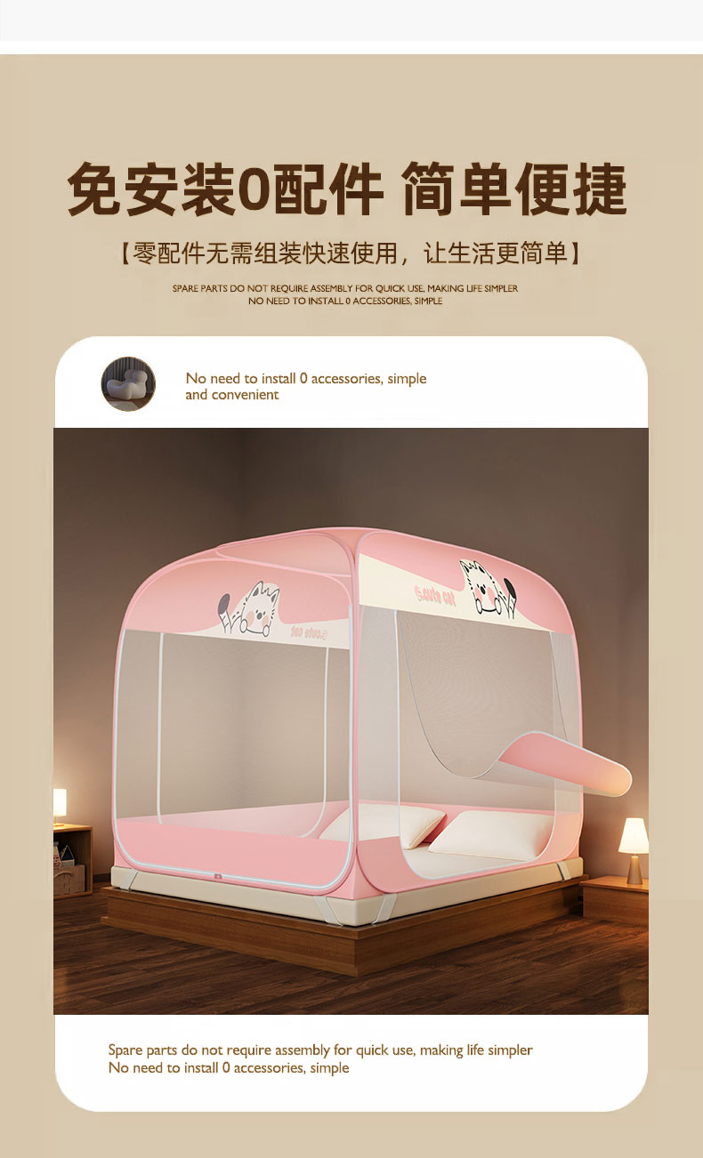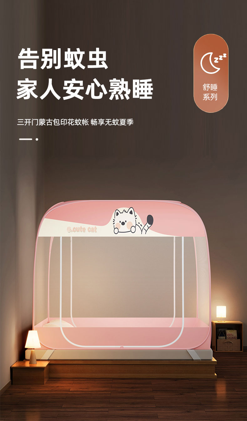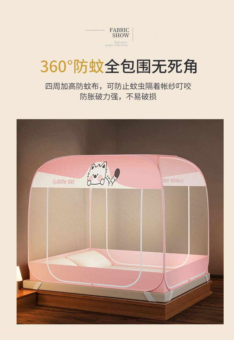 佳梦家纺 2026新款三开门防尘顶免安装蚊帐 可可猫
