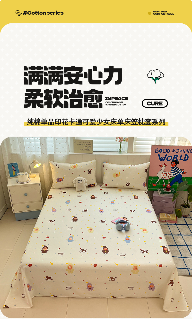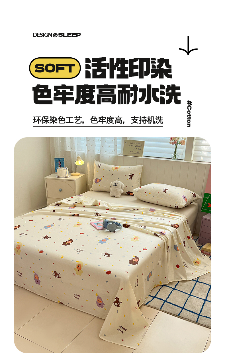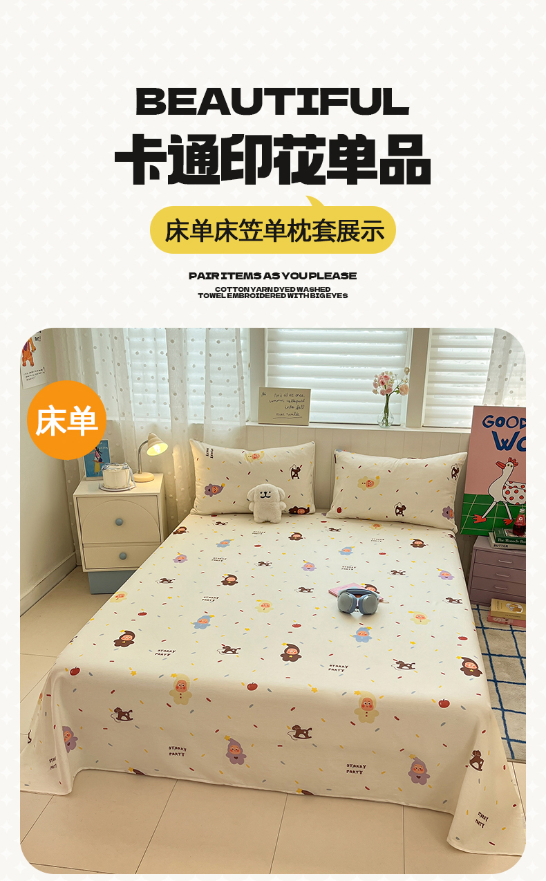 • 91家纺网 家纺一手货源 找家纺 桃子家居 2026新款纯棉全棉单品印花卡通可爱少女床单床笠枕套系列 棉单品-七彩星星