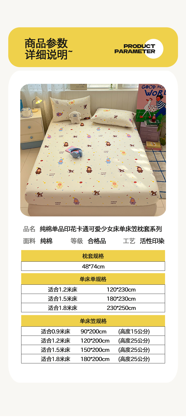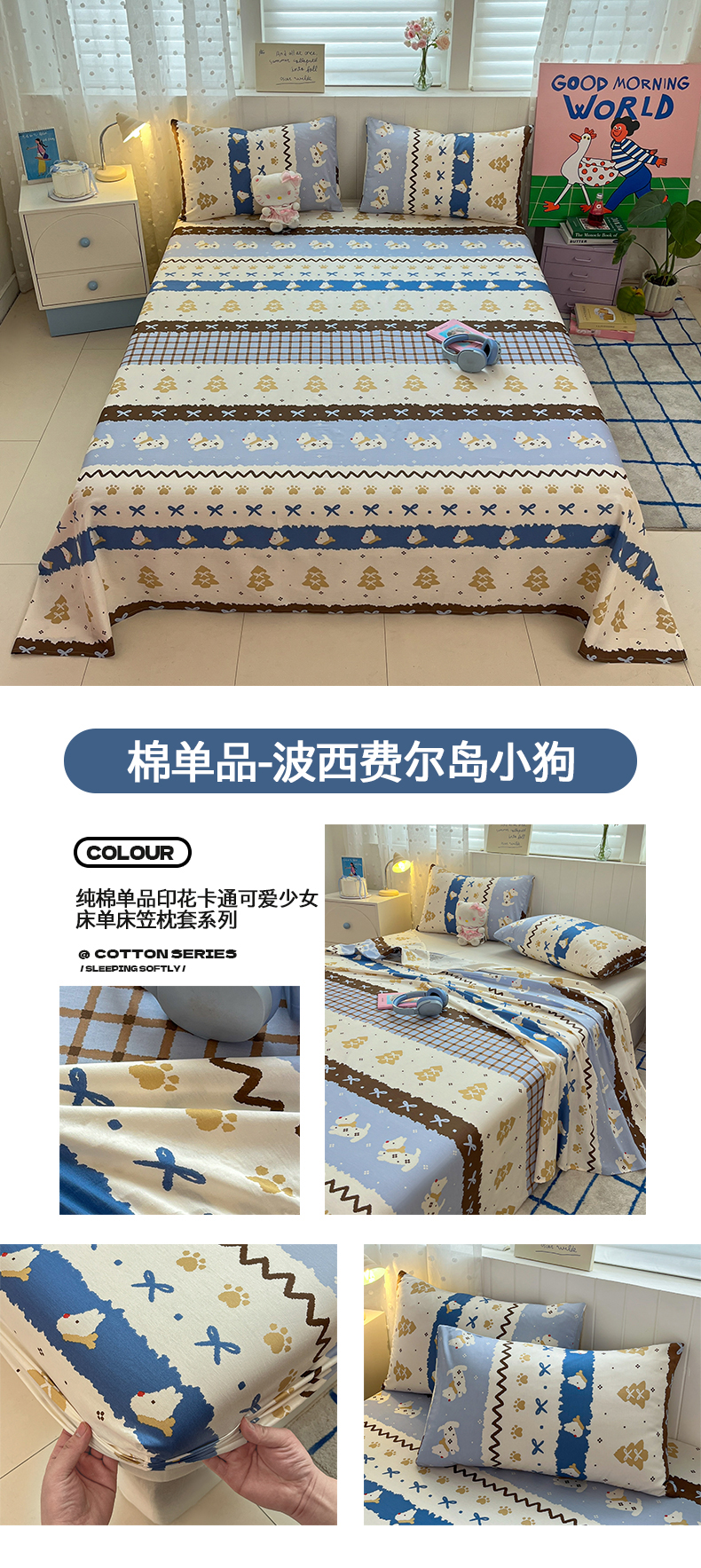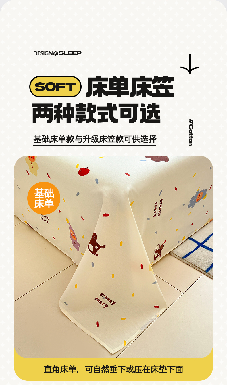 • 91家纺网 家纺一手货源 找家纺 桃子家居 2026新款纯棉全棉单品印花卡通可爱少女床单床笠枕套系列 棉单品-七彩星星