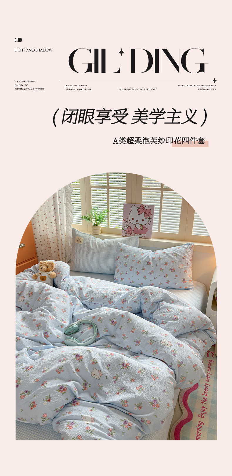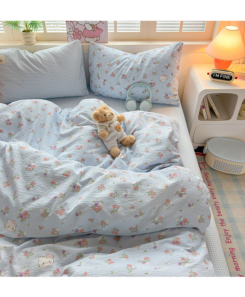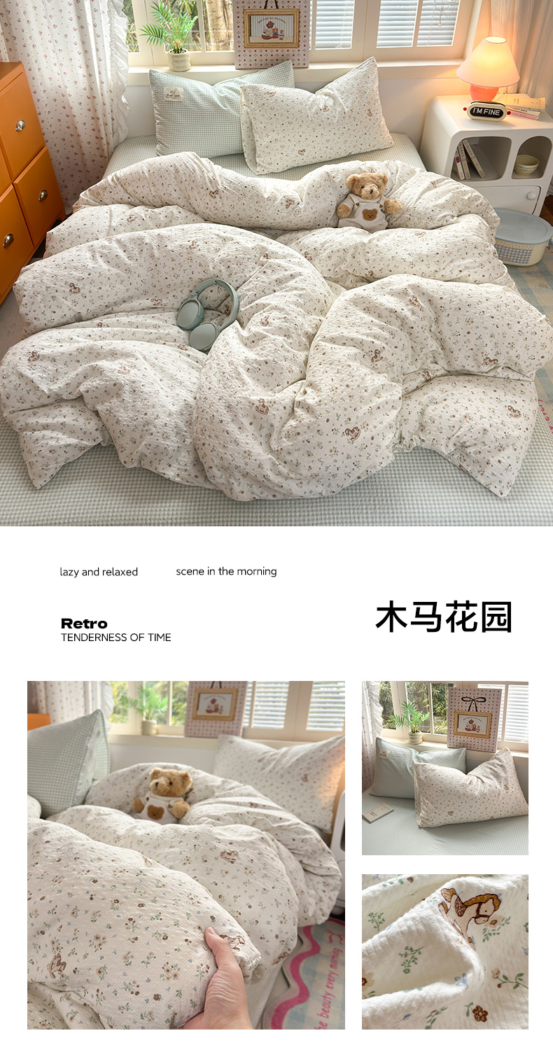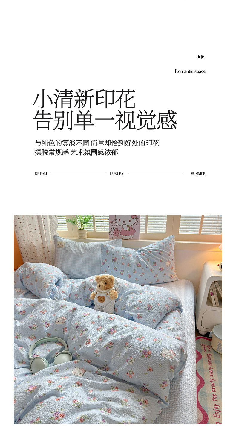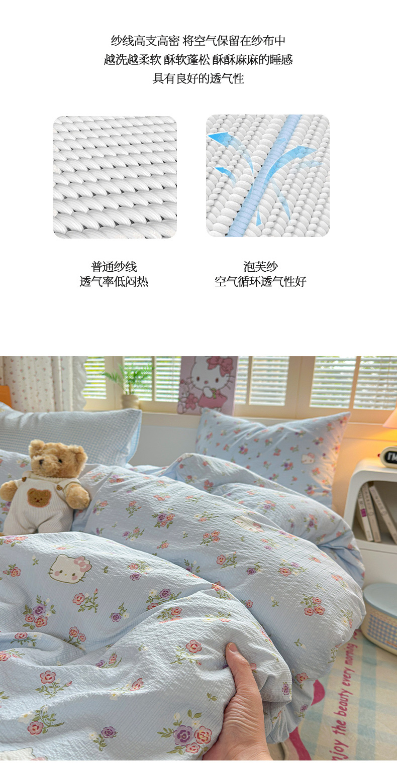 当前位置: 91家纺网 > 商品网购 > 床品套件 > 四件套 > 其它四件套 > 奈颜 2026新款贴标款A类超柔泡芙纱印花四件套 猫团兰