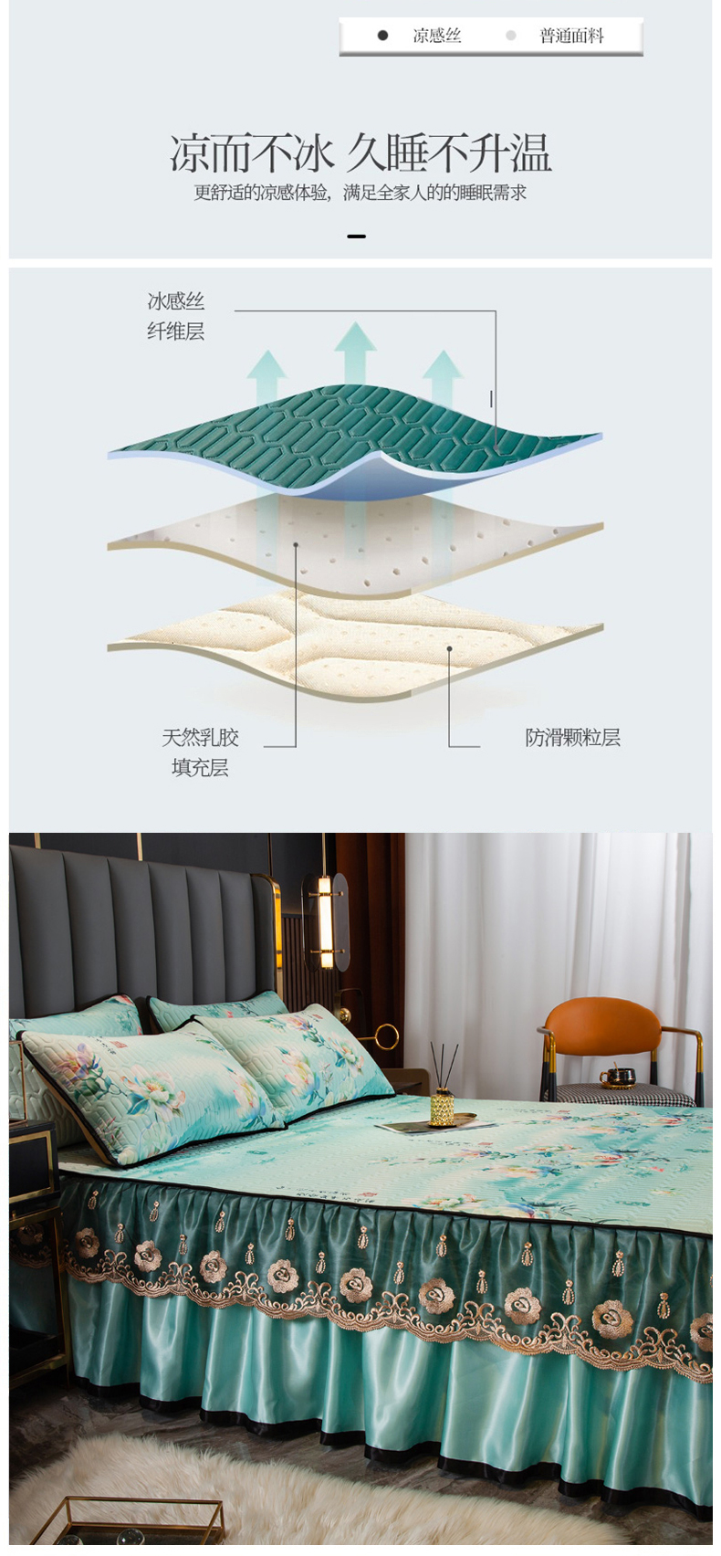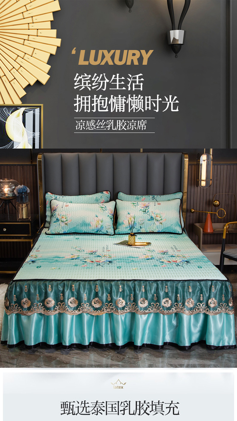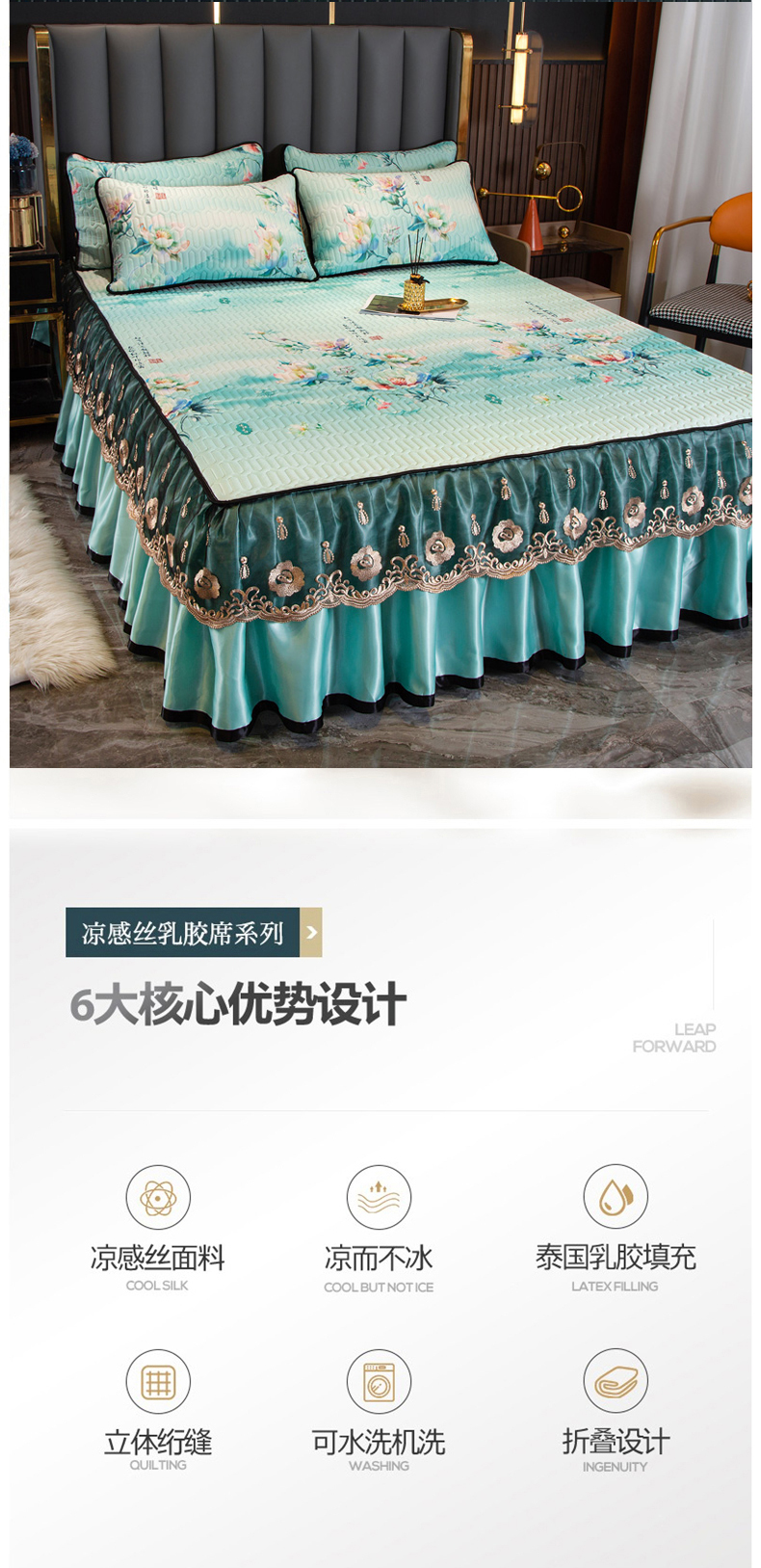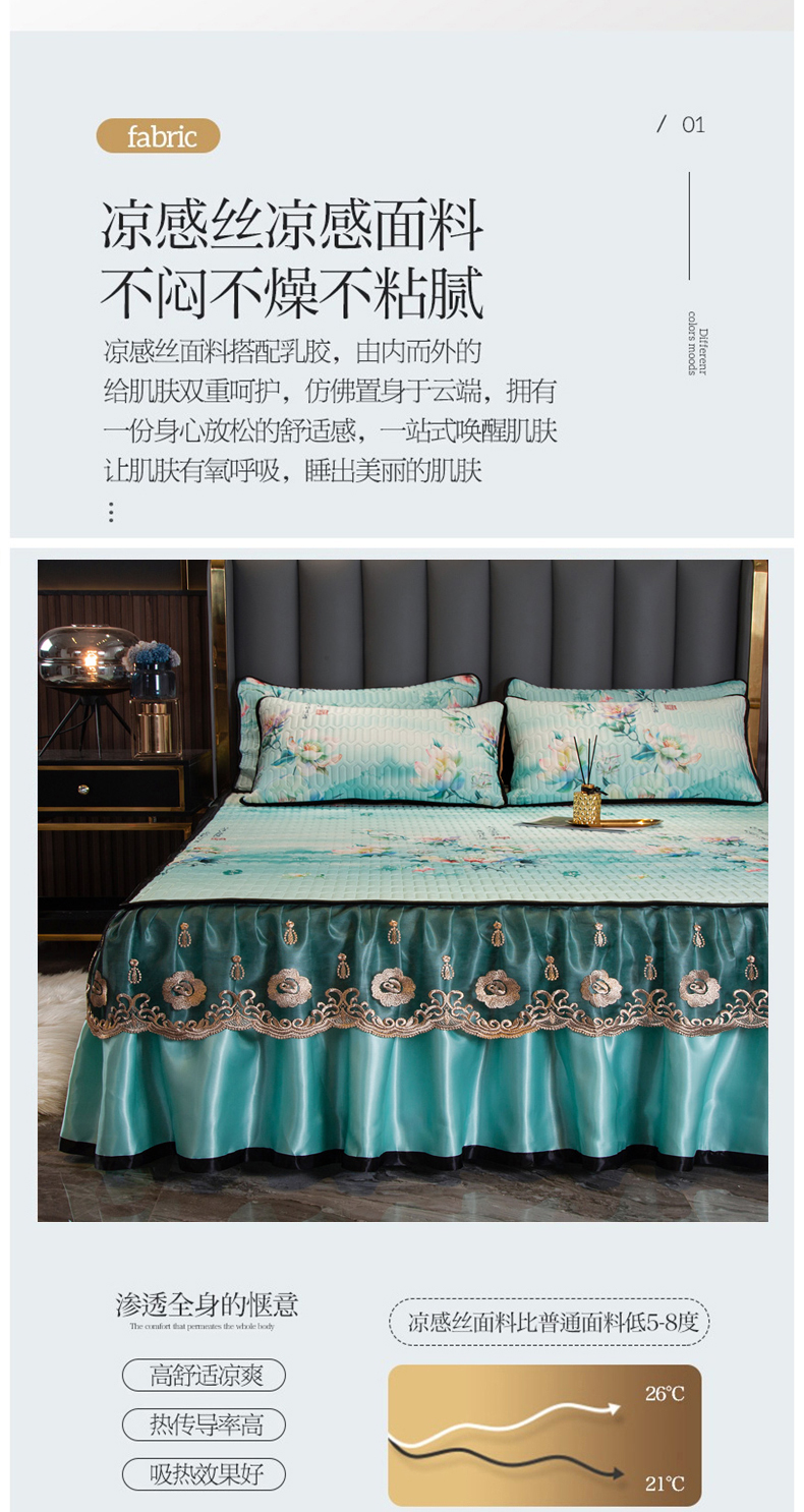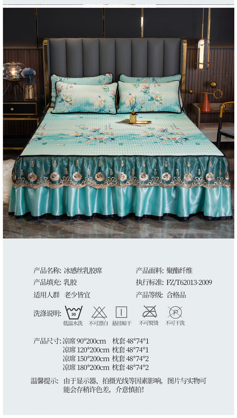 商品名称:能好家纺 2026春夏新款纯色+印花凉感丝乳胶凉席床裙款三件套 雅韵