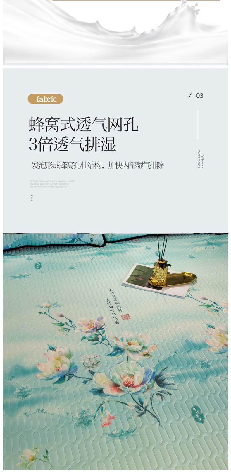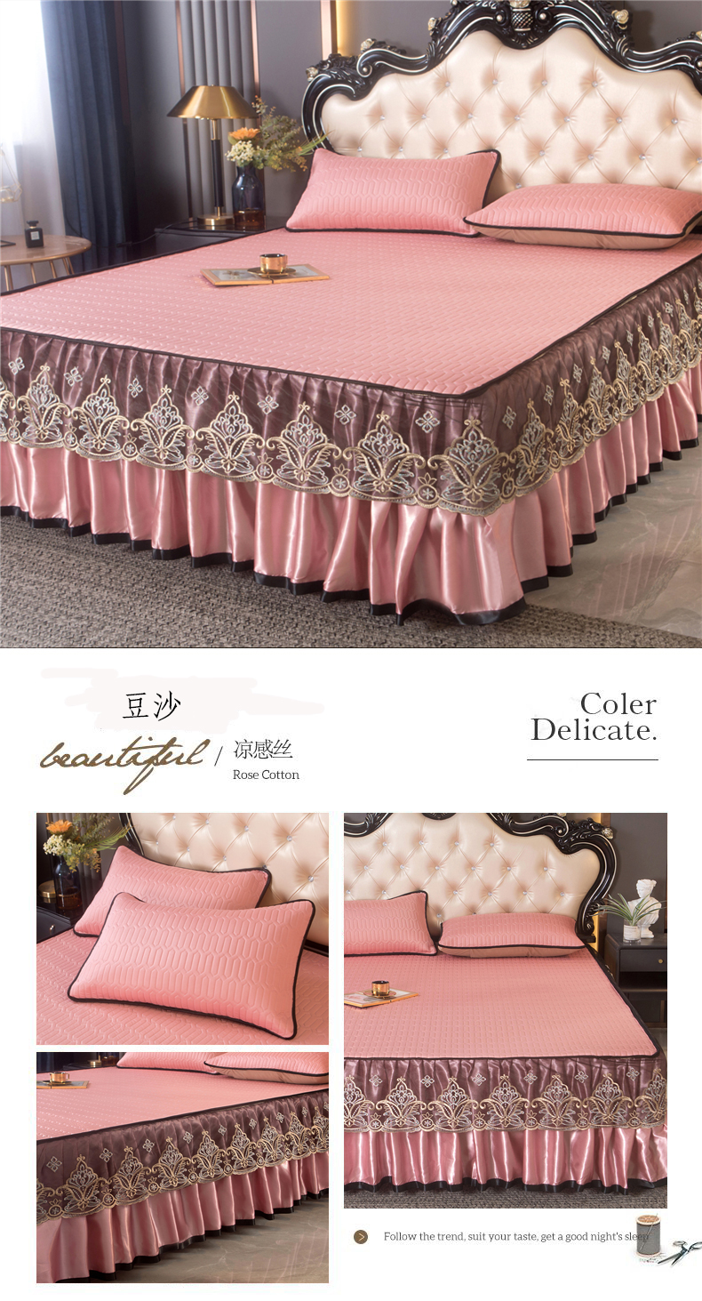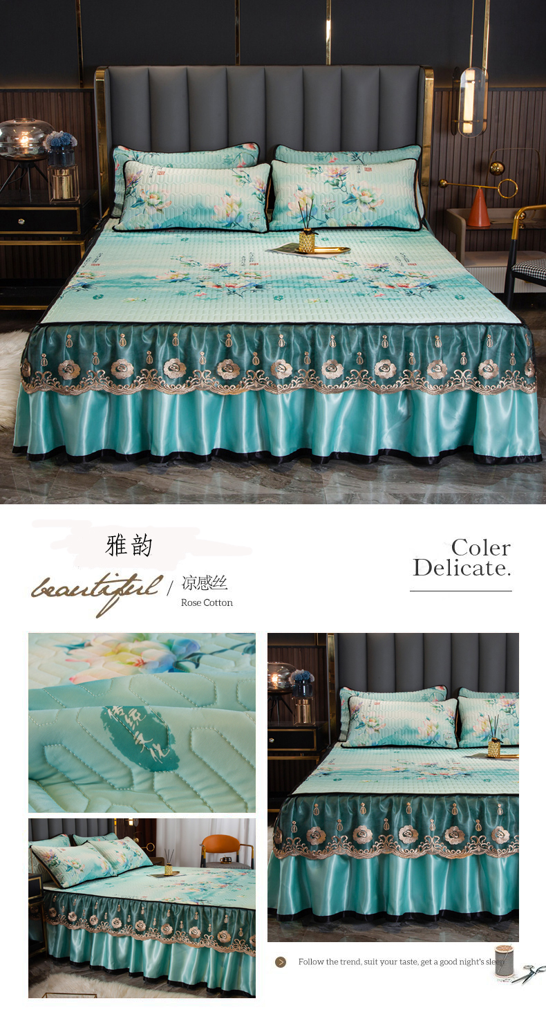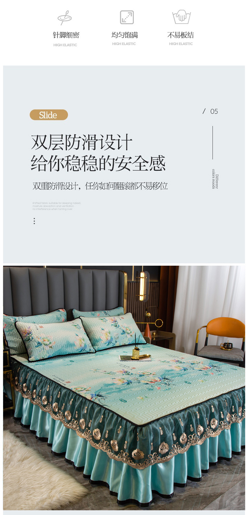 商品名称:能好家纺 2026春夏新款纯色+印花凉感丝乳胶凉席床裙款三件套 雅韵
